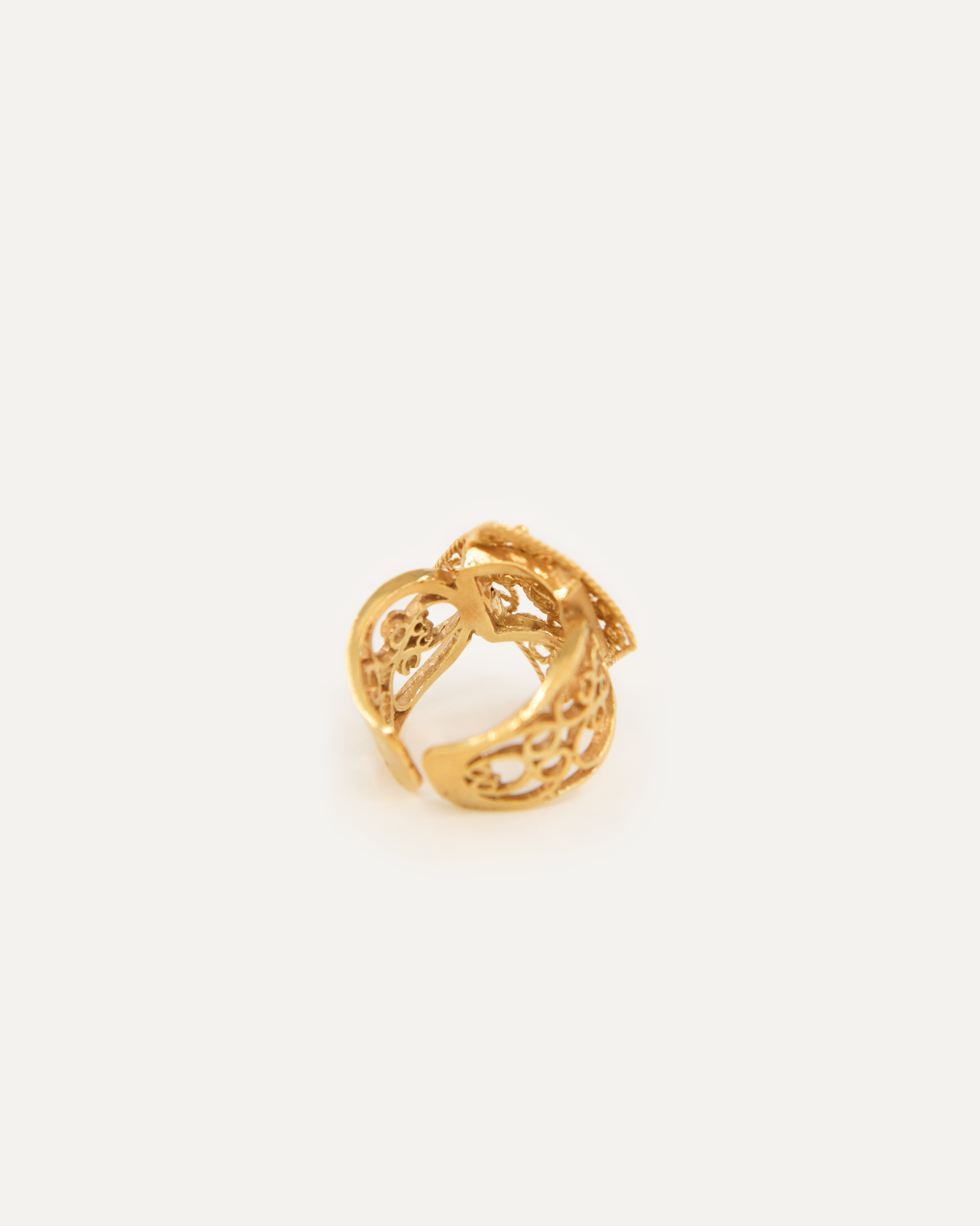 Este anillo recupera la esencia rural de Ibiza y la traduce a un lenguaje contemporáneo. Elisa Pomar reinterpreta la filigrana tradicional de la joyería ibicenca y la transforma en una versión plana y depurada, manteniendo su alma ancestral. Joyas que no adornan: revelan.