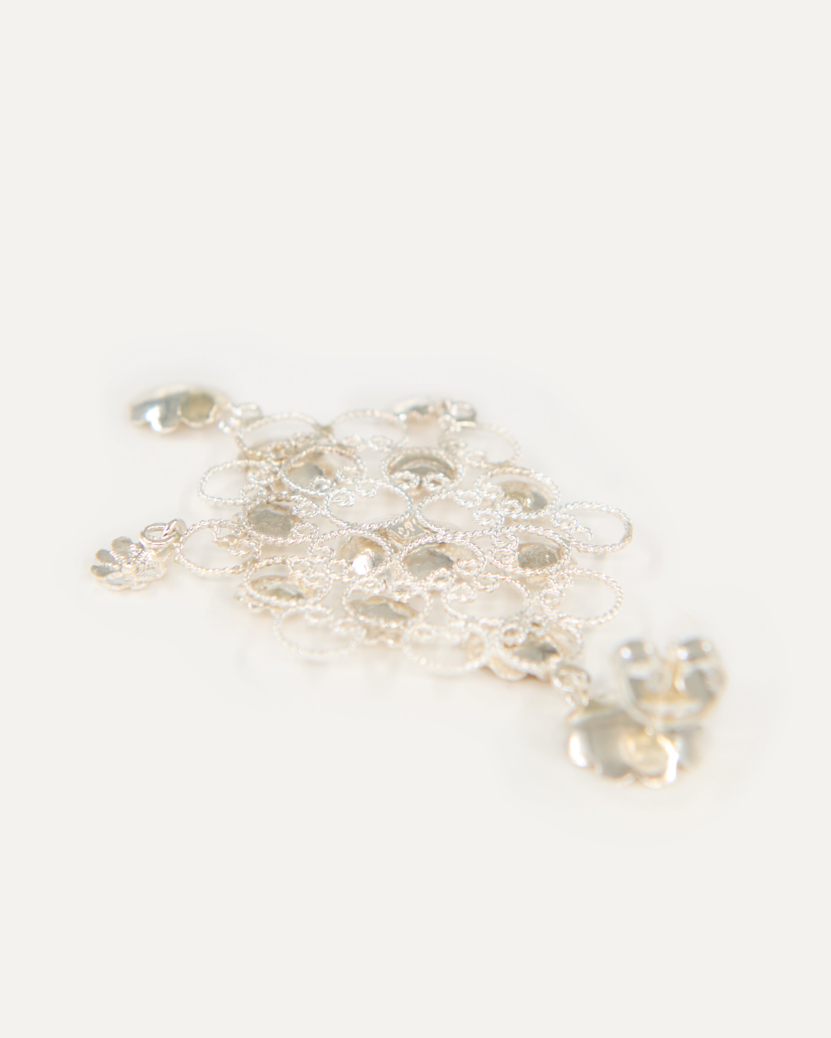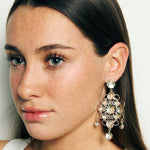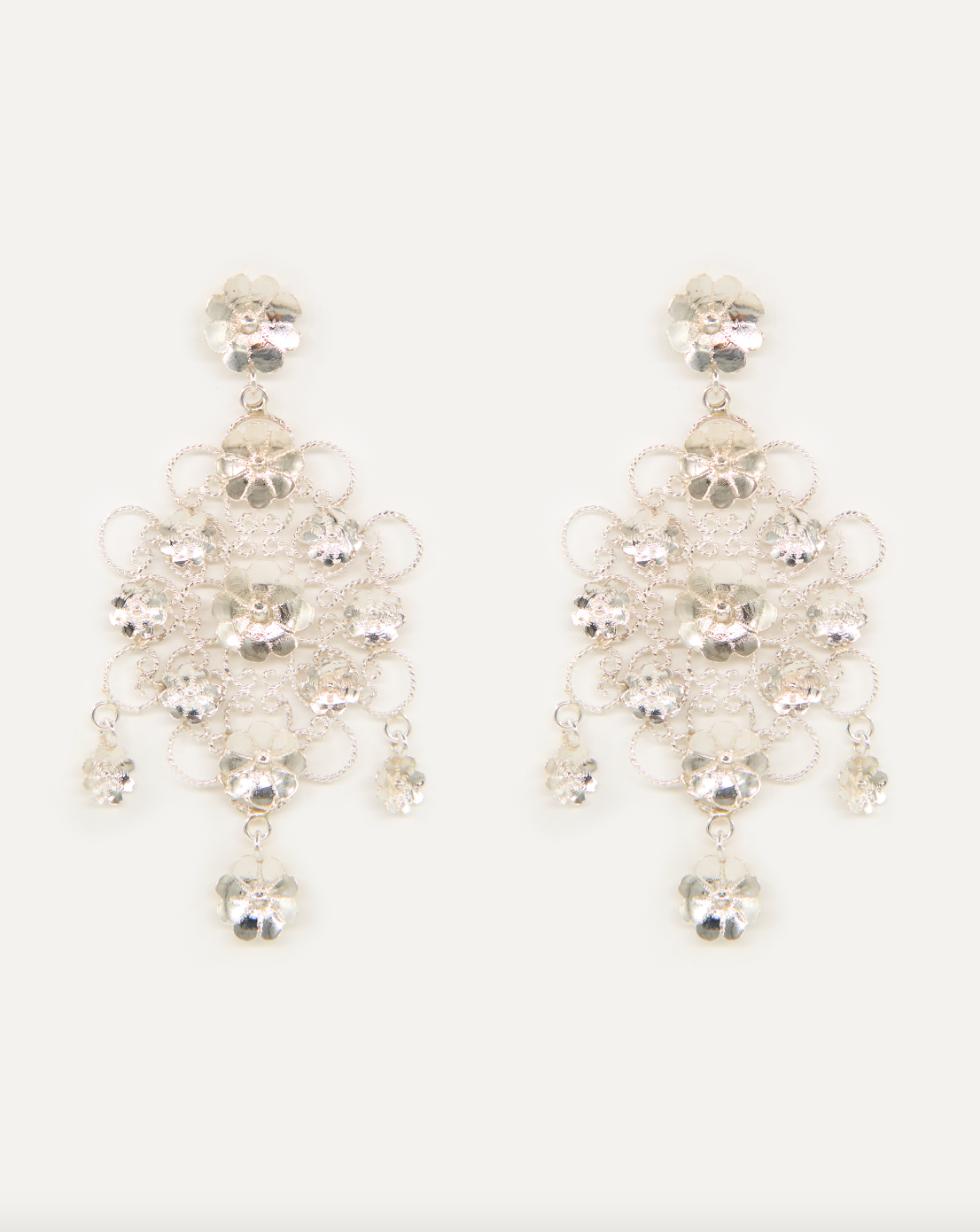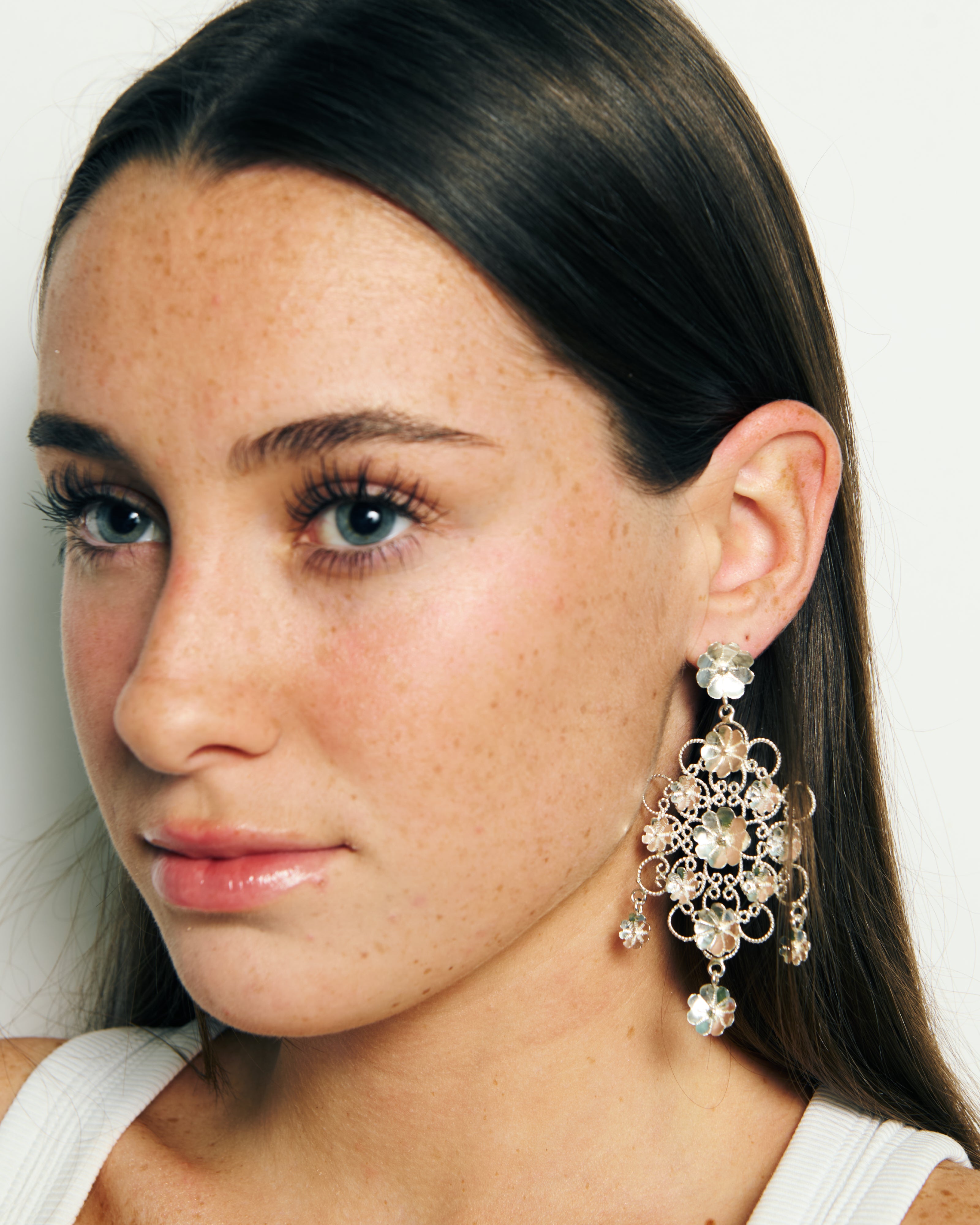 Earrings inspired by the Italian Dolce Vita. These earrings combine Ibiza flowers with an extravagant and daring design, drawing inspiration from Italian life as a symbol of brotherhood between the two Mediterranean cultures. Since the moment she began designing them, Elisa has imagined Sophia Loren wearing them while riding her blue Vespa along the Amalfi Coast in the 1960s.