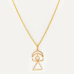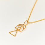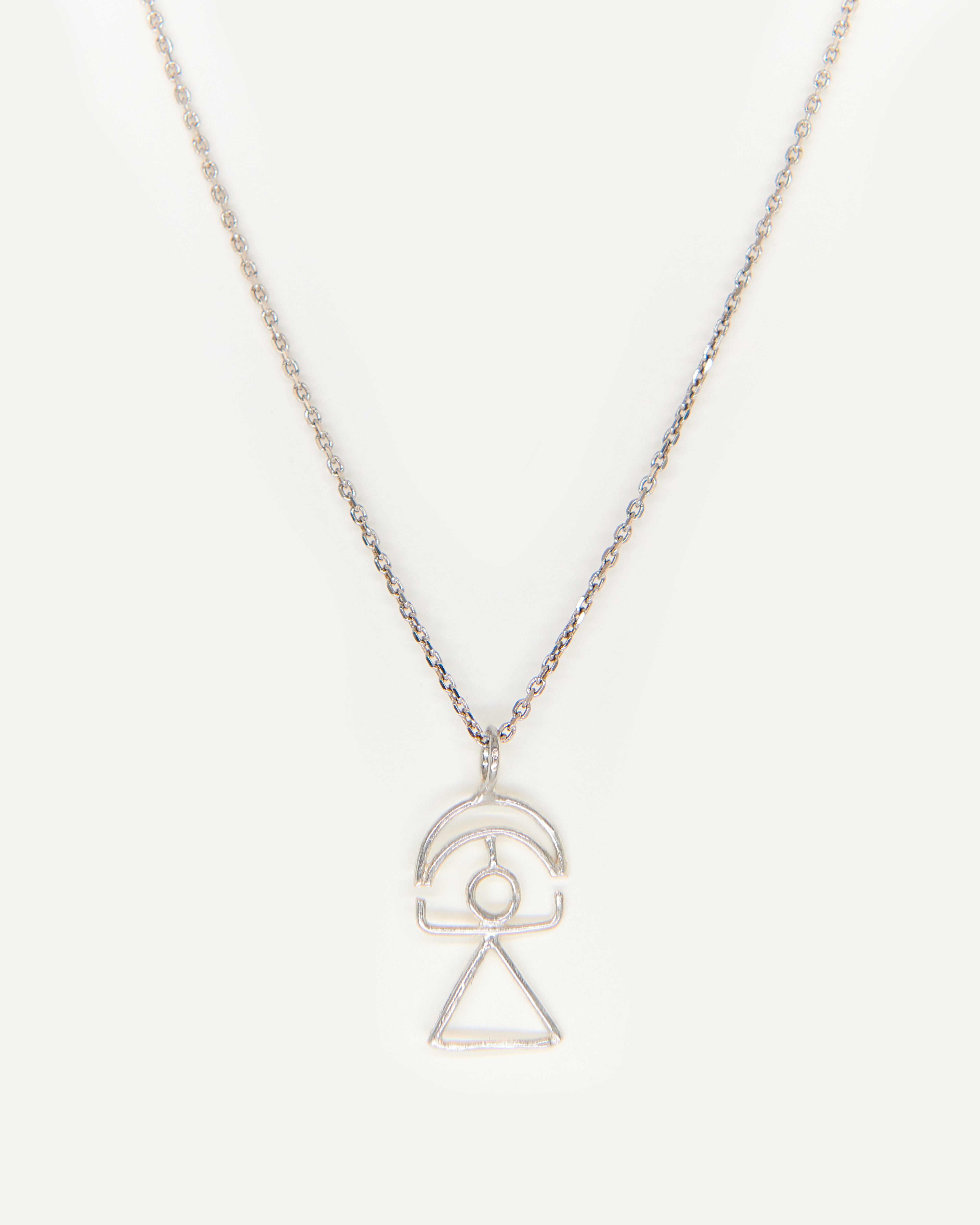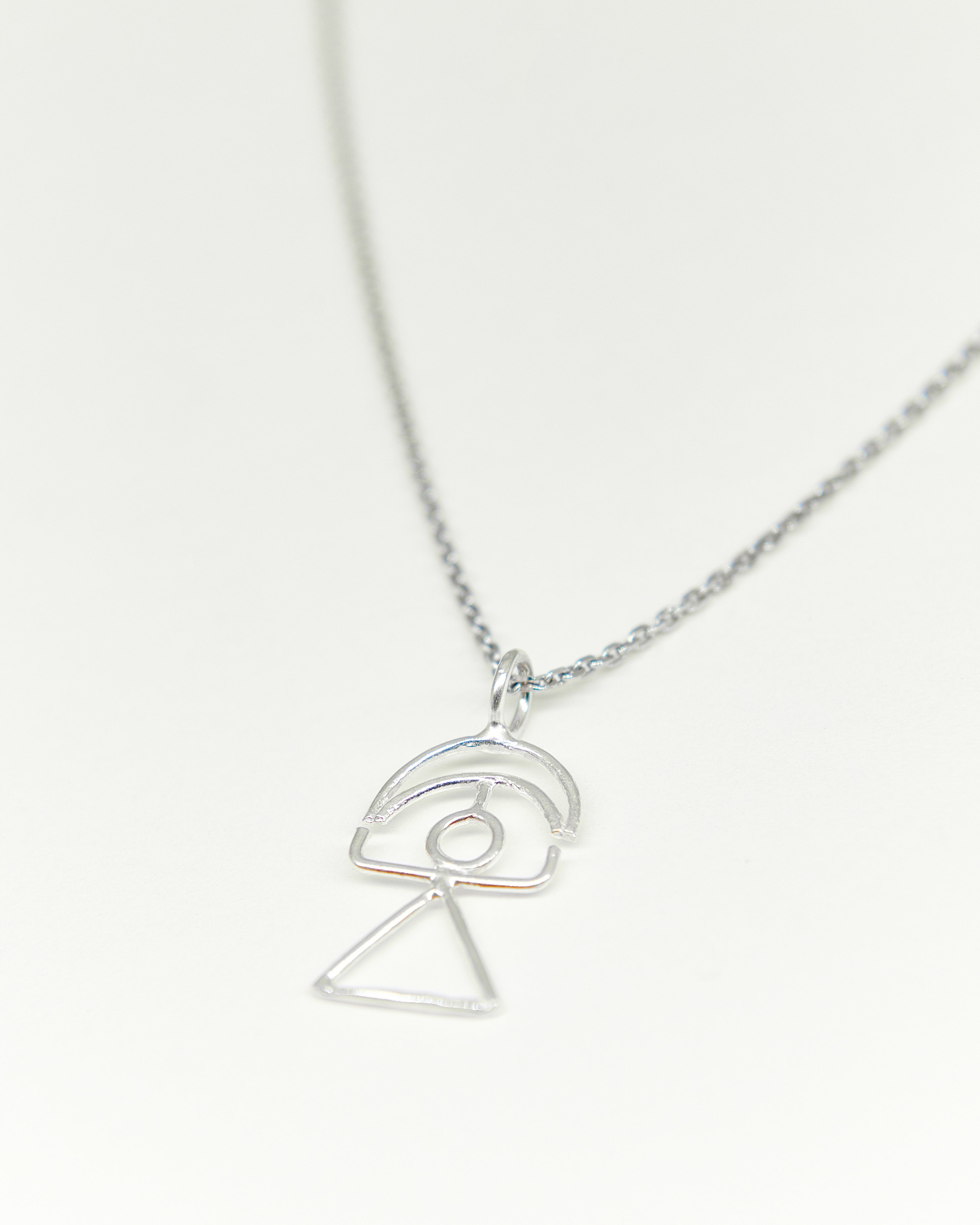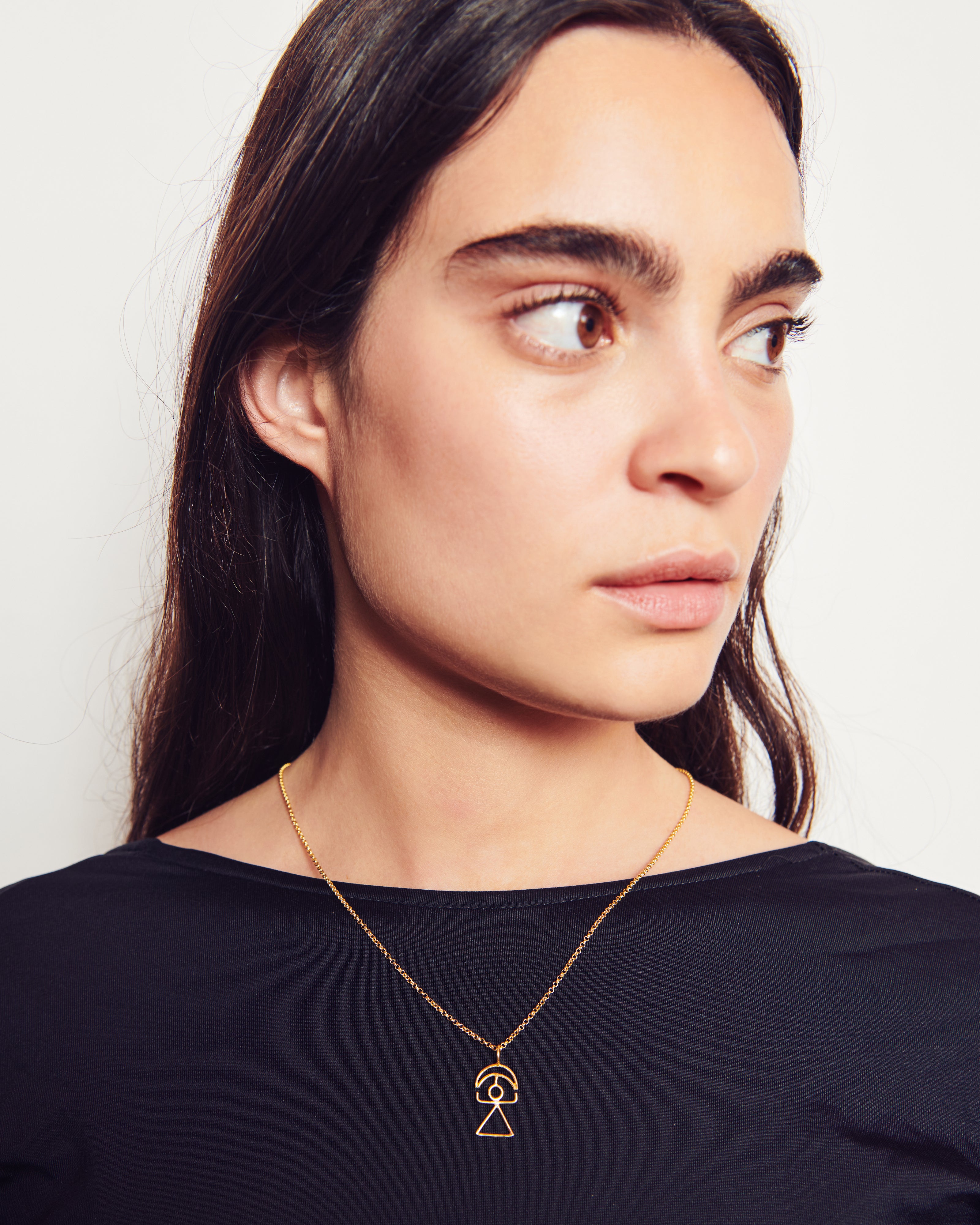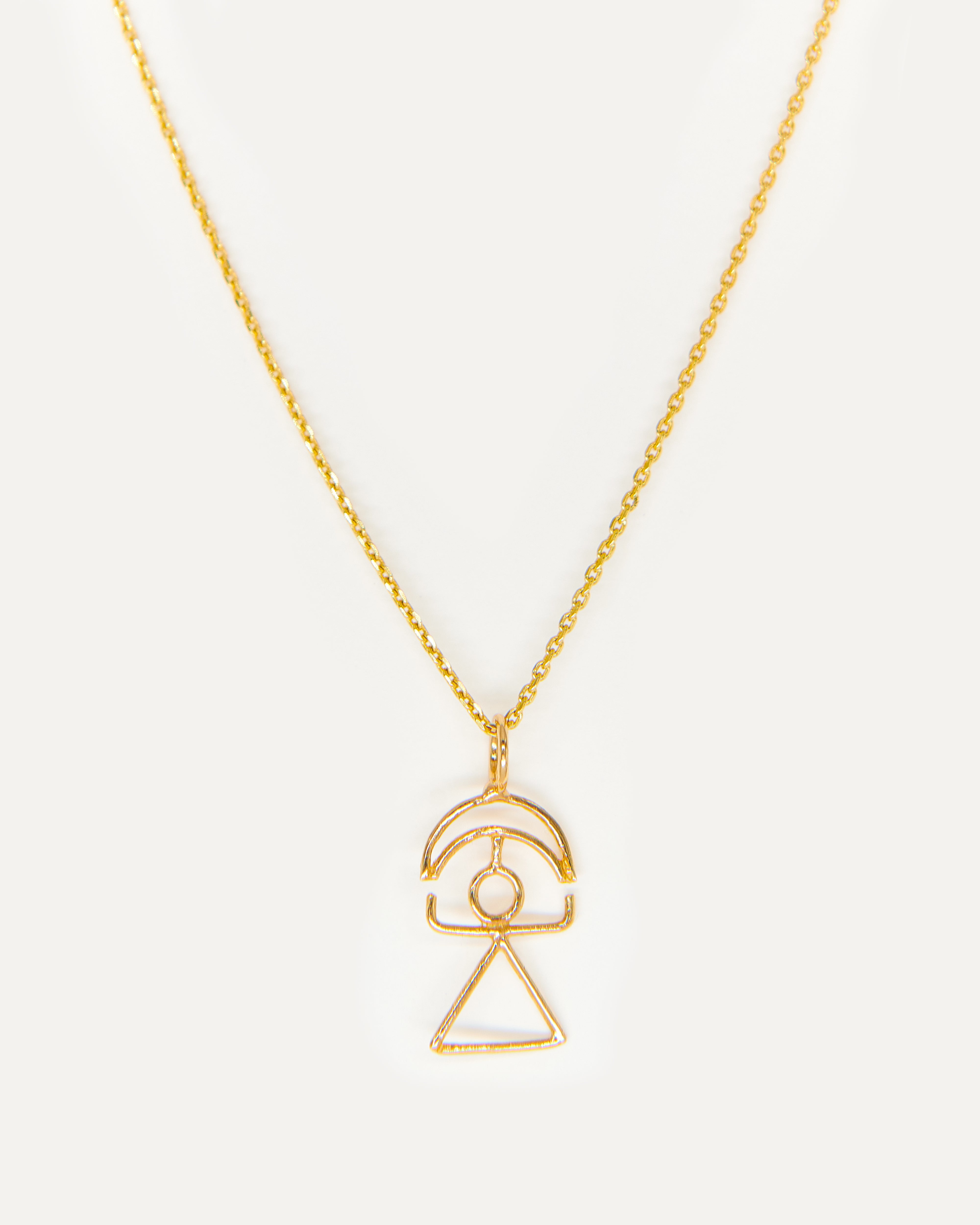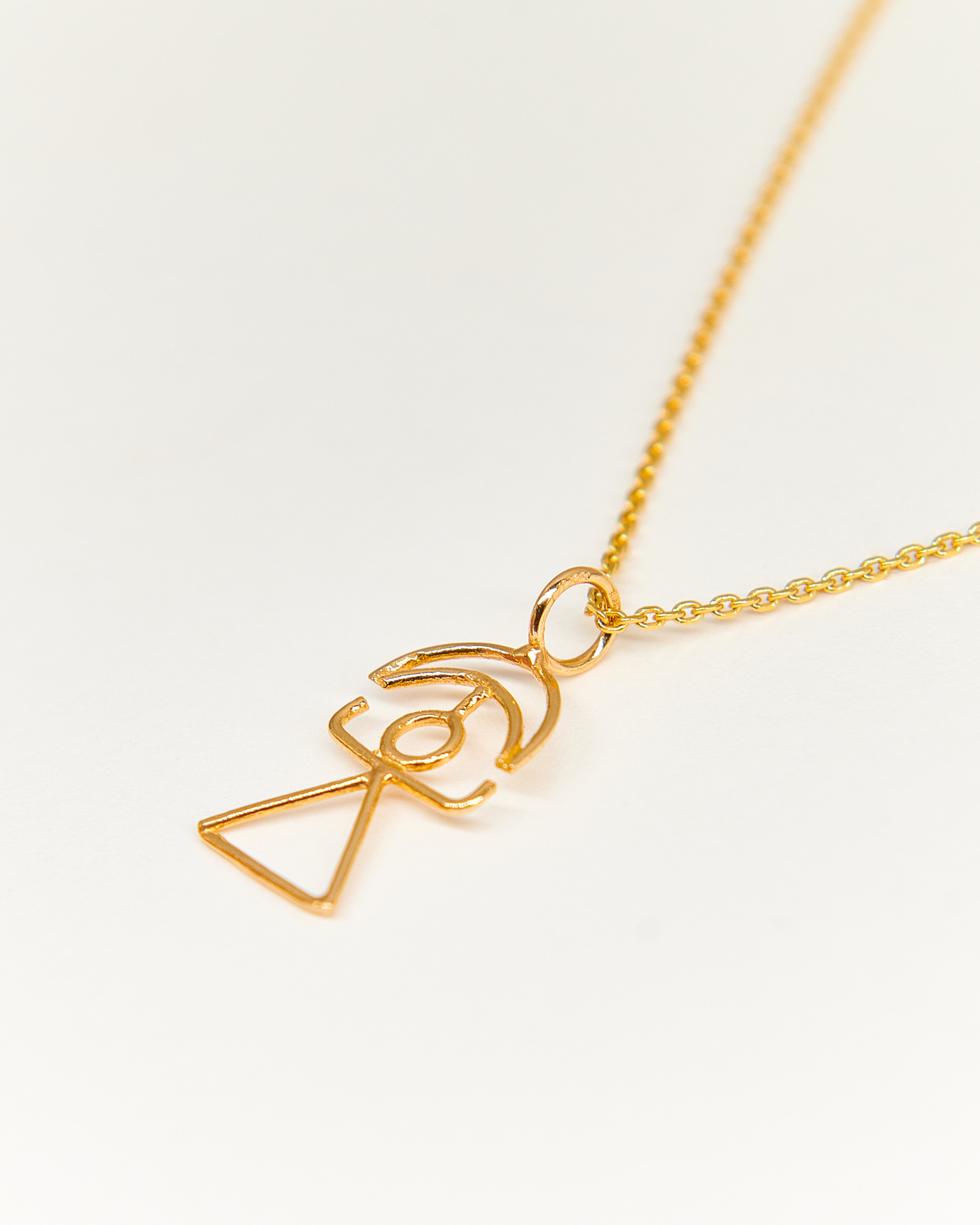 Colgante de Tanit, diosa más importante de la mitología cartaginesa. Divinidad de la Luna, fertilidad, sexualidad y guerra, ha sido la diosa más adorada de Ibiza a lo largo de su historia, donde se han encontrado decenas de estatuas y la conocida 'Cova des Culleram', una cueva santuario erigida en su honor. Elisa ha transformado su símbolo en un amuleto para todas las personas que siguen adorándola y creyendo en su energía.