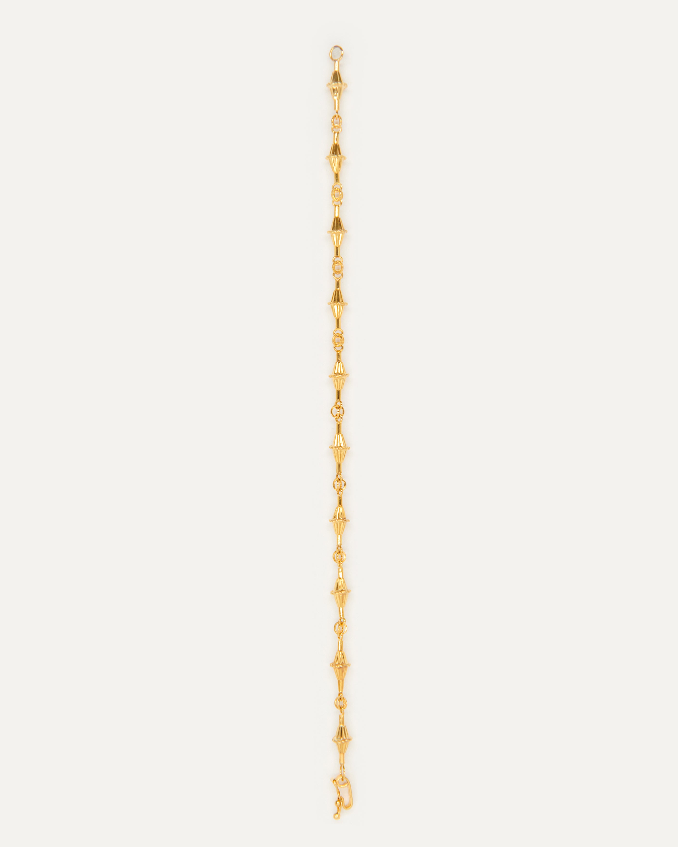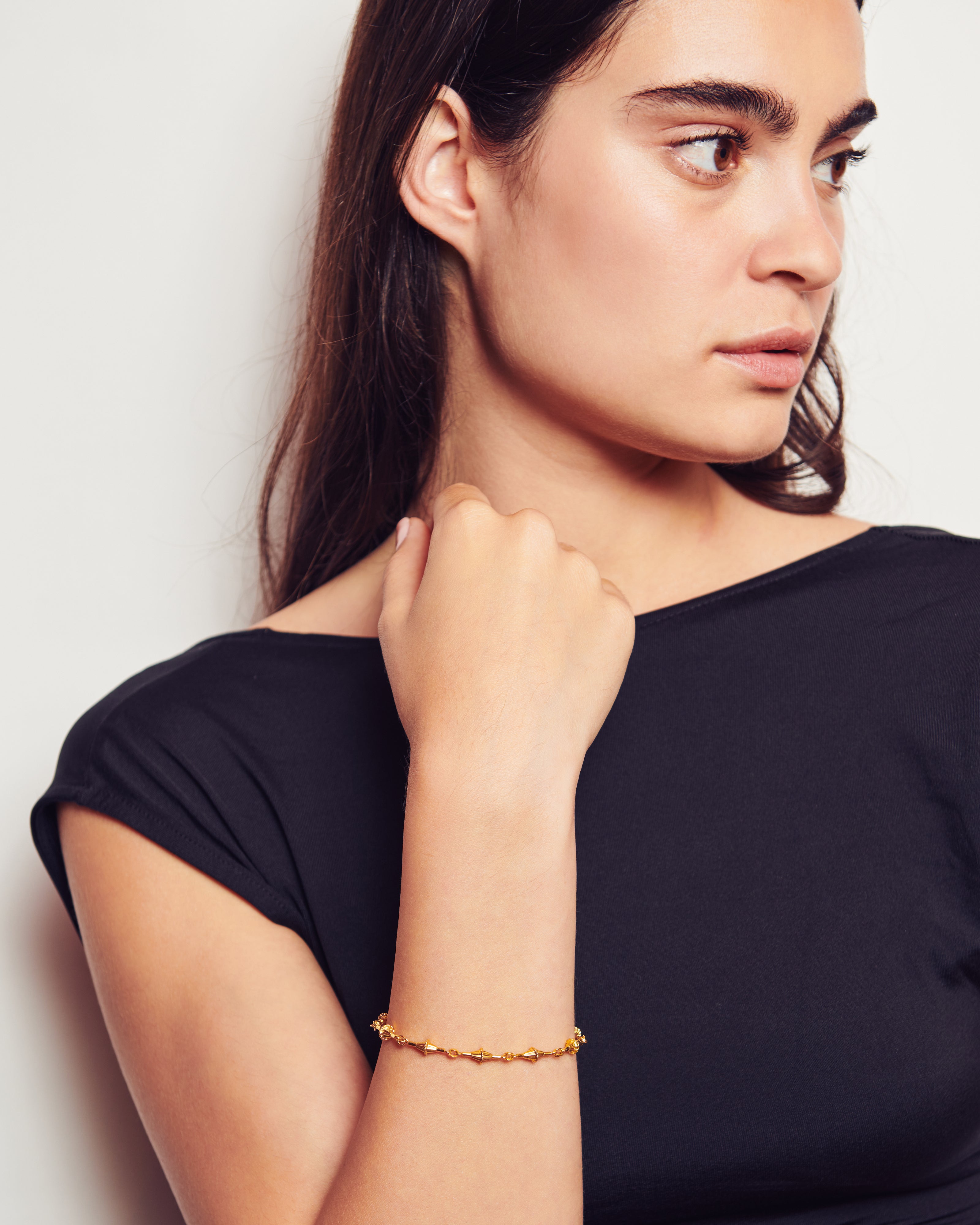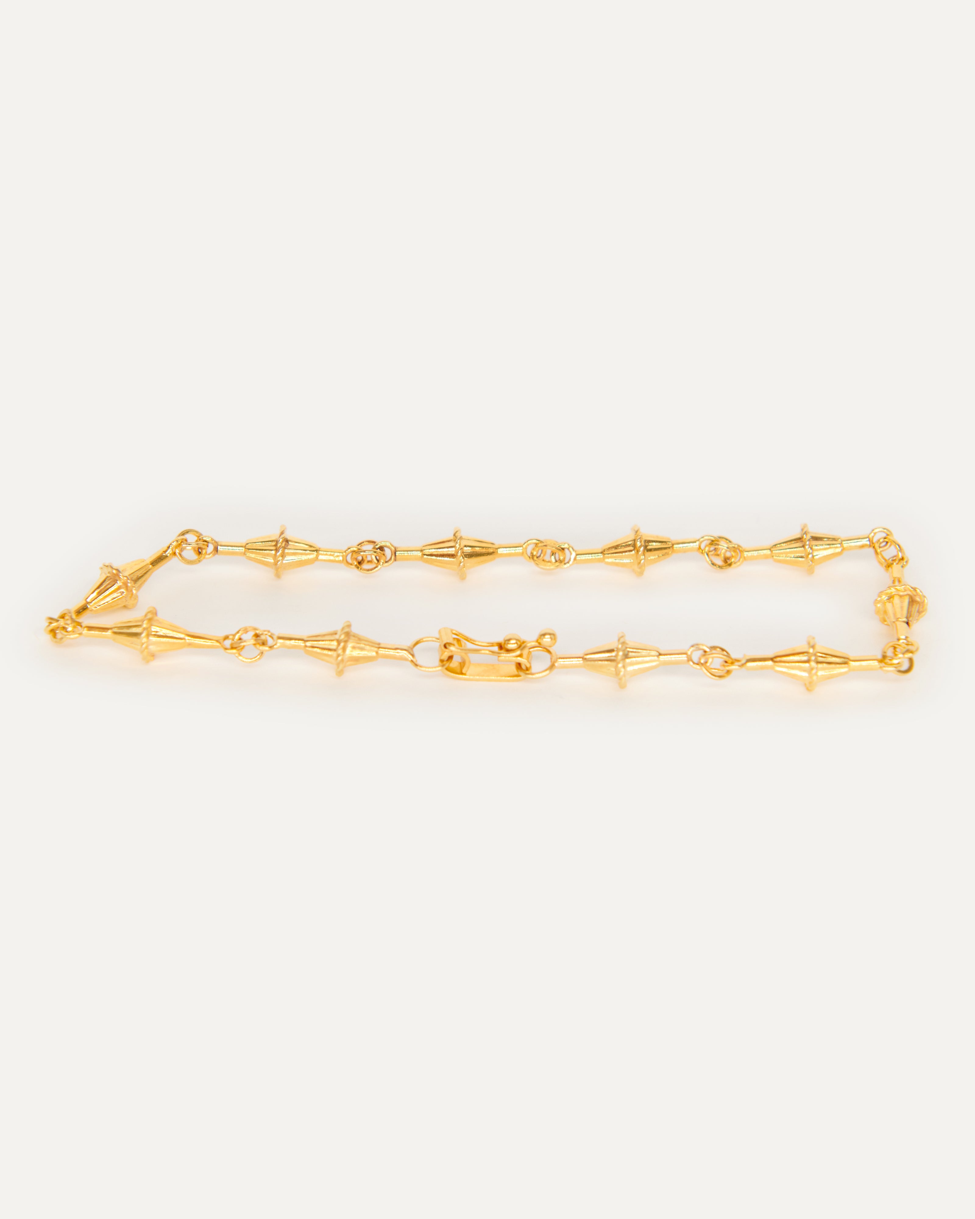 Pulsera inspirada en el collar de 'Gra d'Ordi' de la Emprendada ibicenca. El nombre 'Gra d'Ordi' se debe a la similitud del la joya, que tiene forma de rombo, con el grano de la cebada que tan frecuentada era en los campos ibicencos. Las emprendadas ibicencas completas llevaban entre 2 y 4 collares de Gra d'Ordi.