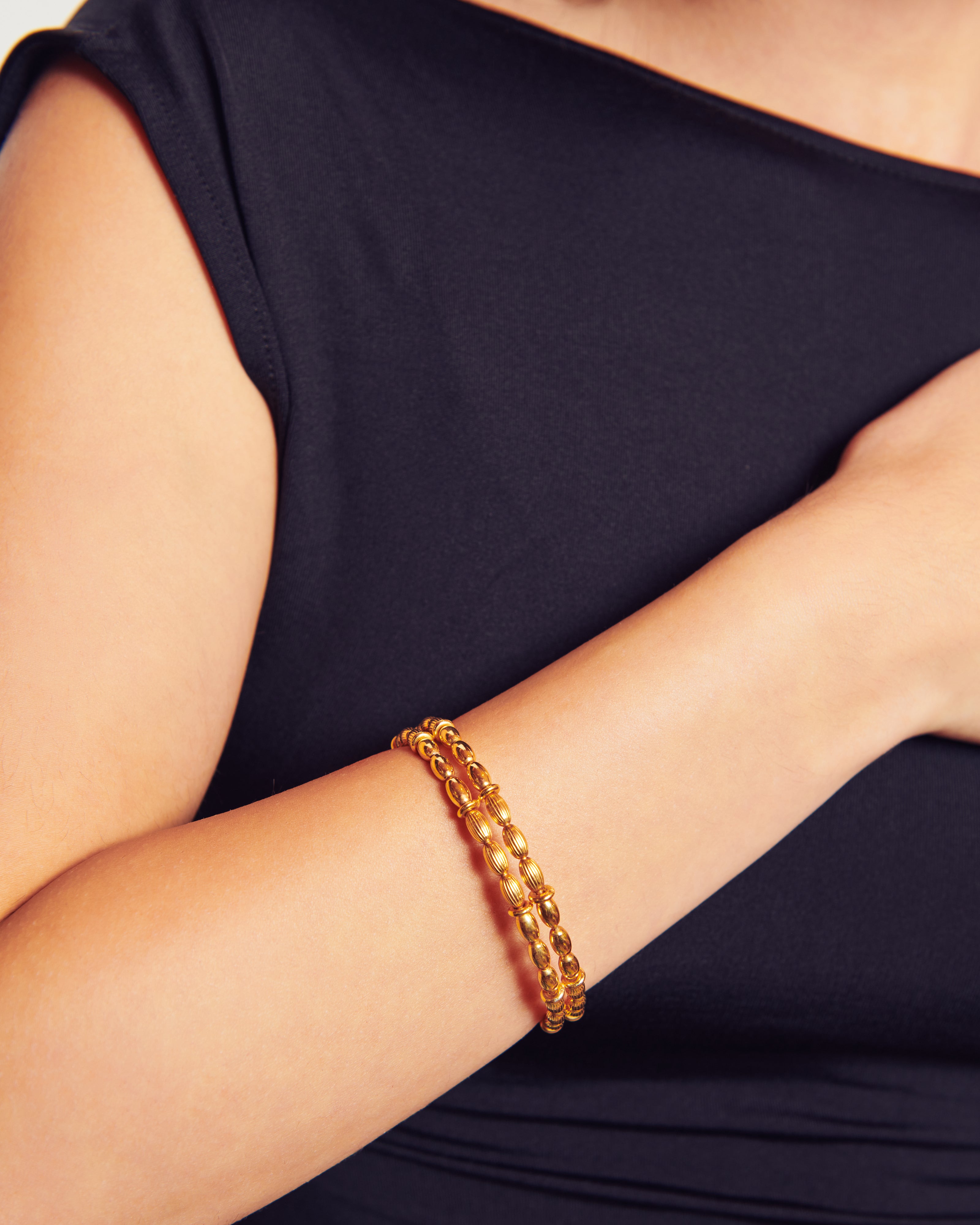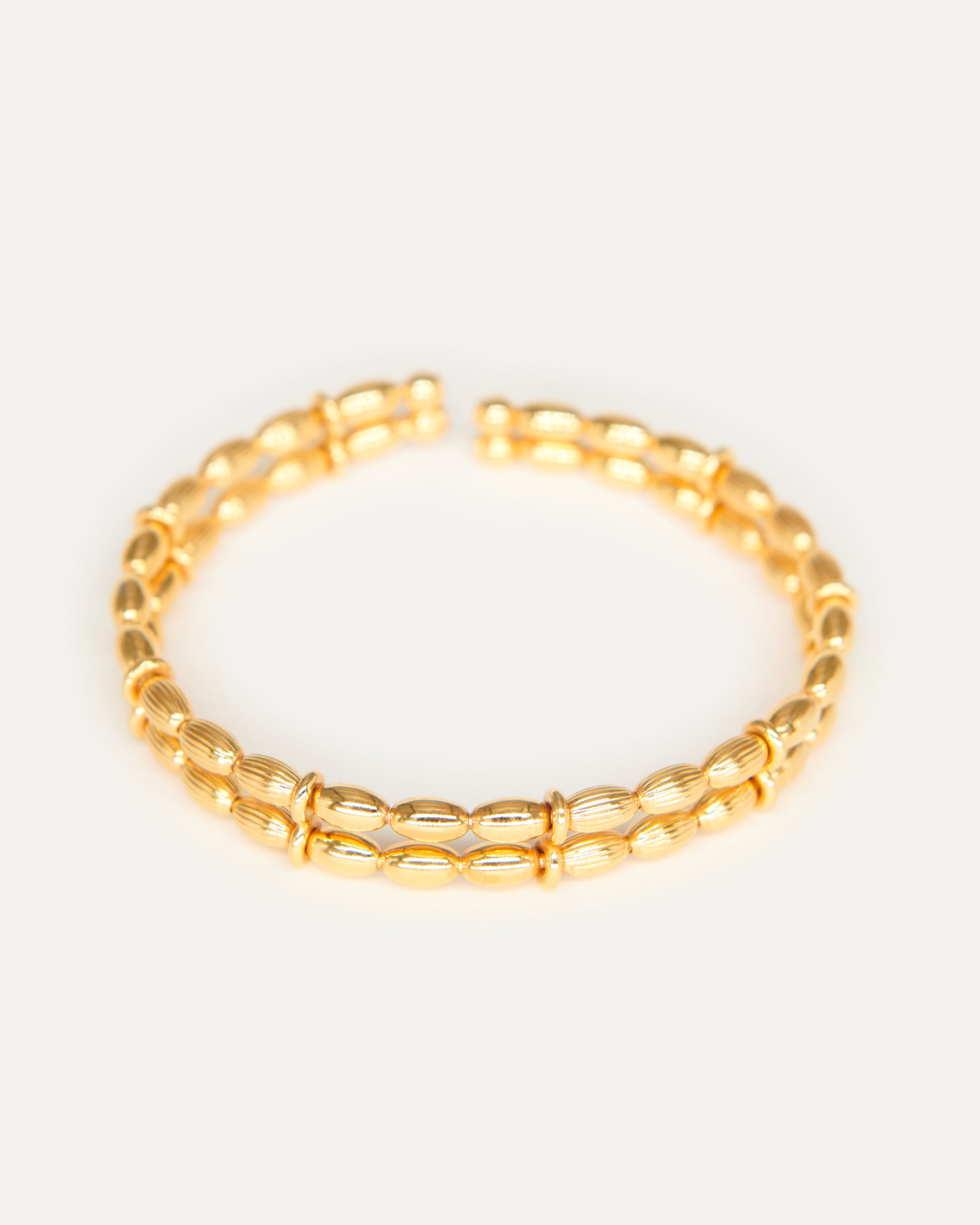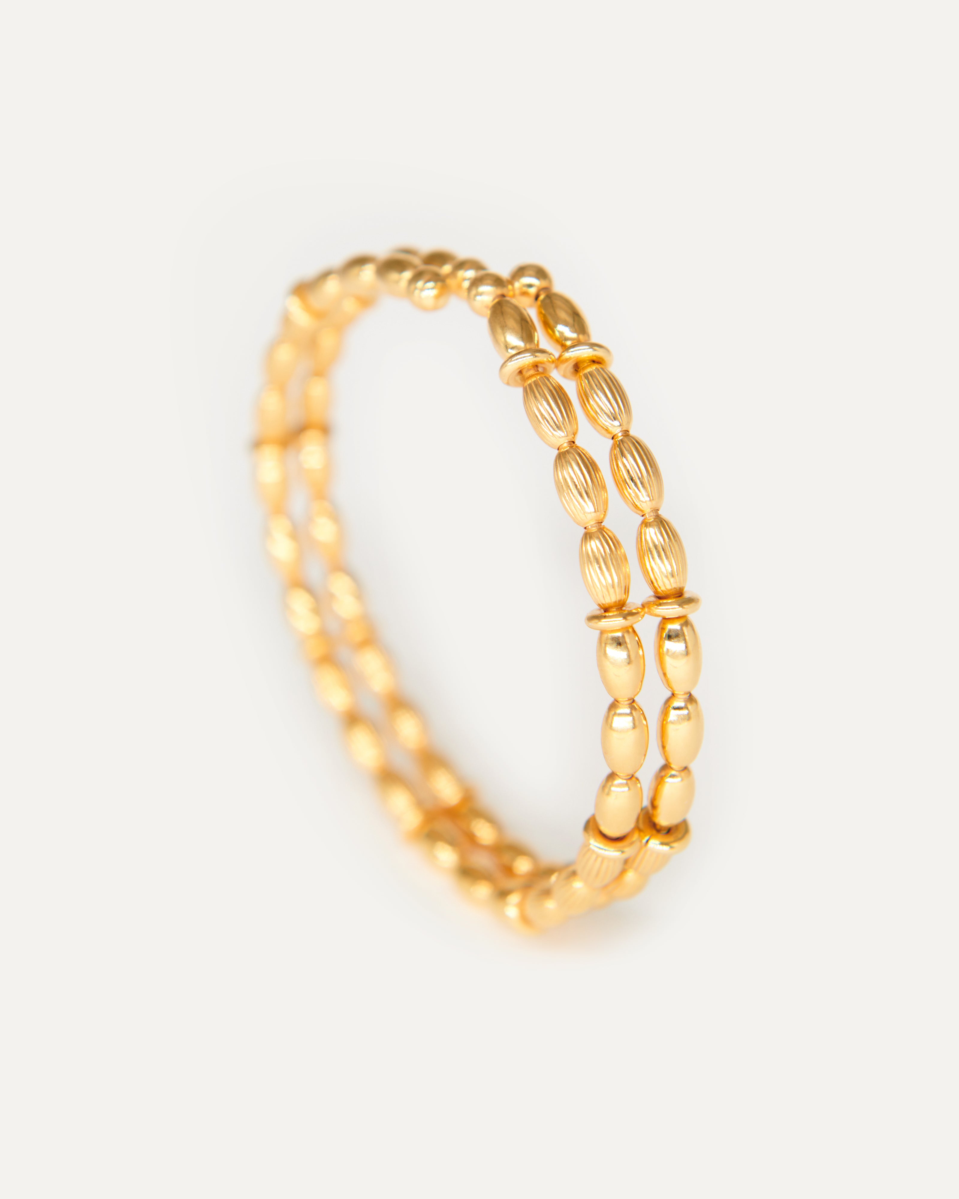 -Pulsera formada por dos hileras de bolas alargadas lisas y mate