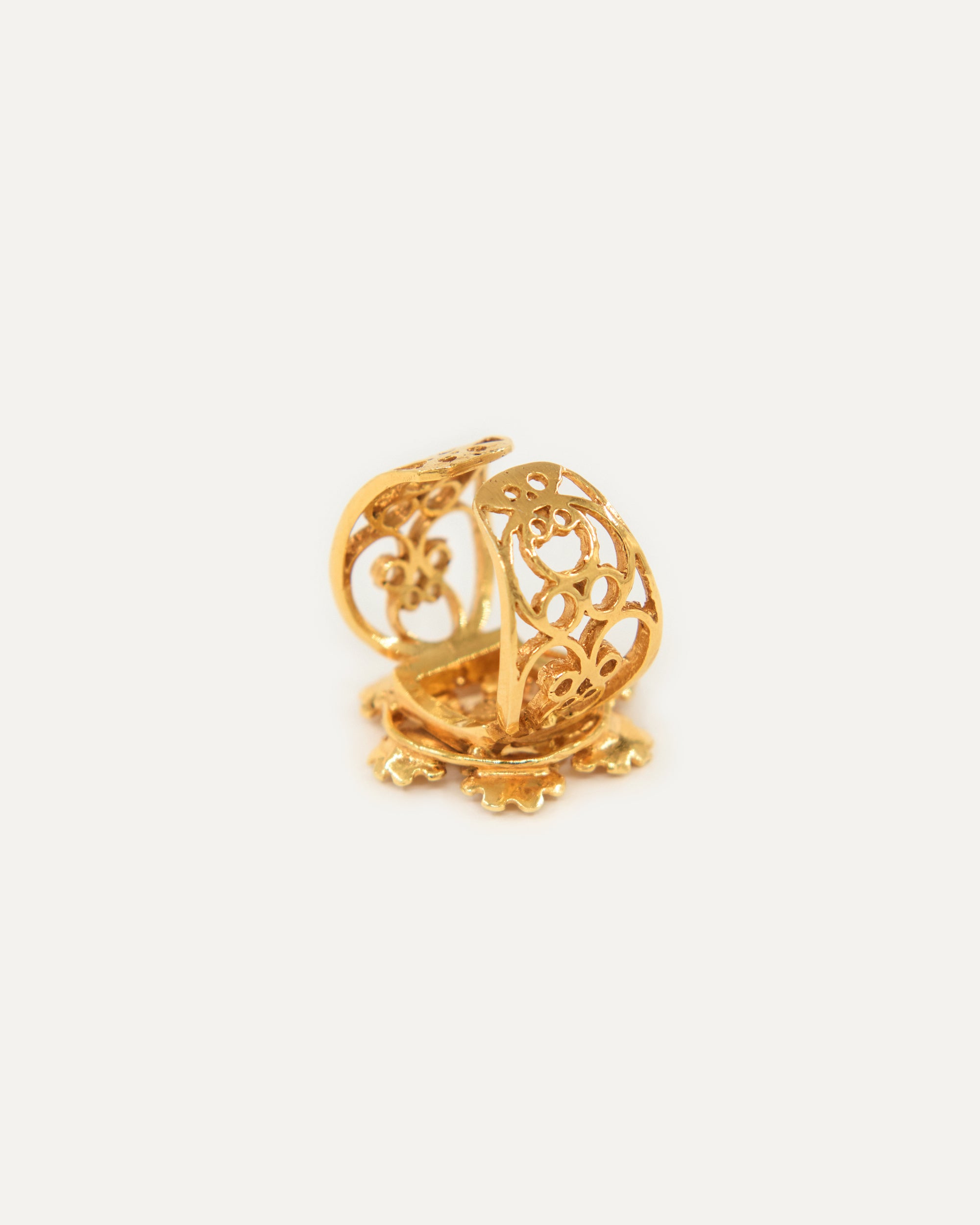 Este anillo es un diseño propio de Elisa y está formado por un conjunto de pequeñas flores que, unidas, dan forma a una flor mayor. Es la joya base de la edición 'Florecer' y diseño propio de Elisa, celebran la expansión y la belleza de florecer, capturando la esencia silvestre y libre de Ibiza.