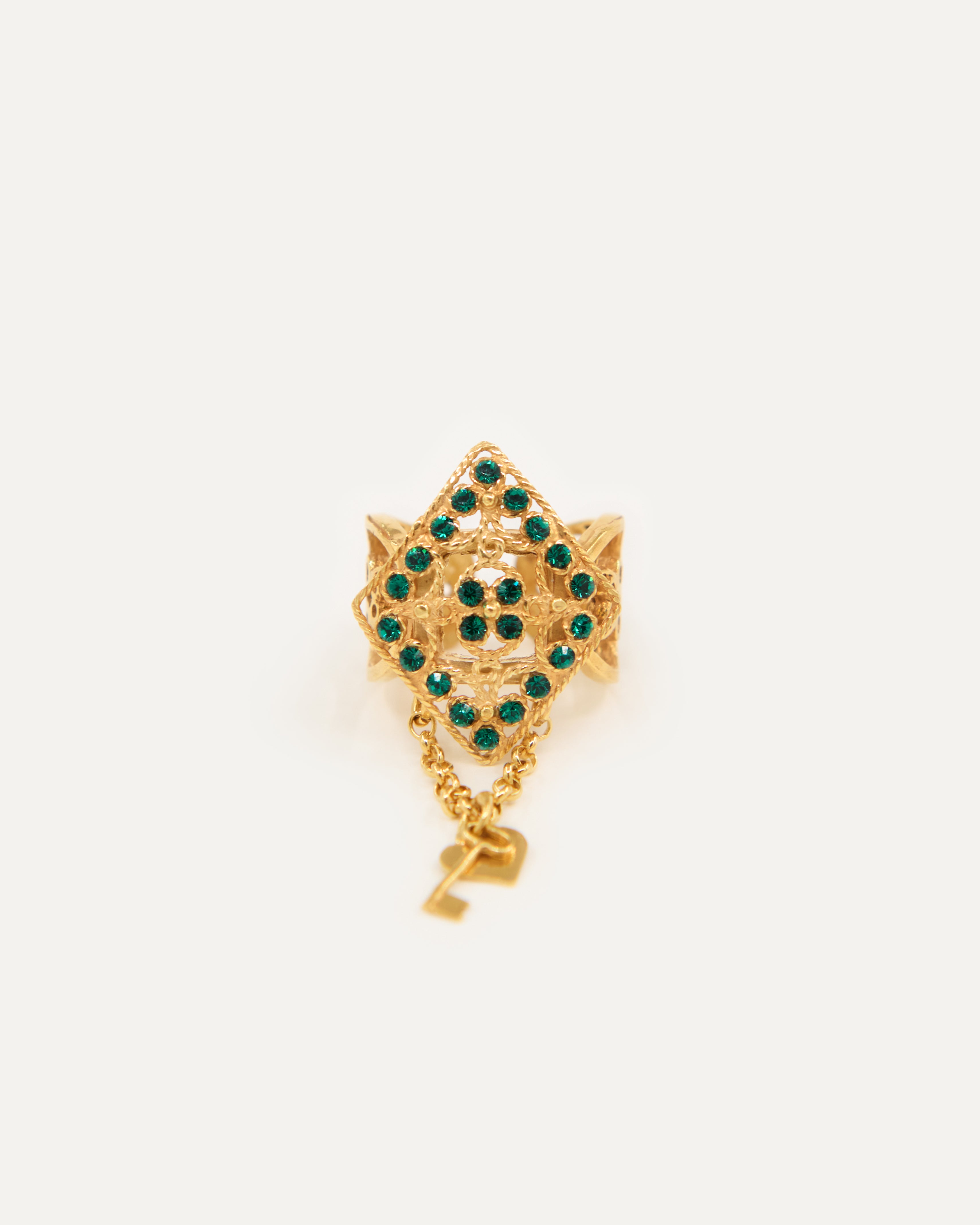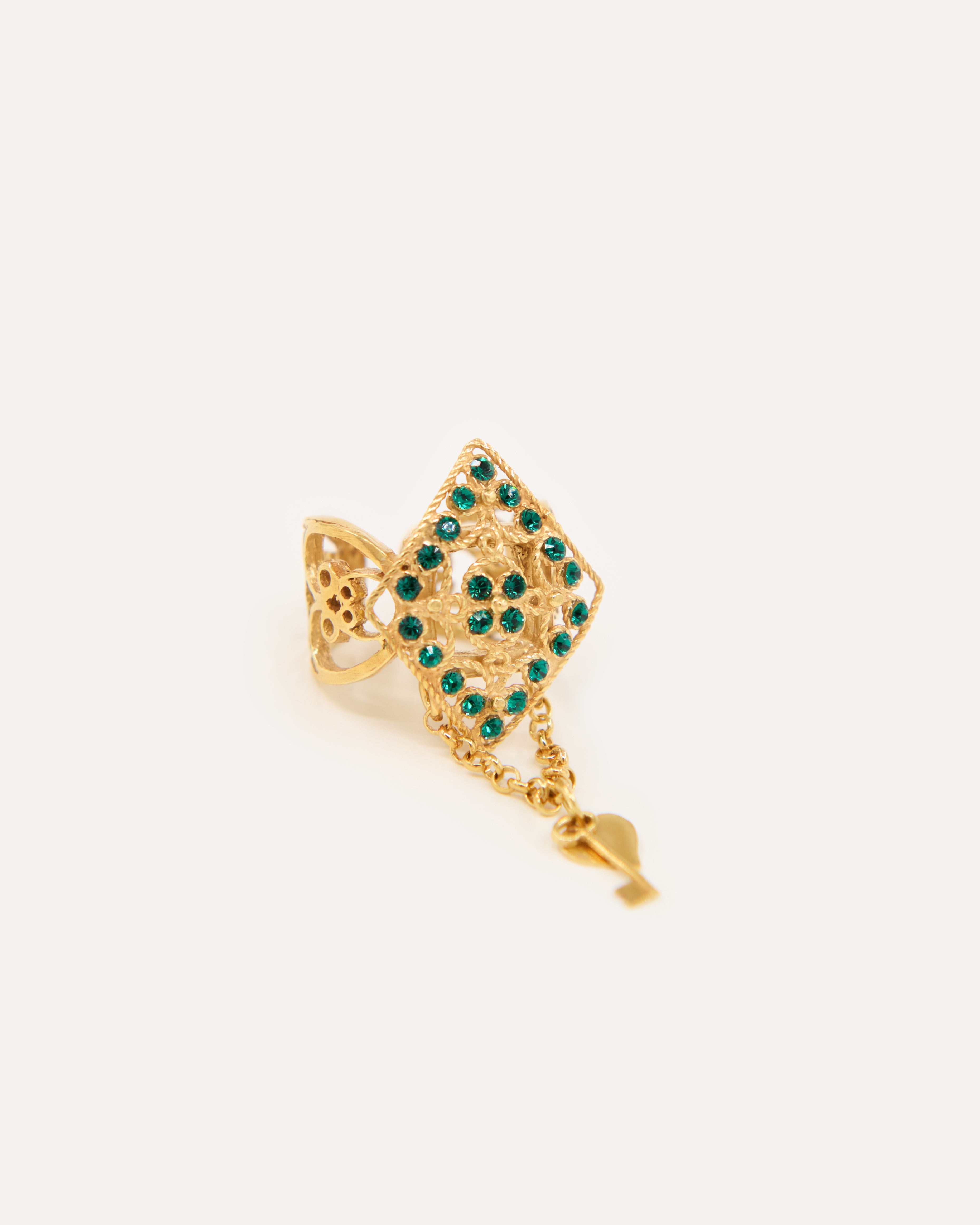 -Rombo pequeño de filigrana plana con cristales incrustados y cadenas acabadas en llave y corazón