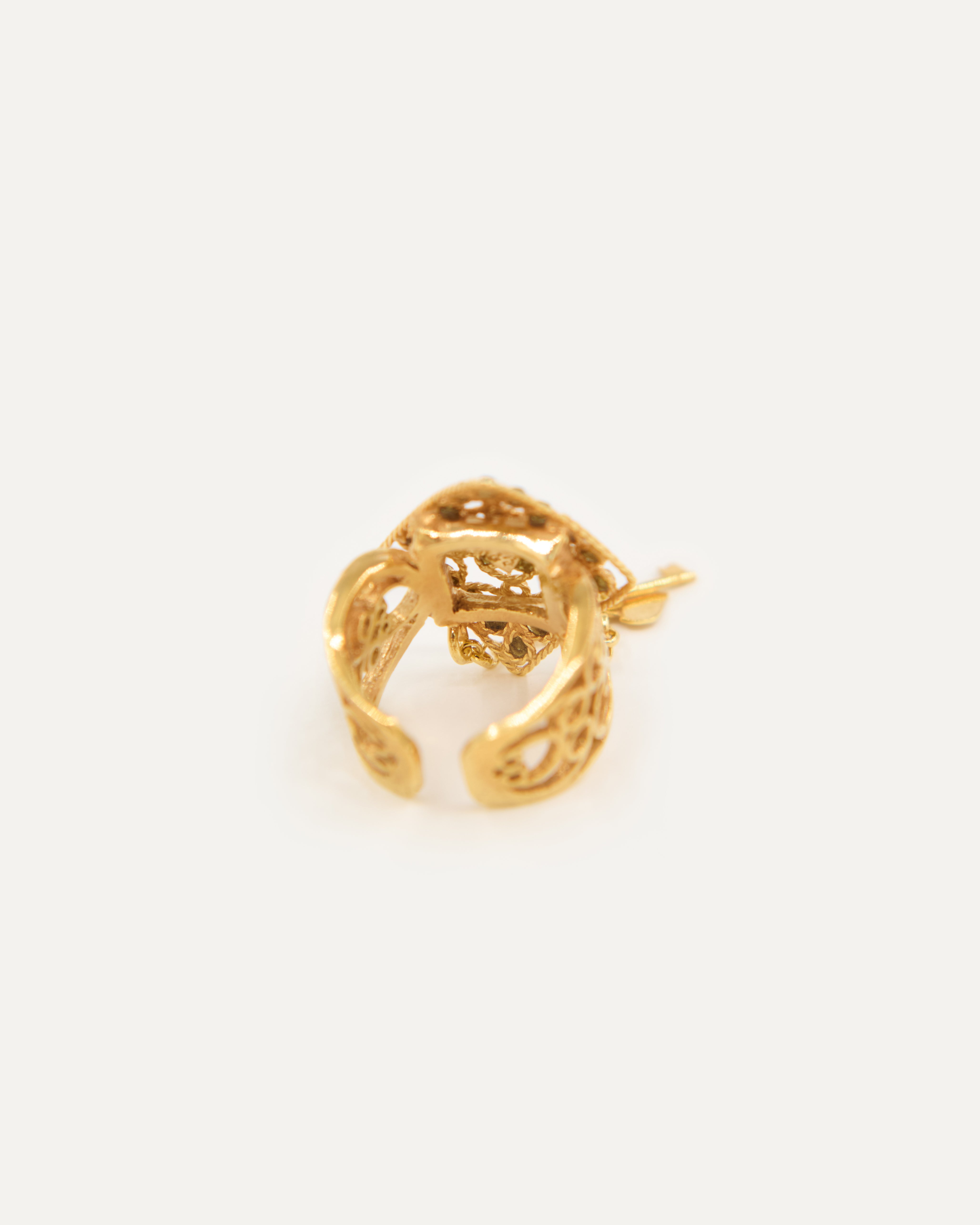 Este anillo recupera la esencia rural de Ibiza y la traduce a un lenguaje contemporáneo. Elisa Pomar reinterpreta la filigrana tradicional de la joyería ibicenca y la transforma en una versión plana y depurada, manteniendo su alma ancestral. Joyas que no adornan: revelan.