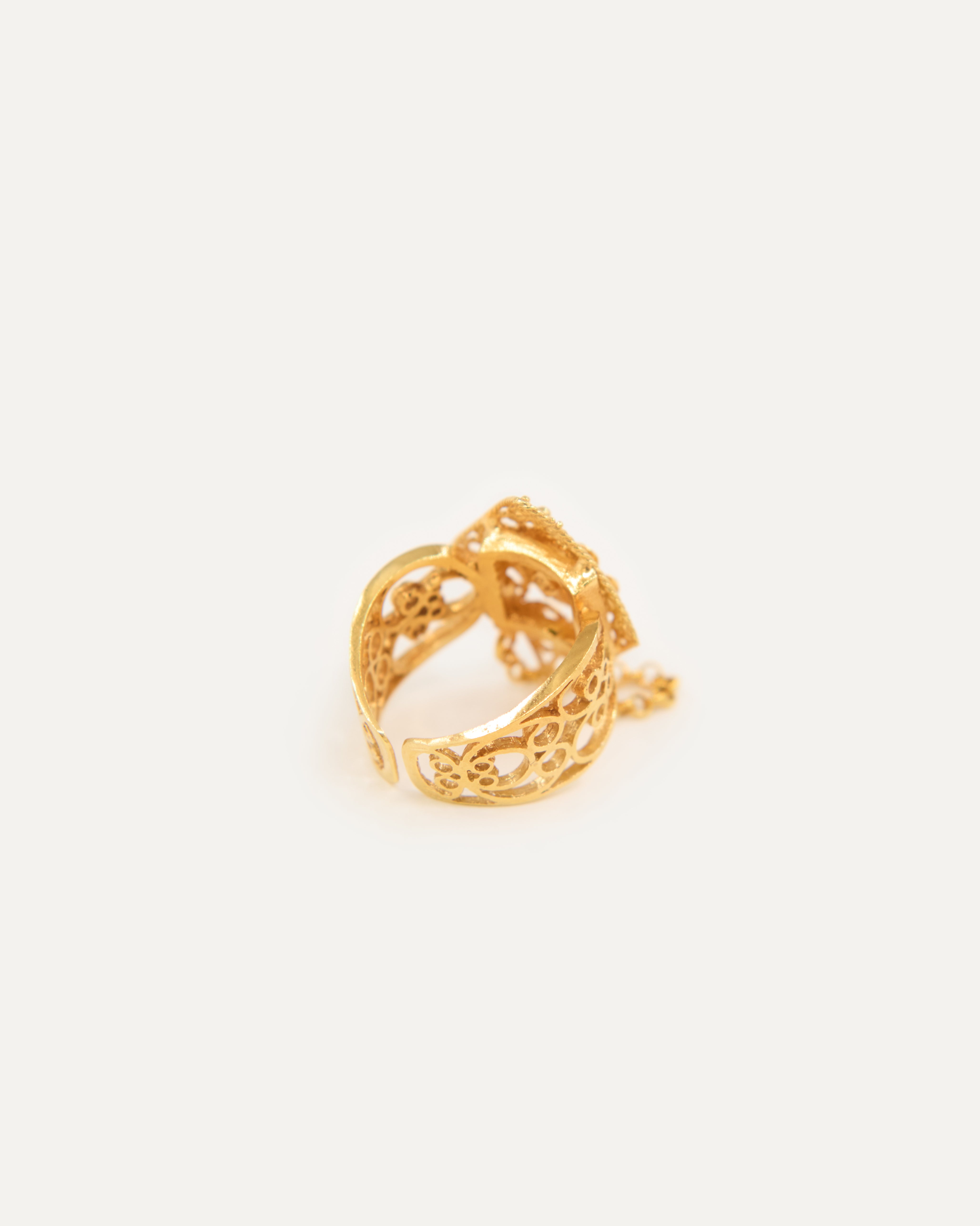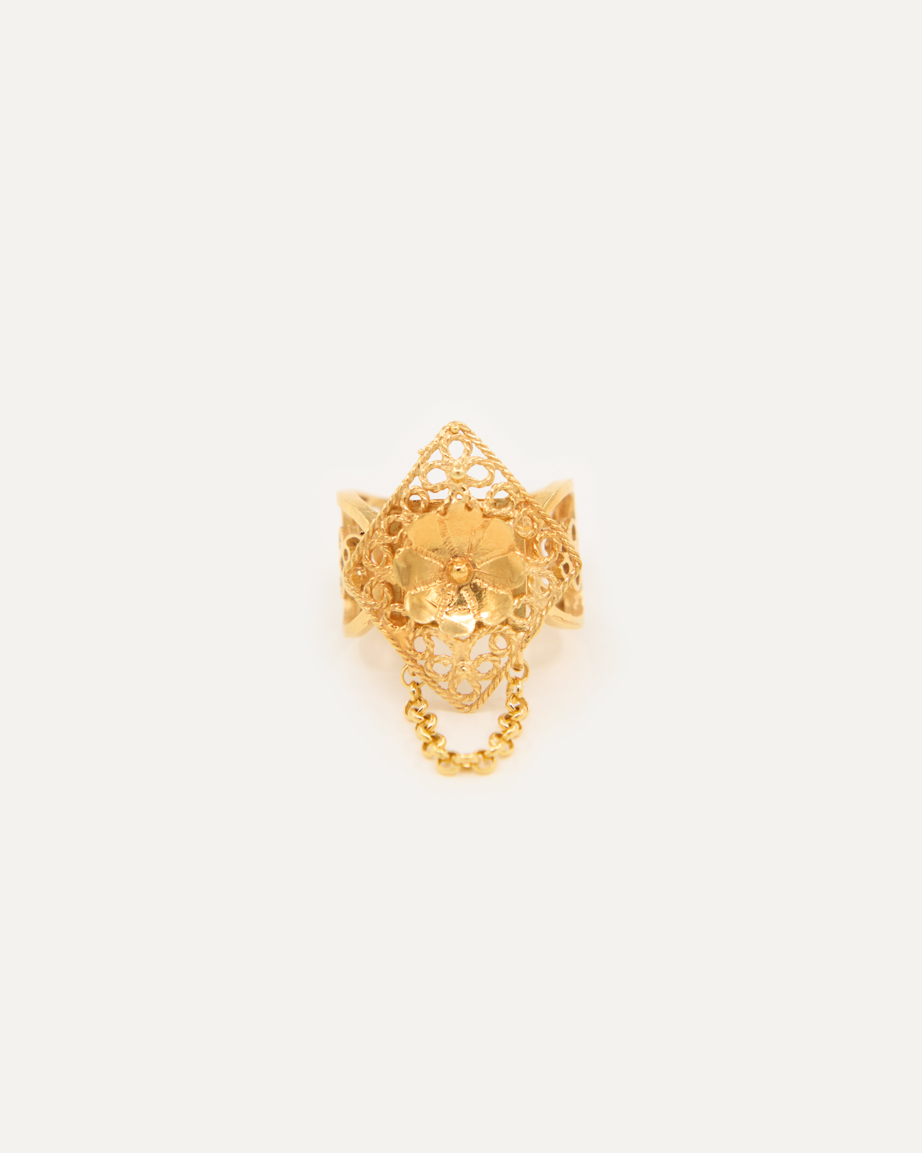 Este anillo recupera la esencia rural de Ibiza y la traduce a un lenguaje contemporáneo. Elisa Pomar reinterpreta la filigrana tradicional de la joyería ibicenca y la transforma en una versión plana y depurada, manteniendo su alma ancestral. Joyas que no adornan: revelan.