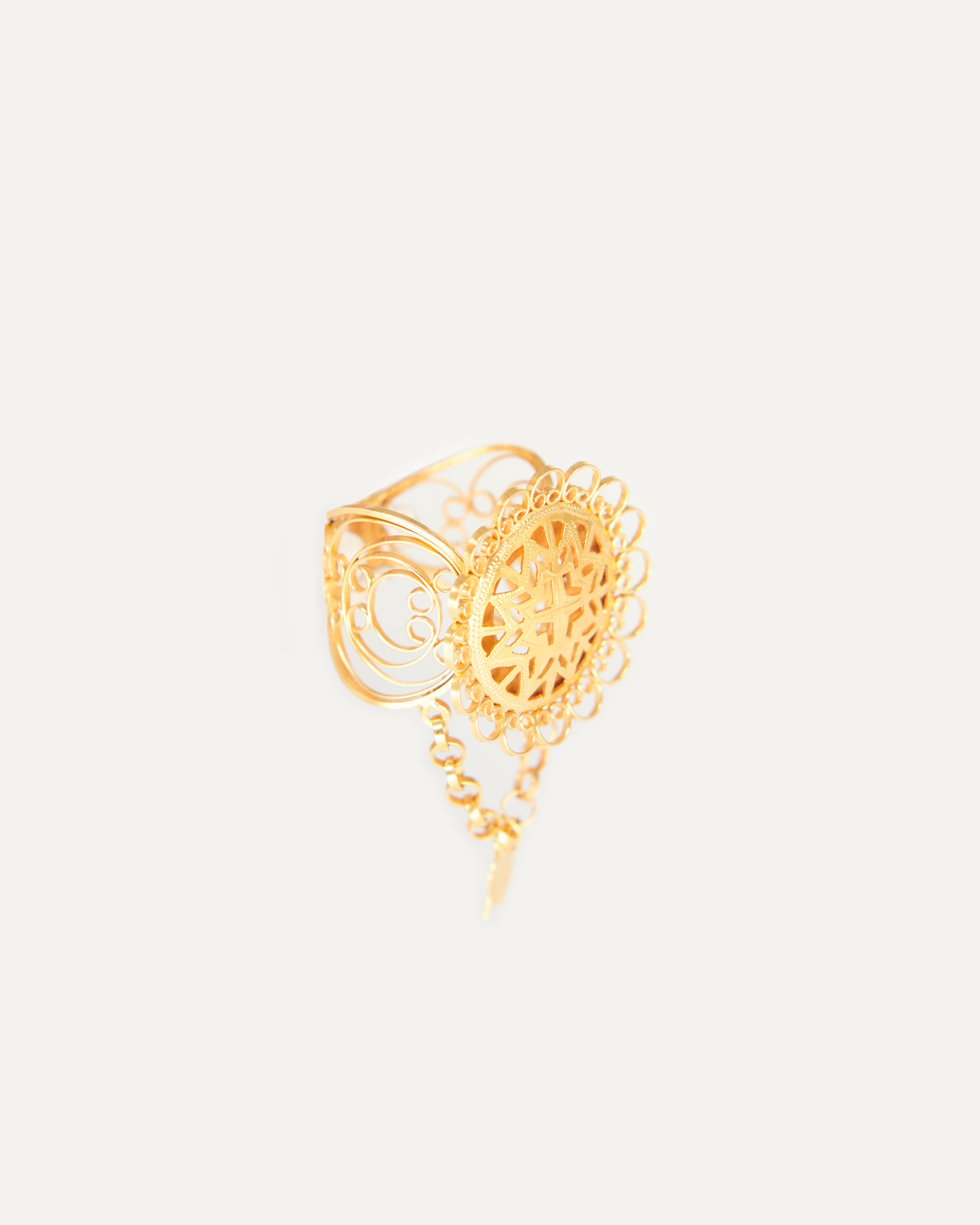 Este anillo es un diseño propio de Elisa. Esta estrella de ocho puntas es uno de los elementos principales de los Tartessos como parte de adoración al Sol, que era representado como una circunferencia con ocho rayos. Este símbolo es muy importante en la cultura ibicenca y llegó a la isla de la mano de los árabes, que la adoptaron del pueblo tartésico después de arrebatarles Andalucía.