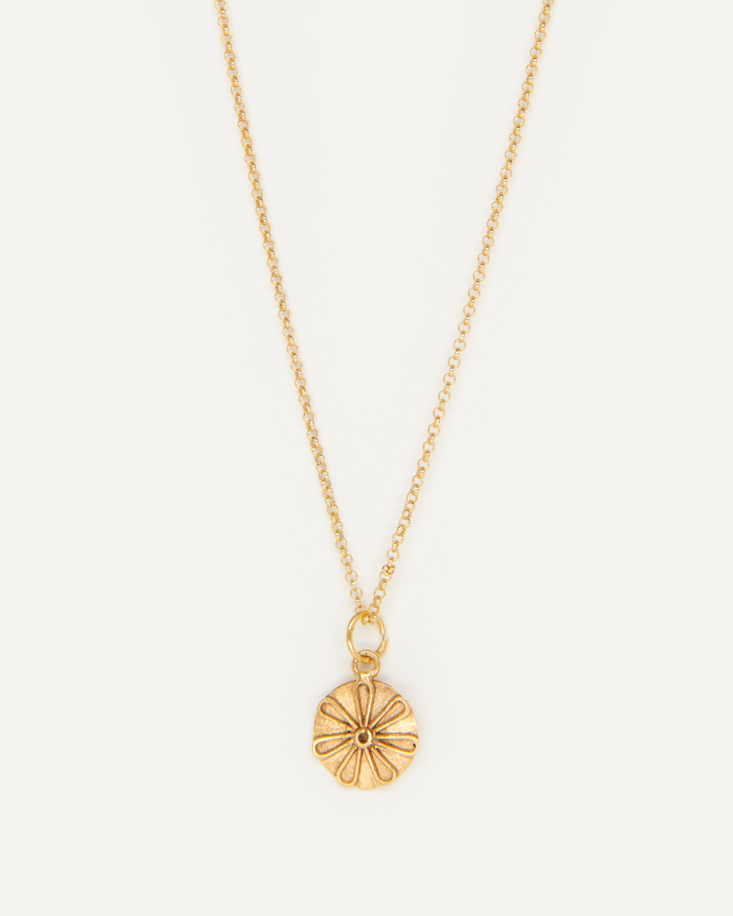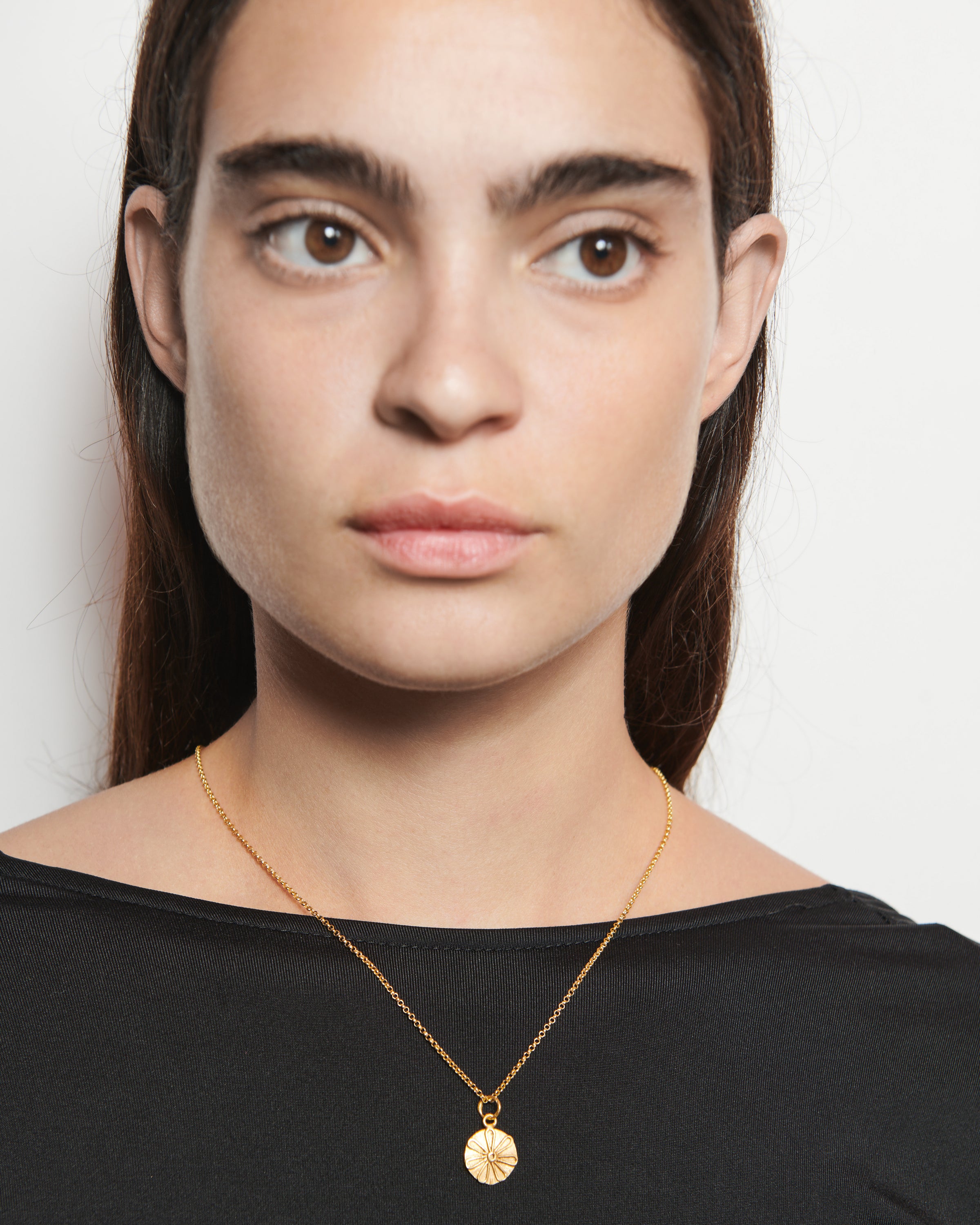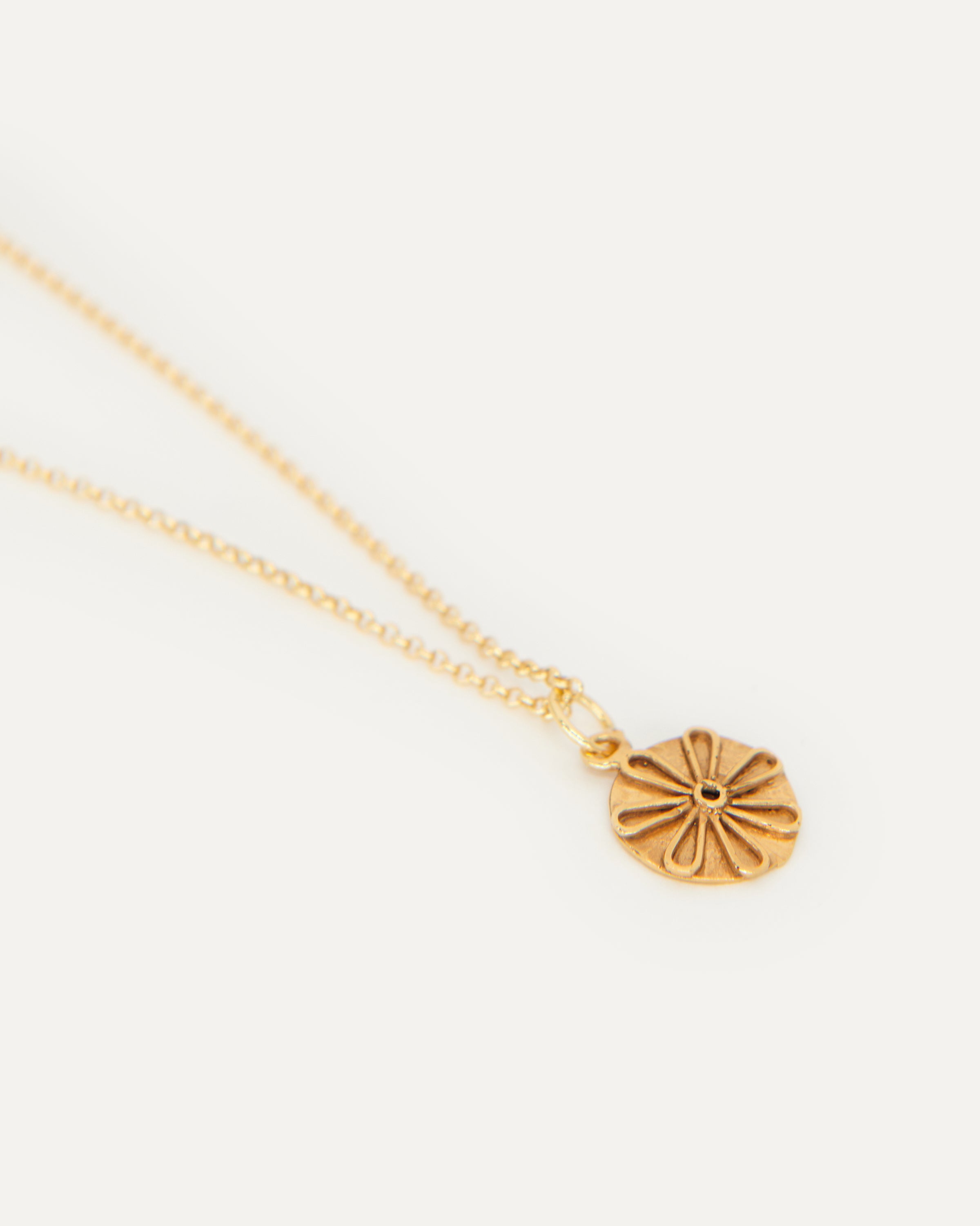 Este colgante pertenece a la edición fenicia, un conjunto de joyas que Elisa crea en honor a la civilización que convirtió Ibiza en un enclave estratégico mundial. Su afán por evolucionar la joyería, el uso de cristales de colores o la fascinación por el oro son rasgos propiamente fenicios que forman parte del ADN de la marca ibicenca. Por esa razón, la diseñadora ha optado por elementos como esta flor para homenajear a ese pueblo tan influyente en Ibiza.