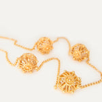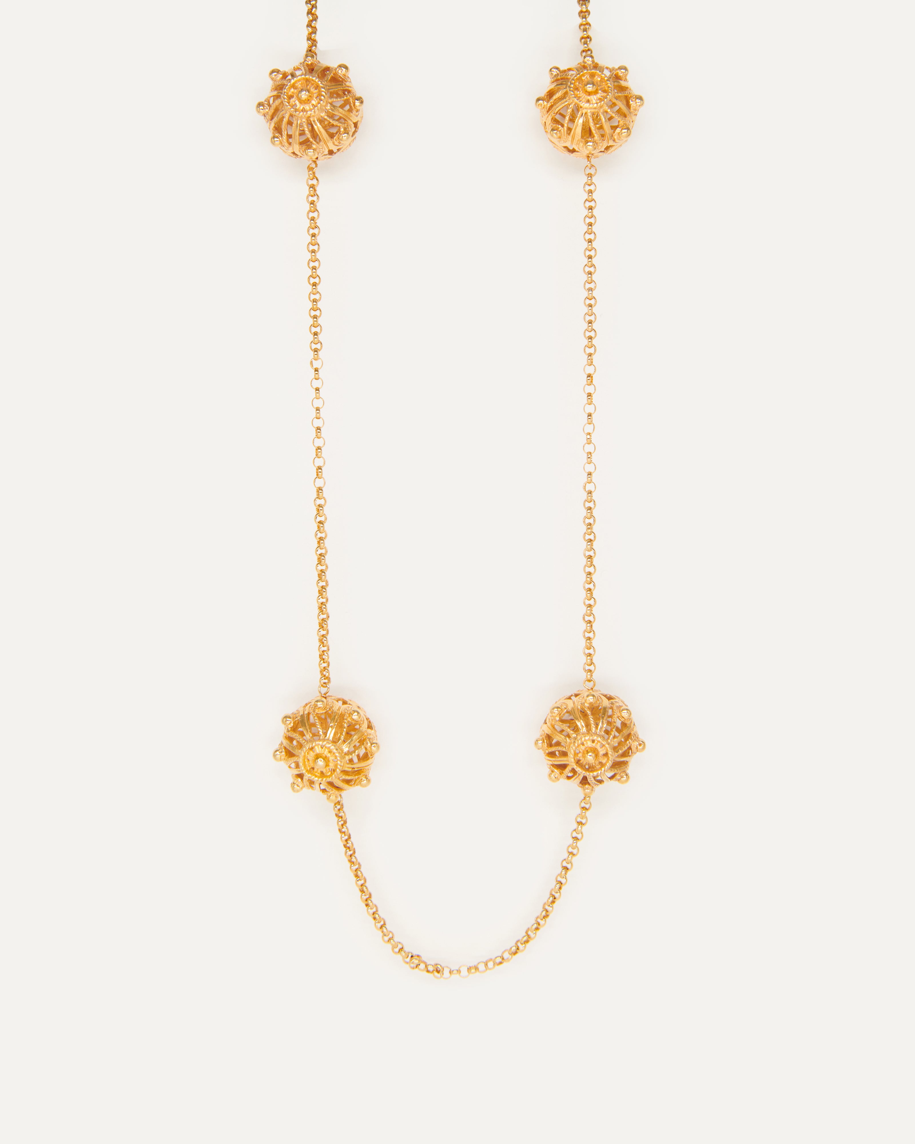 Collar inspirado en el tradicional botón de 'Jupetí'. El 'Jupetí' es el chaleco que usan los hombres para el baile tradicional ibicenco, el 'ball pagès', y que luce 24 botones de plata que van pasando de generación en generación. Elisa ha creado un diseño impactante, para personas atrevidas, formado por cuatro botones de un tamaño mayor al tradicional incrustados en una cadena gruesa.