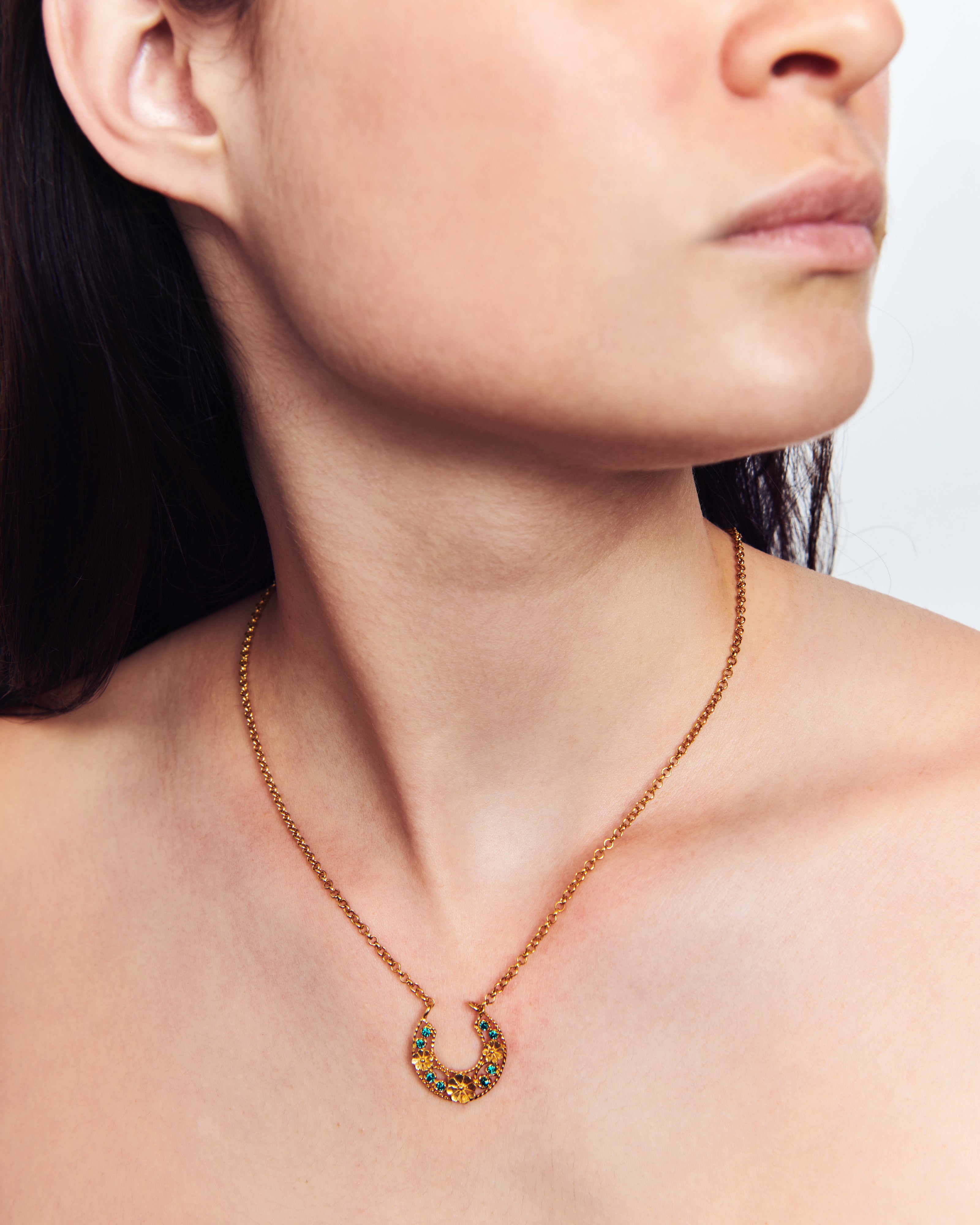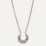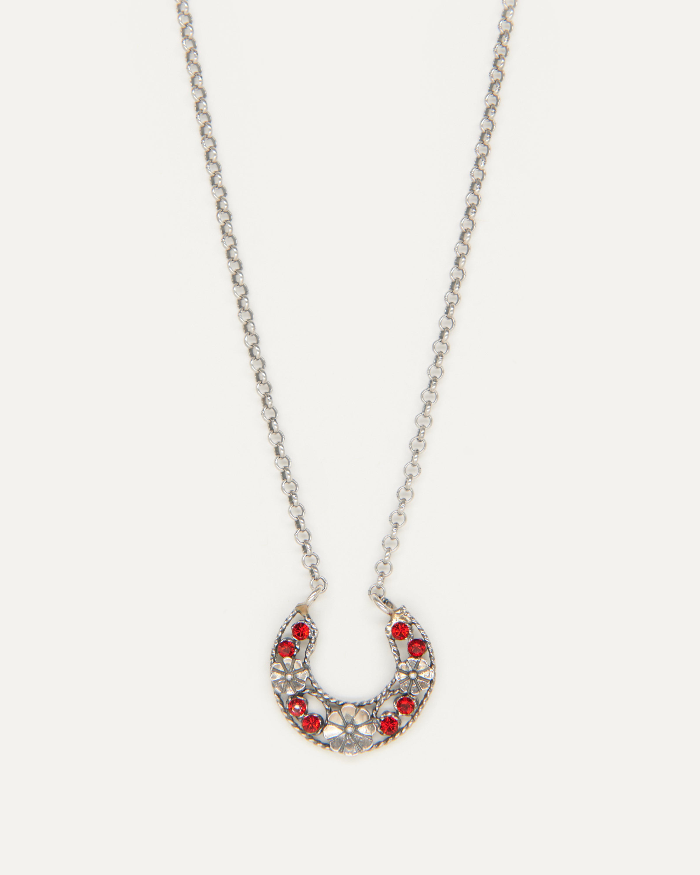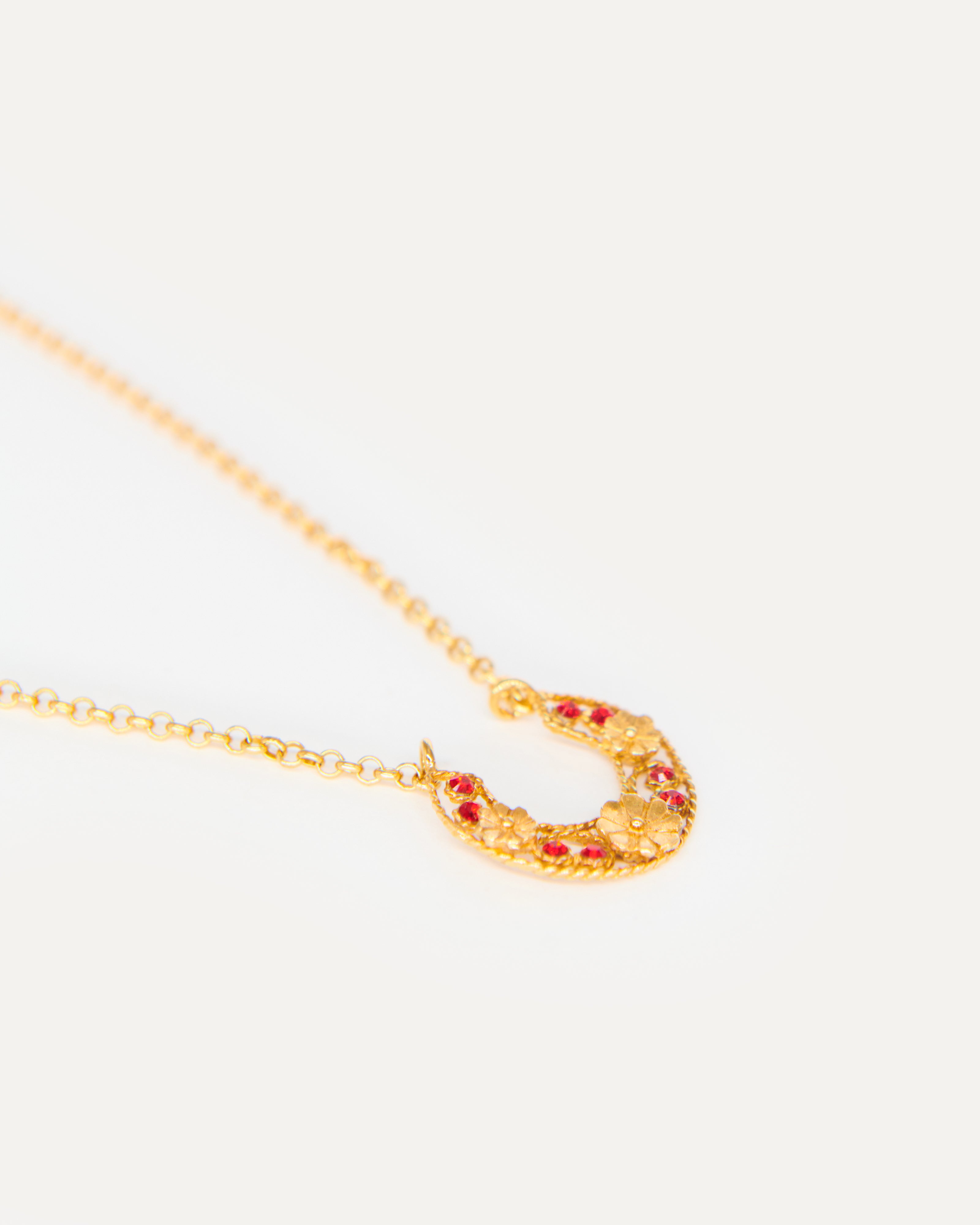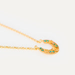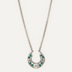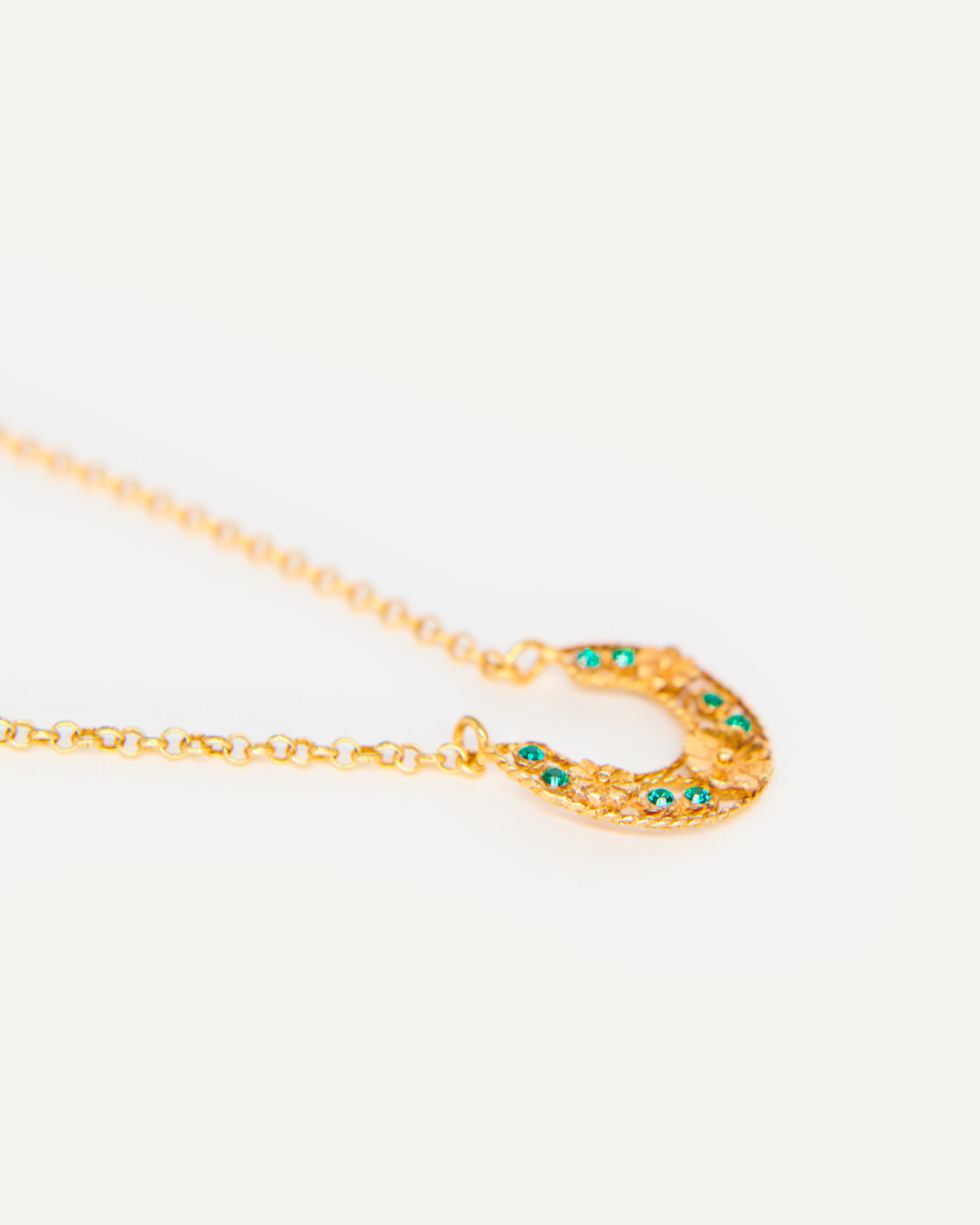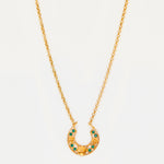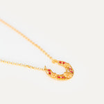 Colgante inspirado en la clásica 'ferradura' ibicenca. A Elisa, esta tradicional pieza siempre le ha recordado a la Luna, un elemento muy influyente en el movimiento del mar, gran inspiración para la diseñadora y desencadenante de una evolución a diferentes diseños actualmente esenciales para la marca. En este caso, Elisa ha pensado en una Luna para el público más joven con un diseño pequeño, sencillo y con el toque de color que le aportan los cristales de primera calidad.
