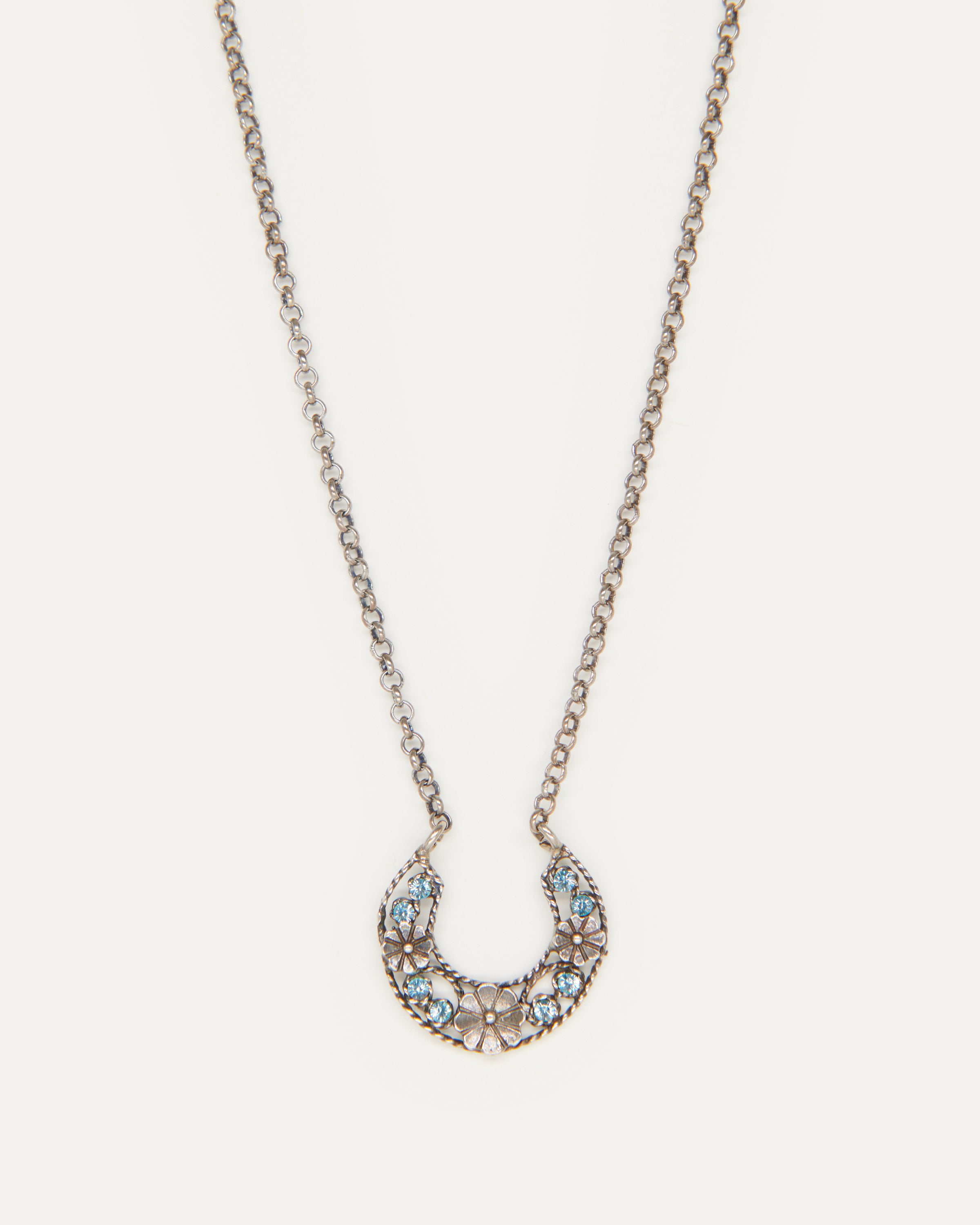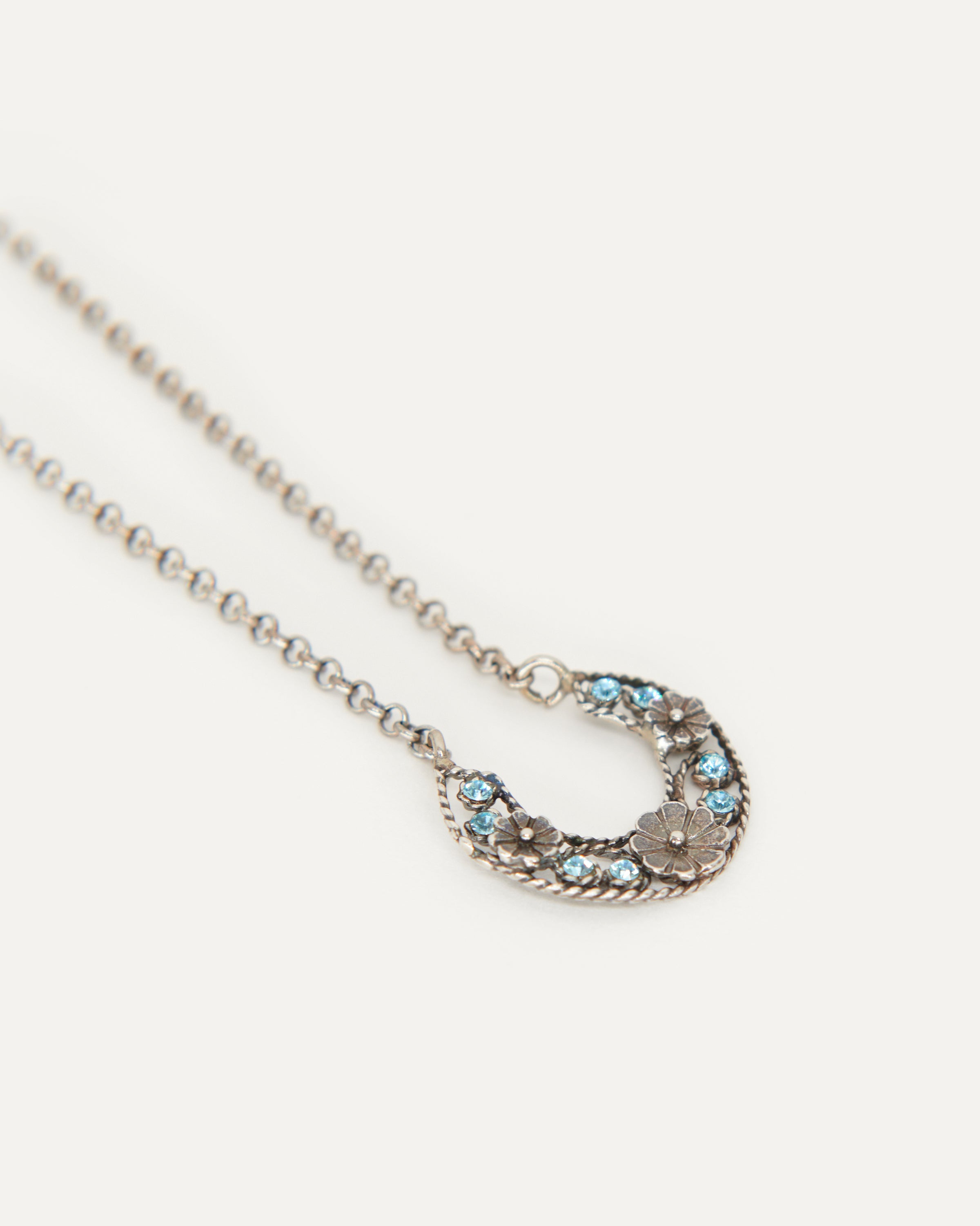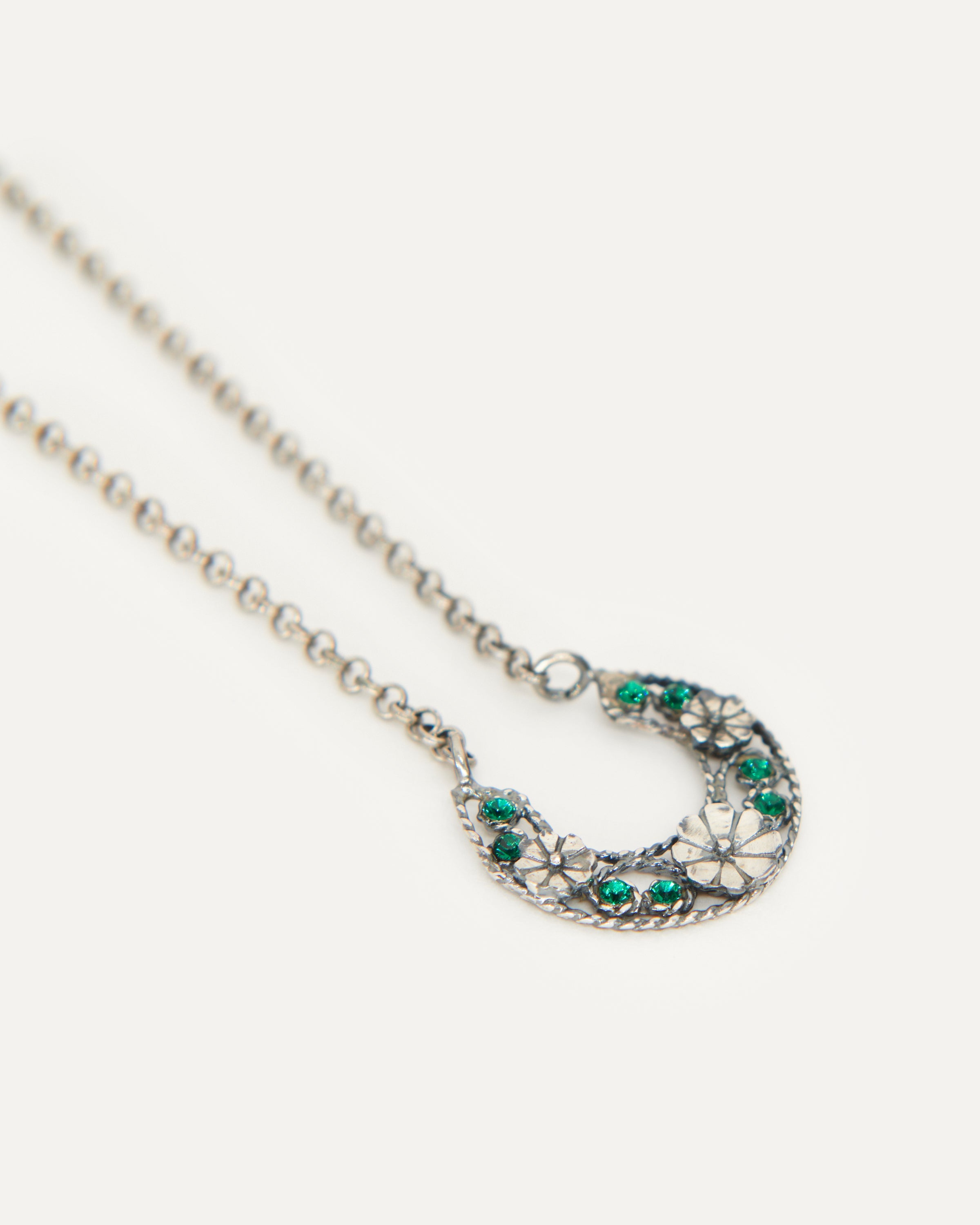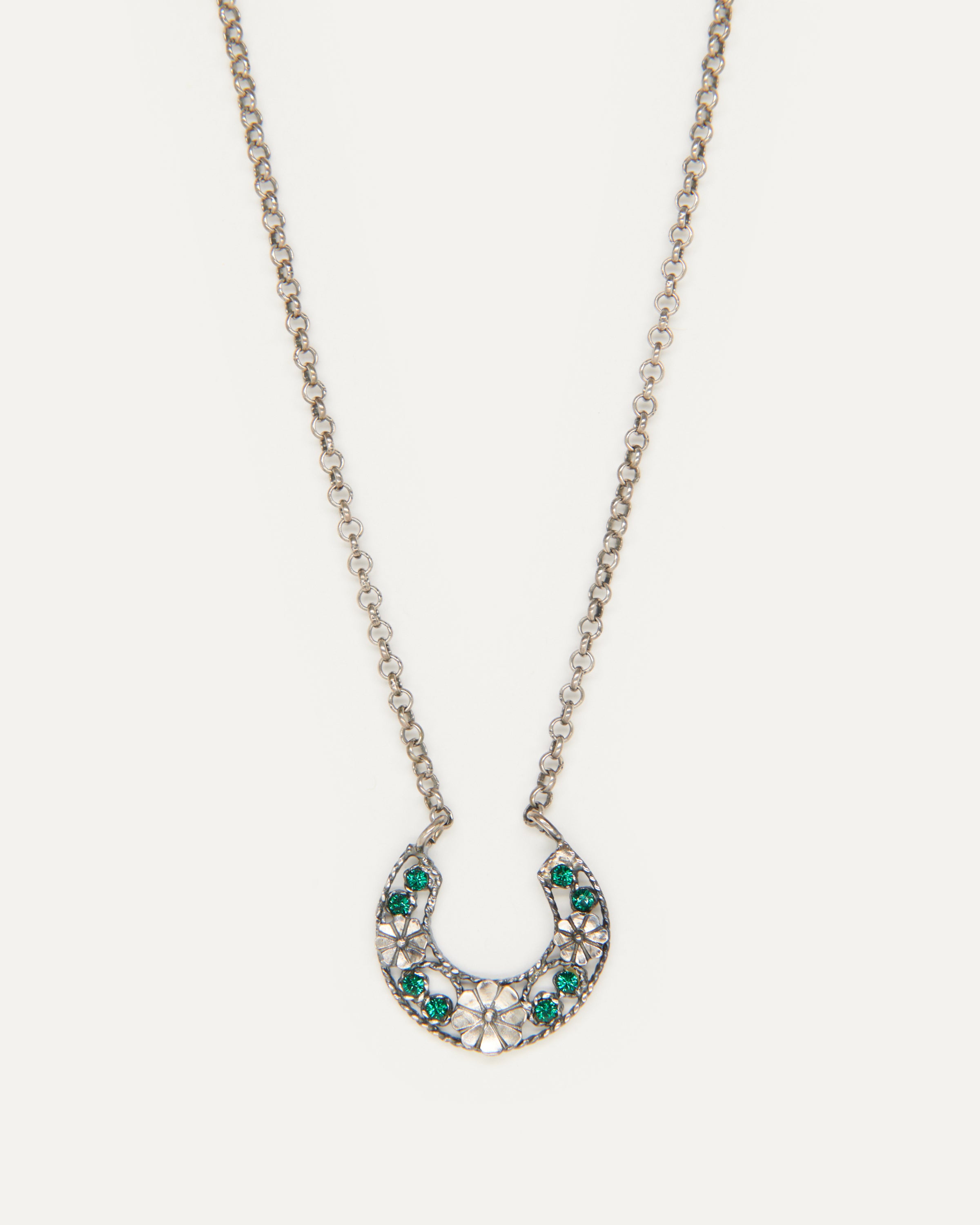 Colgante inspirado en la clásica 'ferradura' ibicenca. A Elisa, esta tradicional pieza siempre le ha recordado a la Luna, un elemento muy influyente en el movimiento del mar, gran inspiración para la diseñadora y desencadenante de una evolución a diferentes diseños actualmente esenciales para la marca. En este caso, Elisa ha pensado en una Luna para el público más joven con un diseño pequeño, sencillo y con el toque de color que le aportan los cristales de primera calidad.