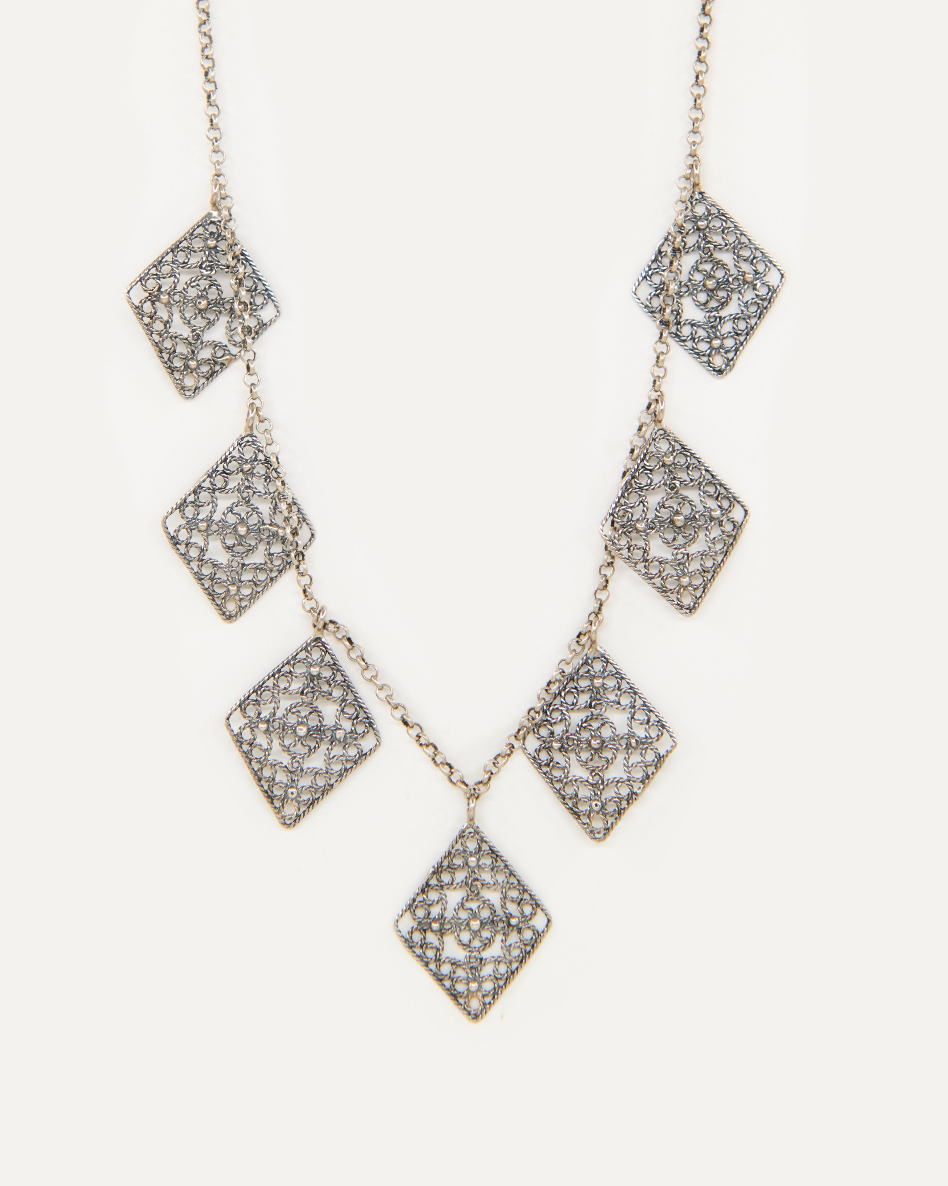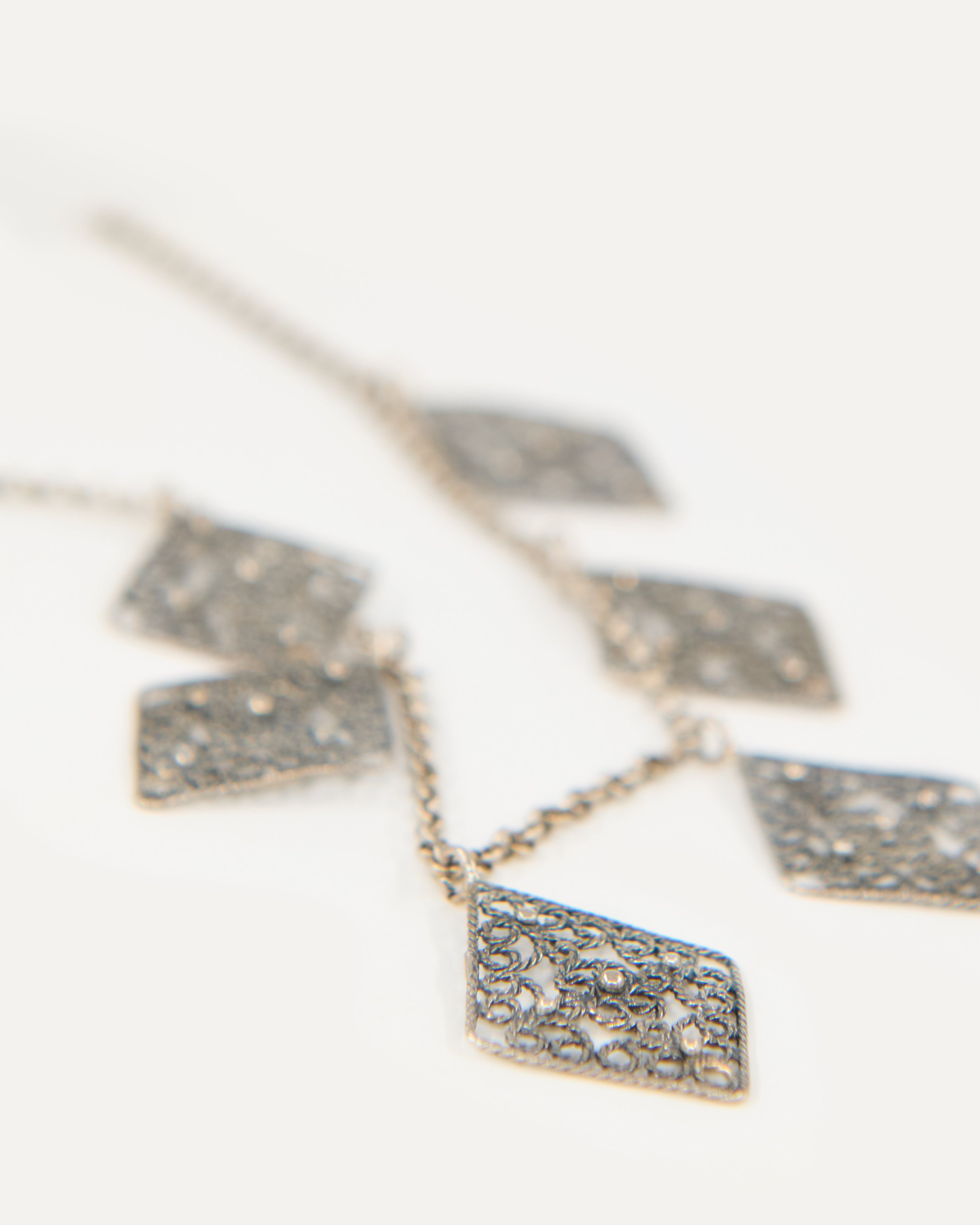 Collar con un diseño propio de Elisa e inspirados en el Gra d'Ordi de la Emprendada ibicenca. El nombre 'Gra d'Ordi' se debe a la similitud de la joya, que tiene forma de rombo, con el grano de la cebada que tan frecuentada era en los campos ibicencos. En este caso, la diseñadora ideó la filigrana plana con el objetivo de simplificar un trabajo tan elaborado como la filigrana que había usado en sus diseños anteriores. Además, lo convierte en collar a modo de amuleto y de homenaje a los collares que lucía Tanit, diosa fenicia de Ibiza.