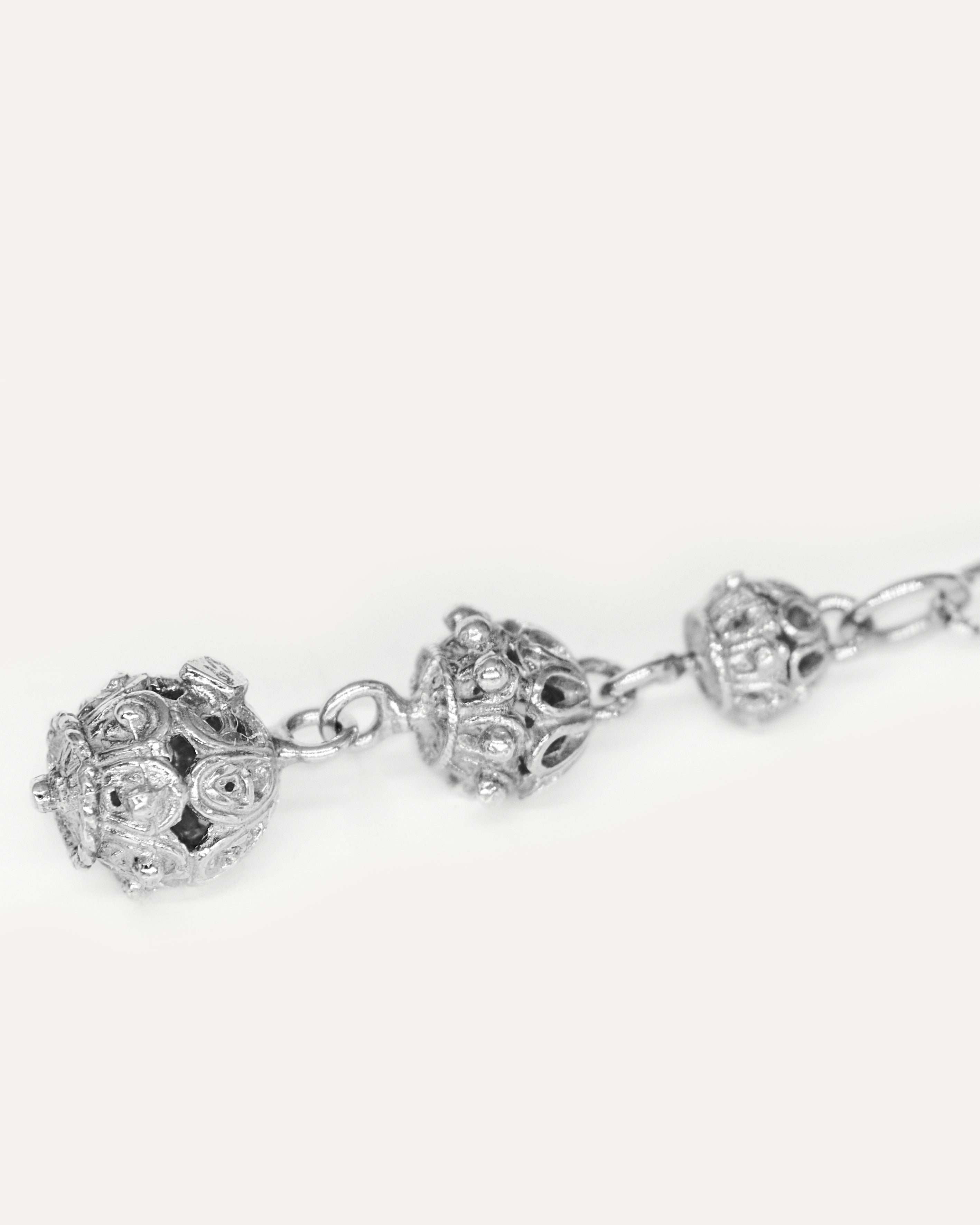 Collar inspirado en el tradicional botón de 'Jupetí'. El 'Jupetí' es el chaleco que usan los hombres para el baile tradicional ibicenco, el 'ball pagès', y que luce 24 botones de plata que van pasando de generación en generación. Con el paso de los años, ha pasado de llevarse solamente en el chaleco a poderse usar de diversas maneras: pendientes, pulseras, collares... En este caso, Elisa ha querido juntar tres botones de tres medidas distintas para empoderar el diseño.