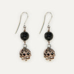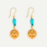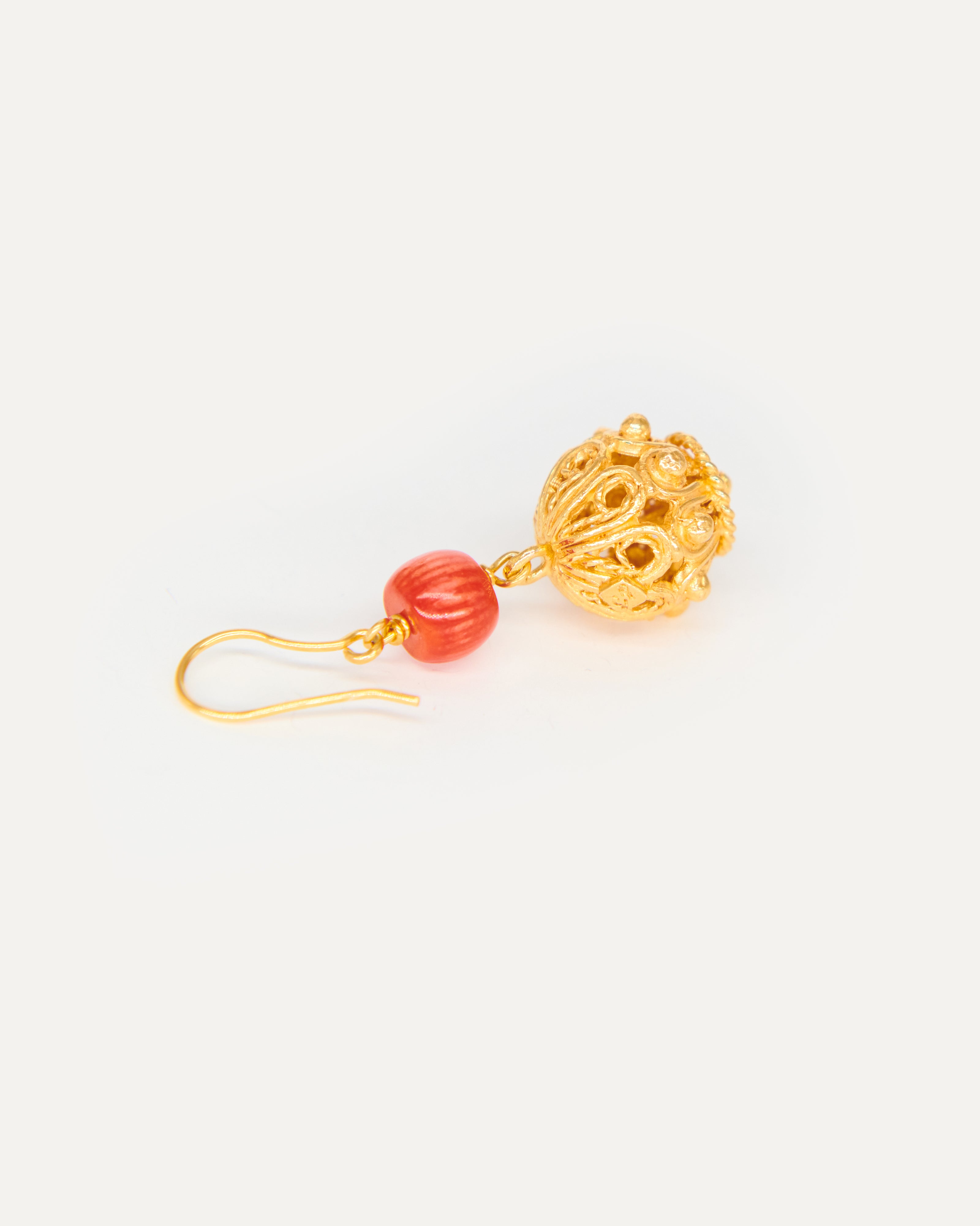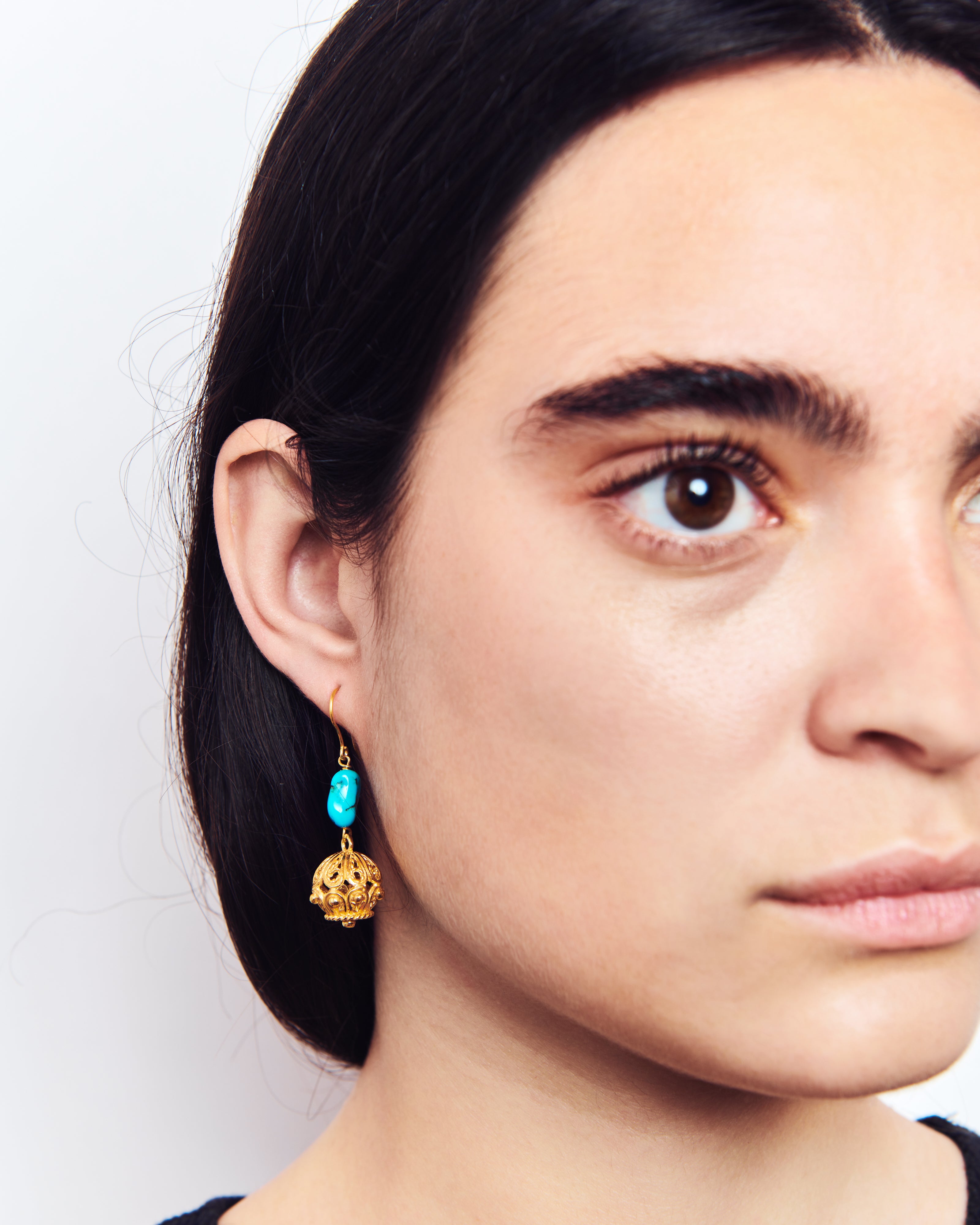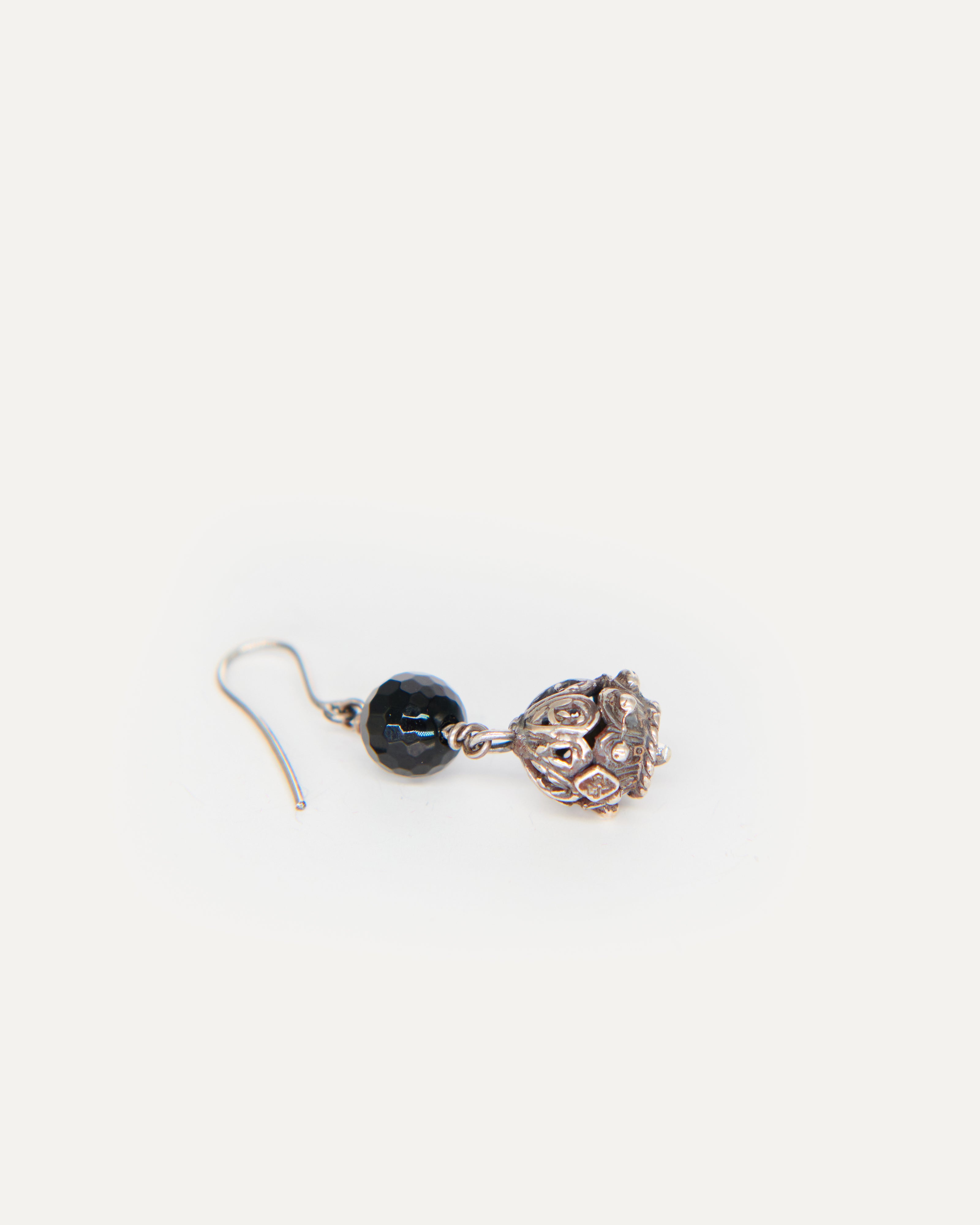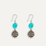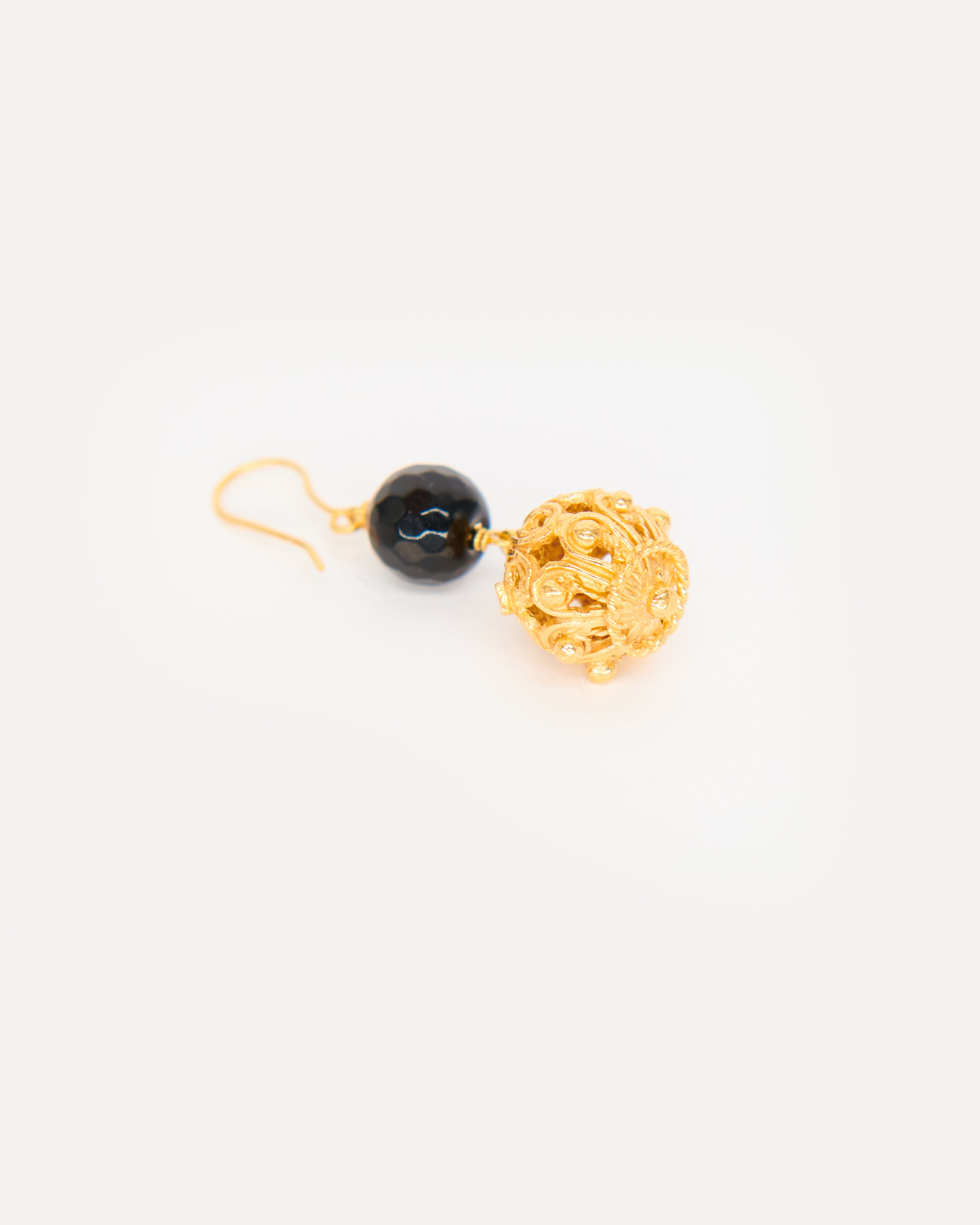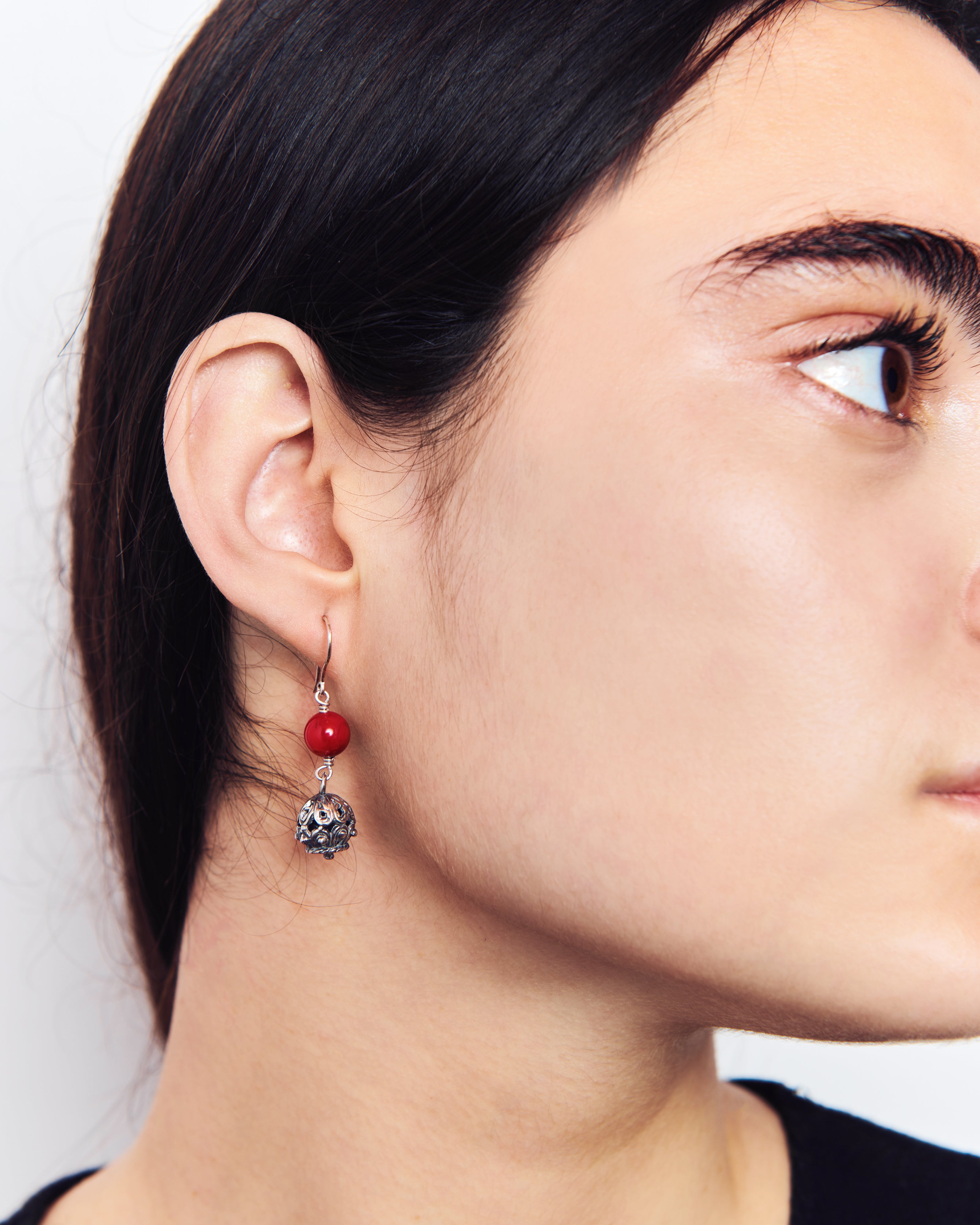 Pendientes inspirados en el tradicional botón de 'Jupetí'. El 'Jupetí' es el chaleco que usan los hombres para el baile tradicional ibicenco, el 'ball pagès', y que luce 24 botones de plata que van pasando de generación en generación. En este caso, Elisa le ha querido dar diferentes toques de color con una piedra semipreciosa.