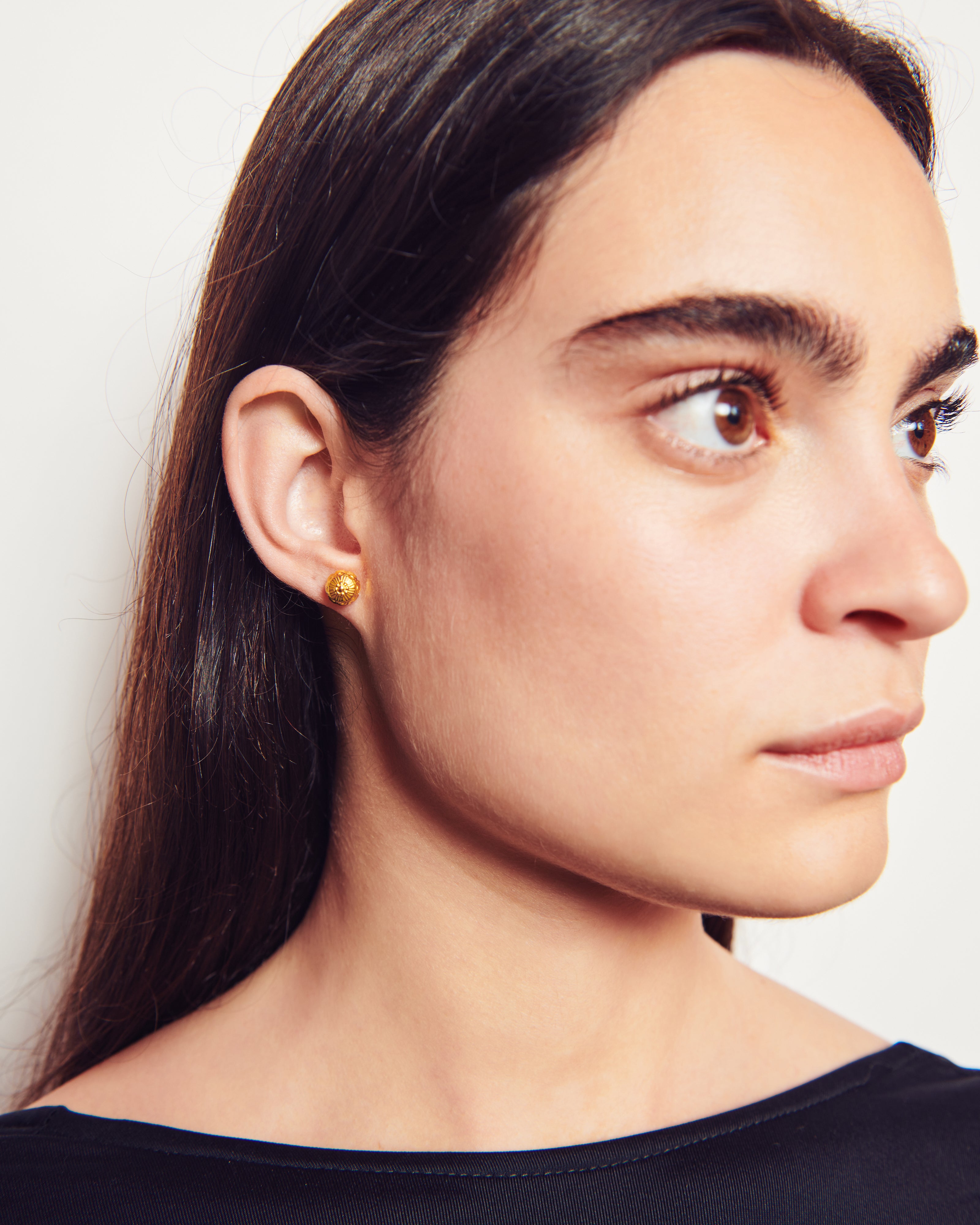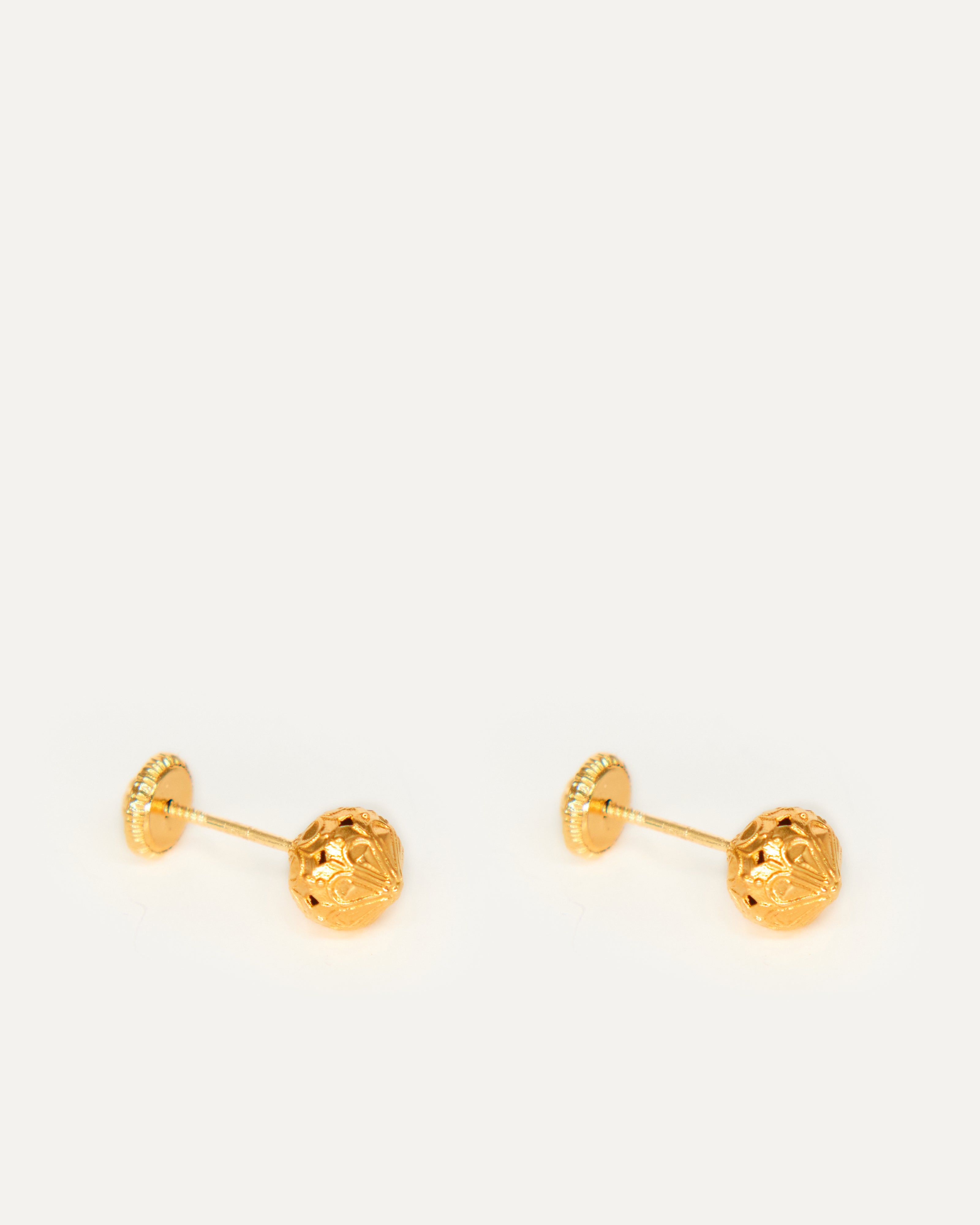 Pendientes inspirados en el tradicional Botón 'Llis'. El 'Botó Llis' es el botón que lleva la mujer de Ibiza para guarnecer los puños de las mangas del 'gipó' (camisa tradicional). Podían lucir hasta 24 botones de oro que van pasando las familias de generación en generación y lo lucían exclusivamente para los bailes tradicionales, fiestas populares y eventos religiosos.