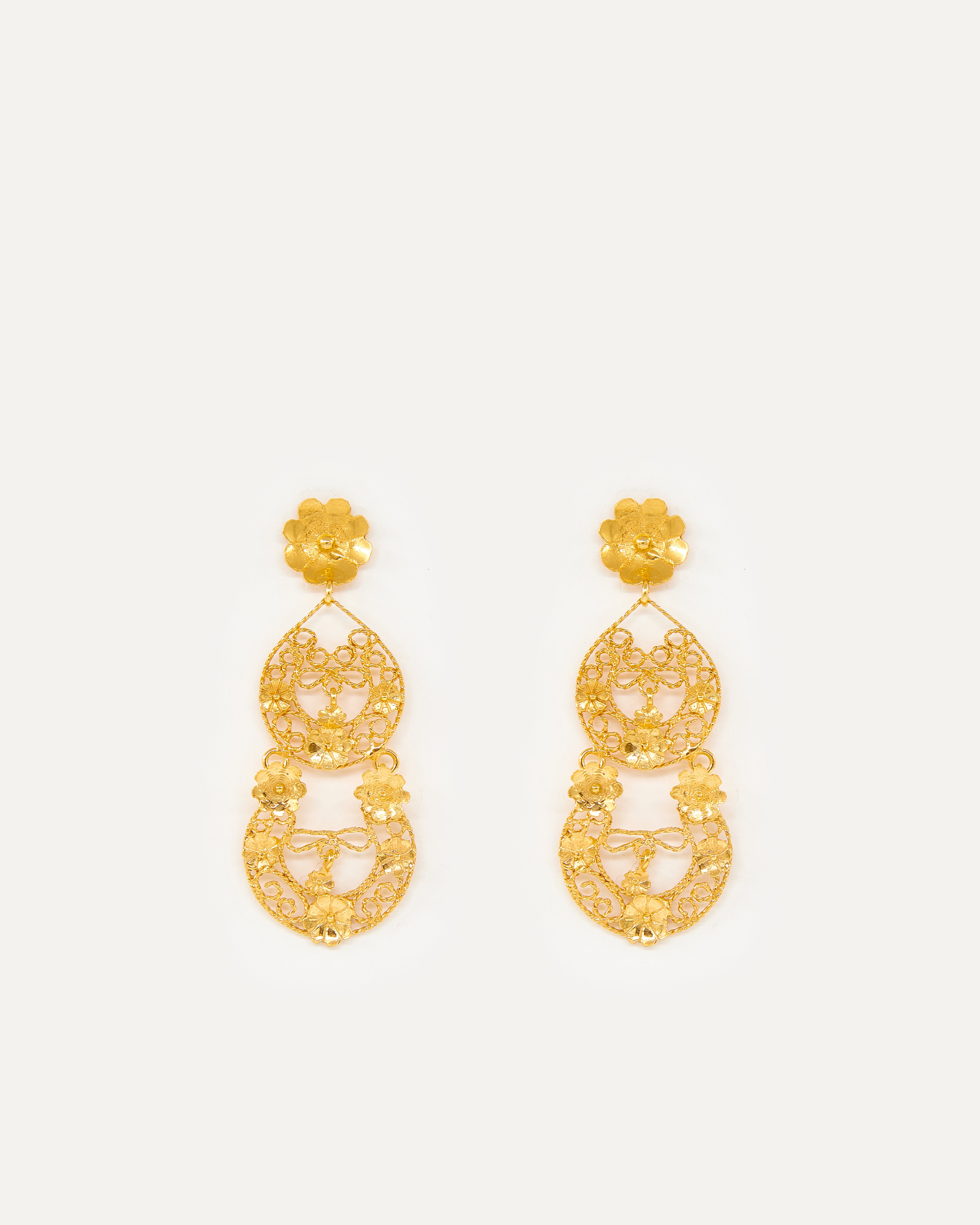 Pendientes inspirados en la clásica 'ferradura' ibicenca. A Elisa, esta tradicional pieza siempre le ha recordado a la Luna, un elemento muy influyente en el movimiento del mar, gran inspiración para la diseñadora y desencadenante de una evolución a diferentes diseños actualmente esenciales para la marca. Este diseño es un claro reflejo de la filosofía de la marca que junta dos Lunas de distinto tamaño para crear unos pendientes impactantes y poderosos.