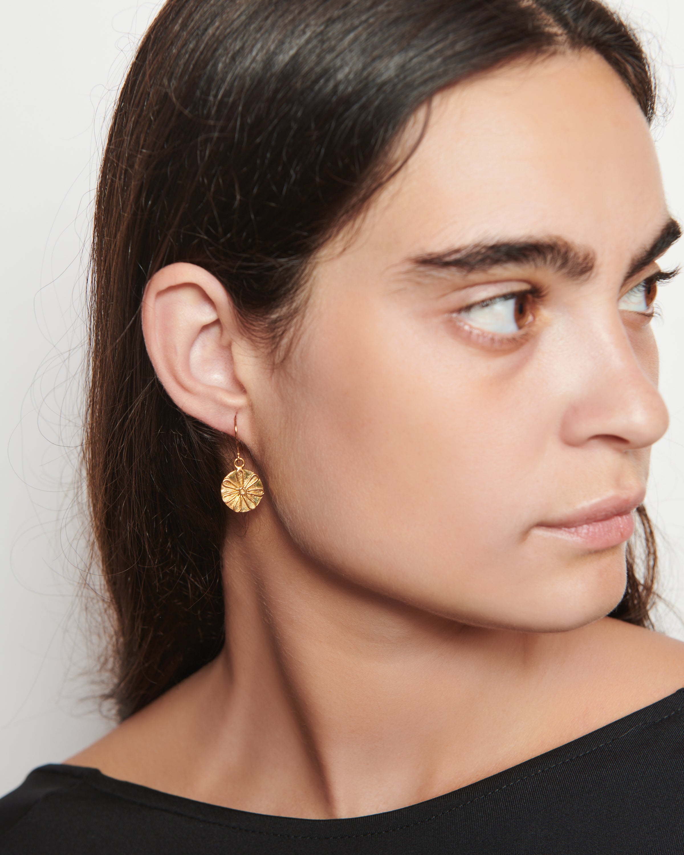 Estos pendientes pertenecen a la edición fenicia, un conjunto de joyas que Elisa crea en honor a la civilización que convirtió Ibiza en un enclave estratégico mundial. Su afán por evolucionar la joyería, el uso de cristales de colores o la fascinación por el oro son rasgos propiamente fenicios que forman parte del ADN de la marca ibicenca. Por esa razón, la diseñadora ha optado por elementos como esta flor para homenajear a este pueblo tan influyente en Ibiza.