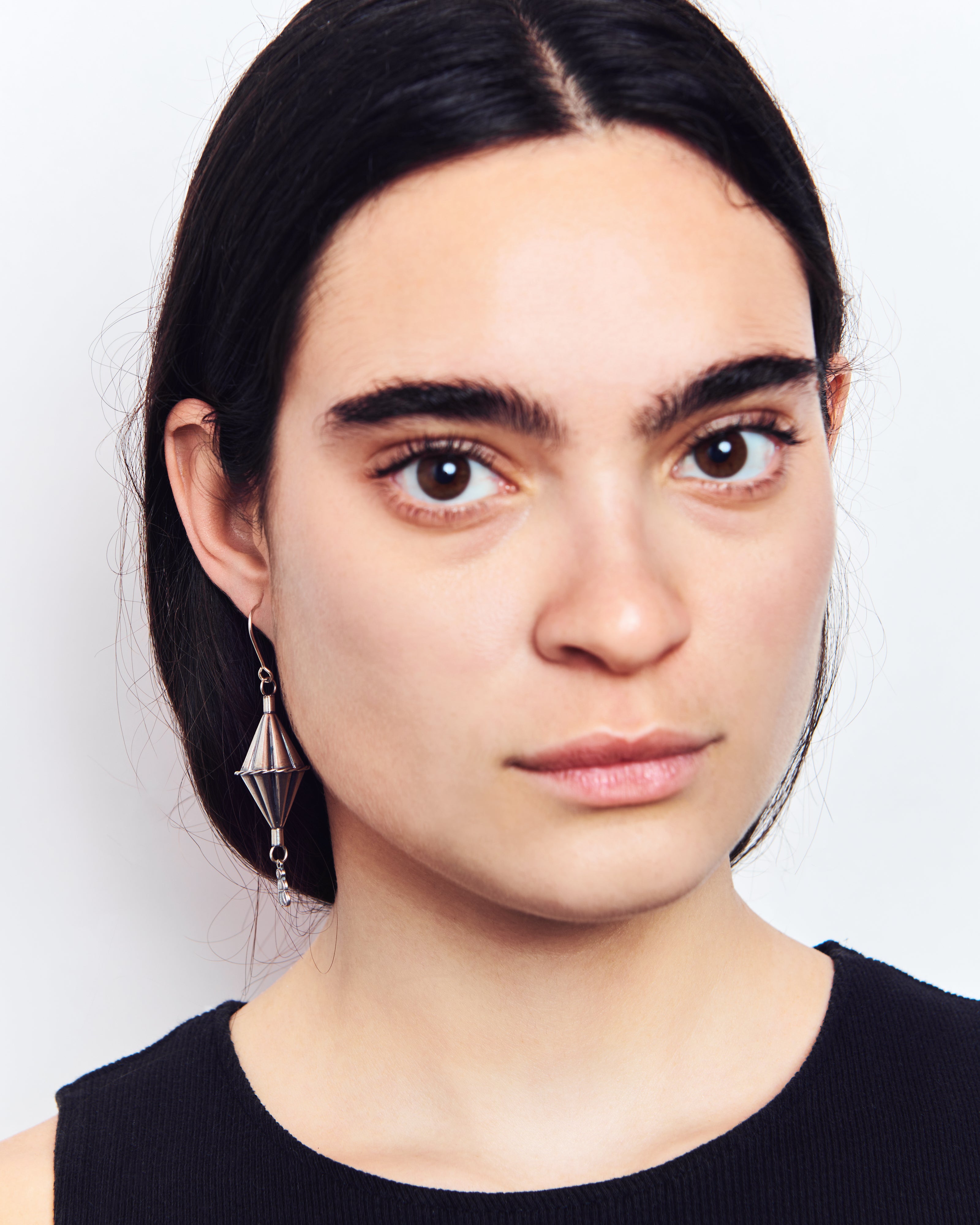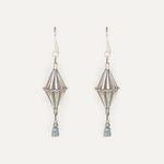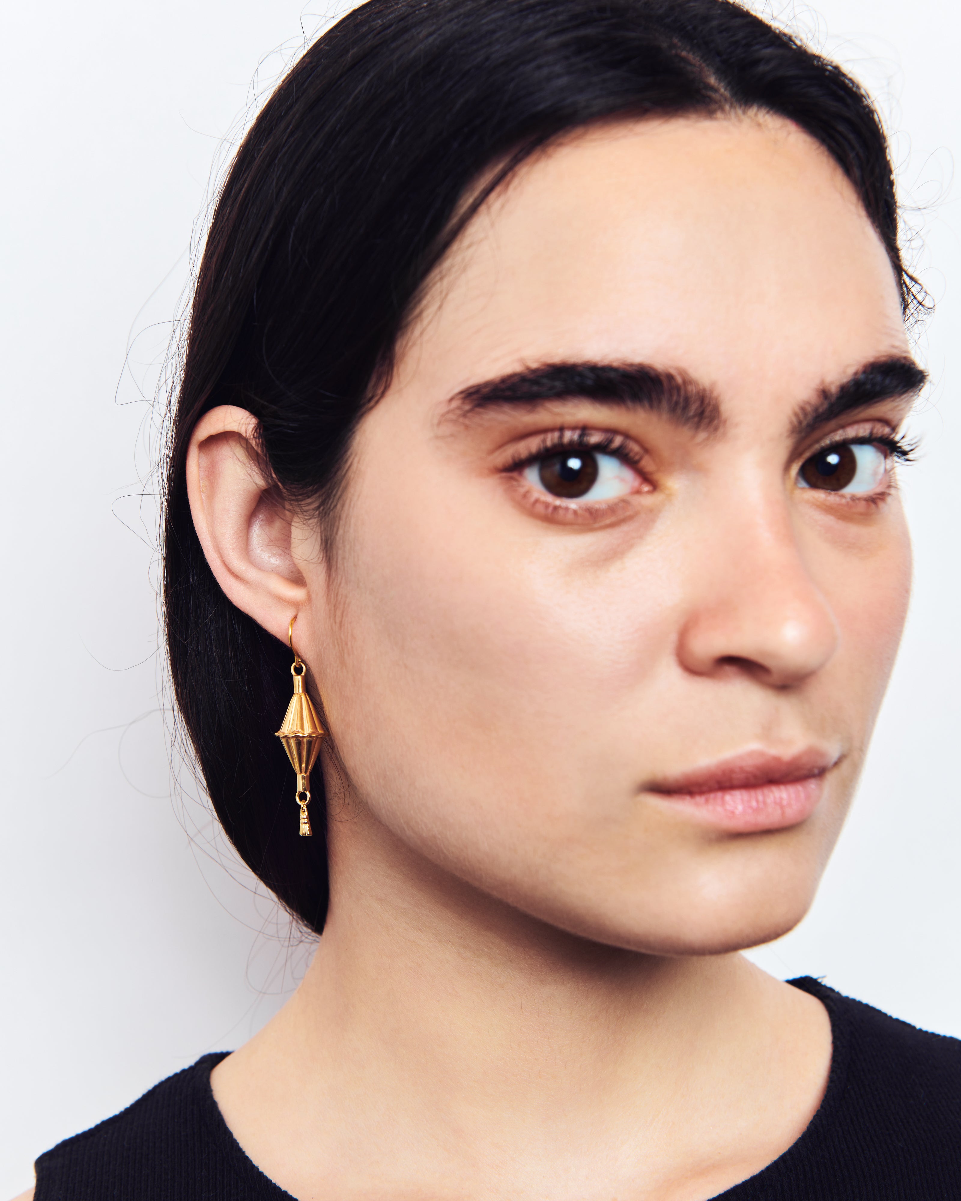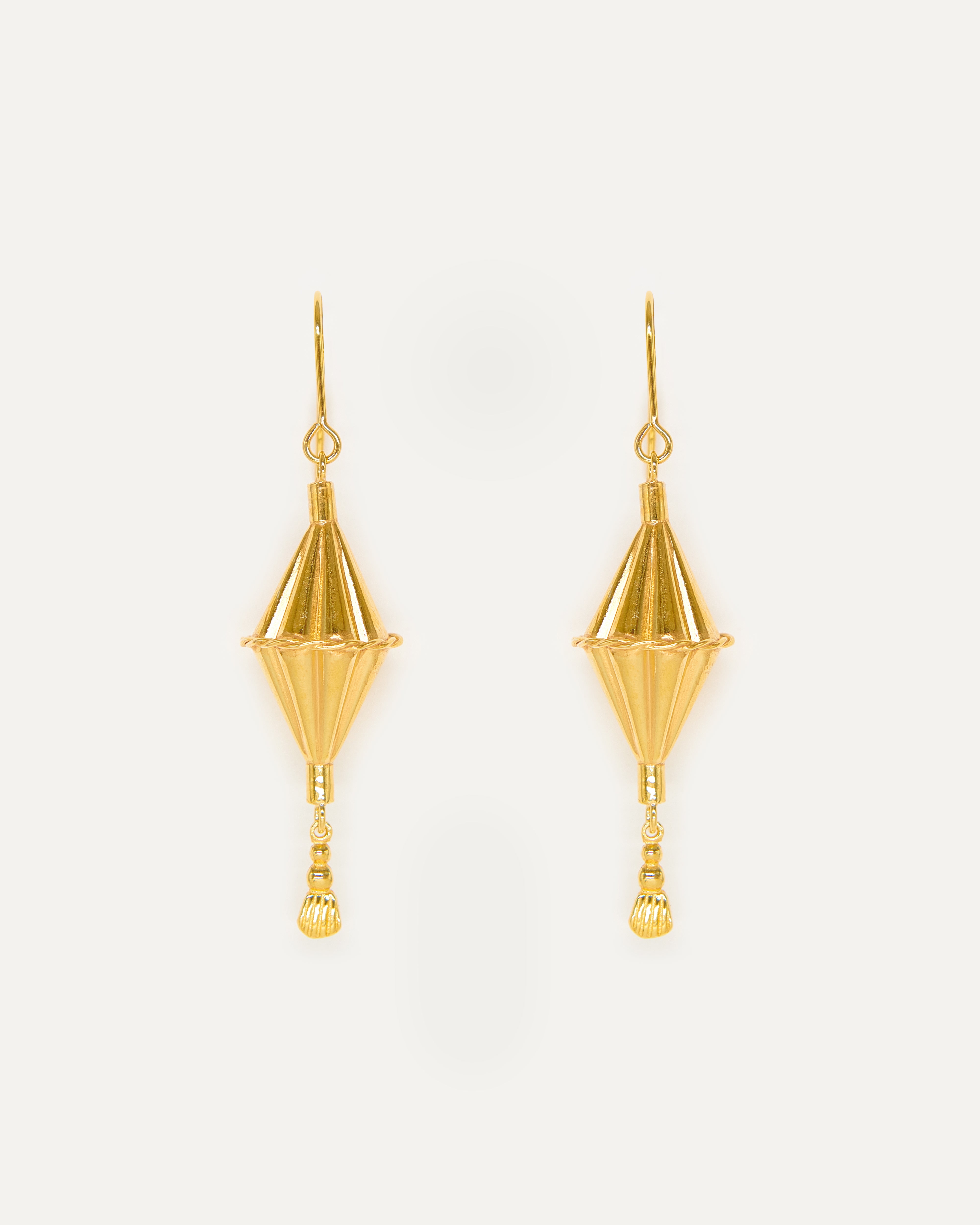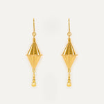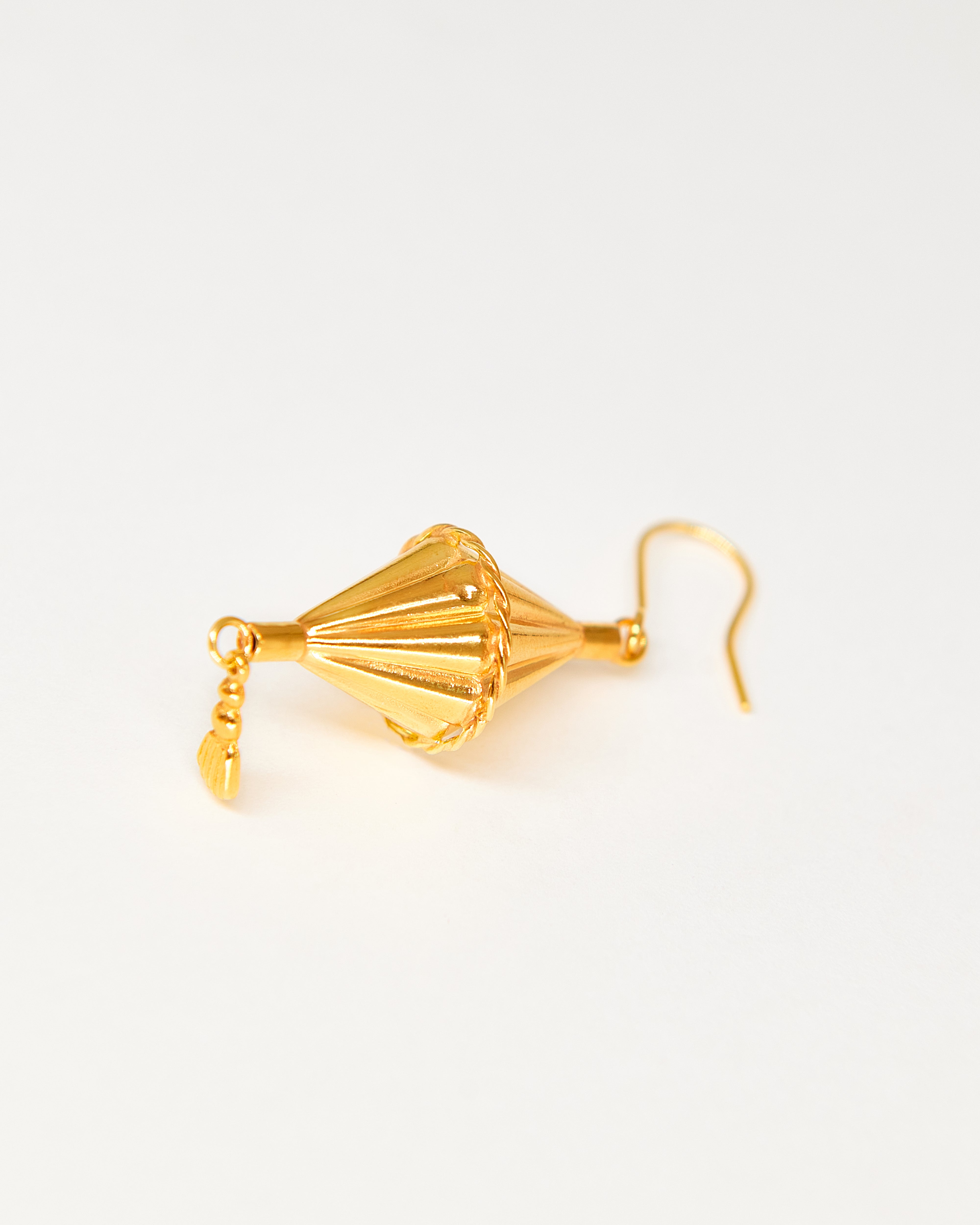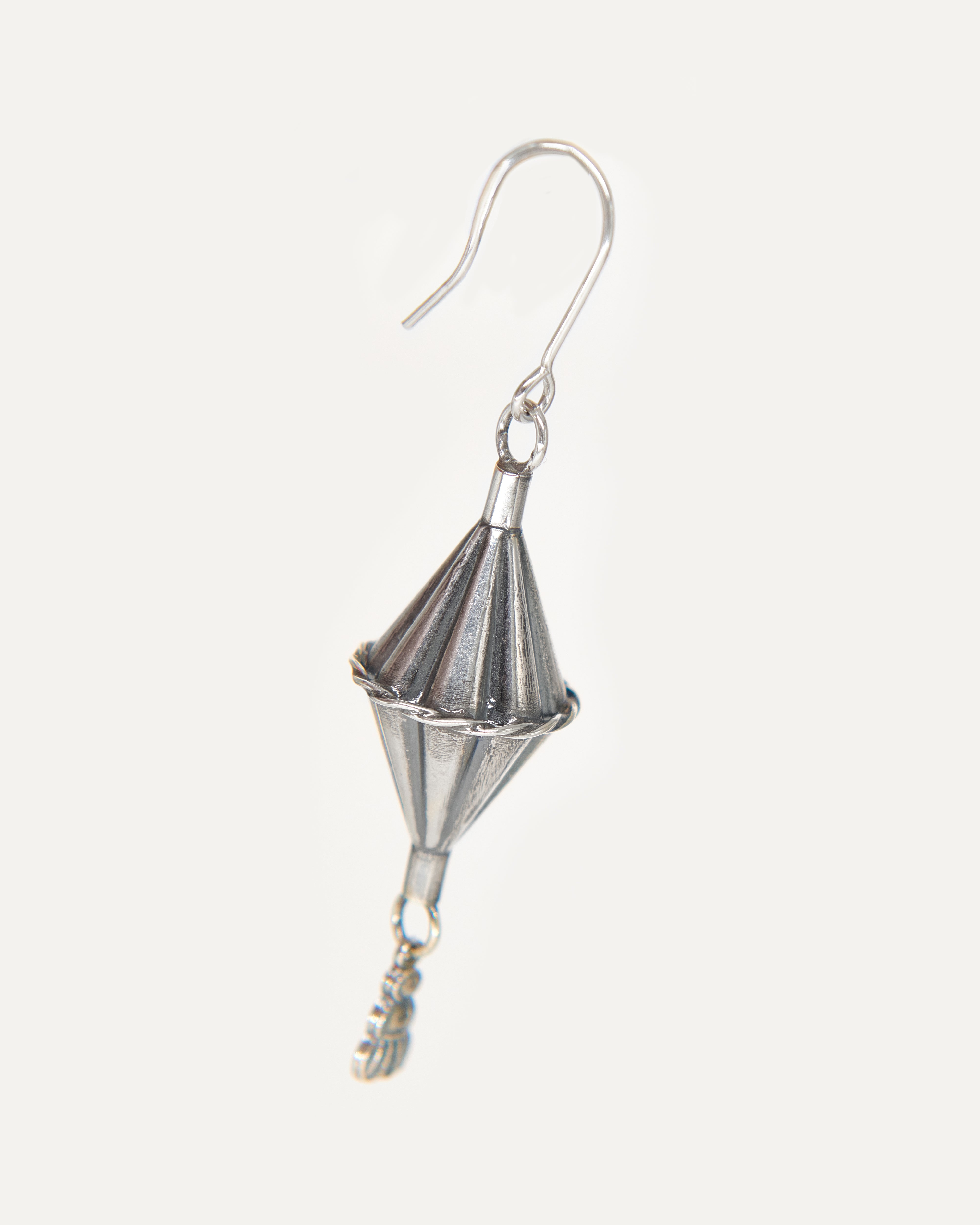 Pendientes inspirados en el collar de 'Gra d'Ordi' de la Emprendada ibicenca. El nombre 'Gra d'Ordi' se debe a la similitud del la joya, que tiene forma de rombo, con el grano de la cebada que tan frecuentada era en los campos ibicencos. Las emprendadas ibicencas completas llevaban entre 2 y 4 collares de Gra d'Ordi.