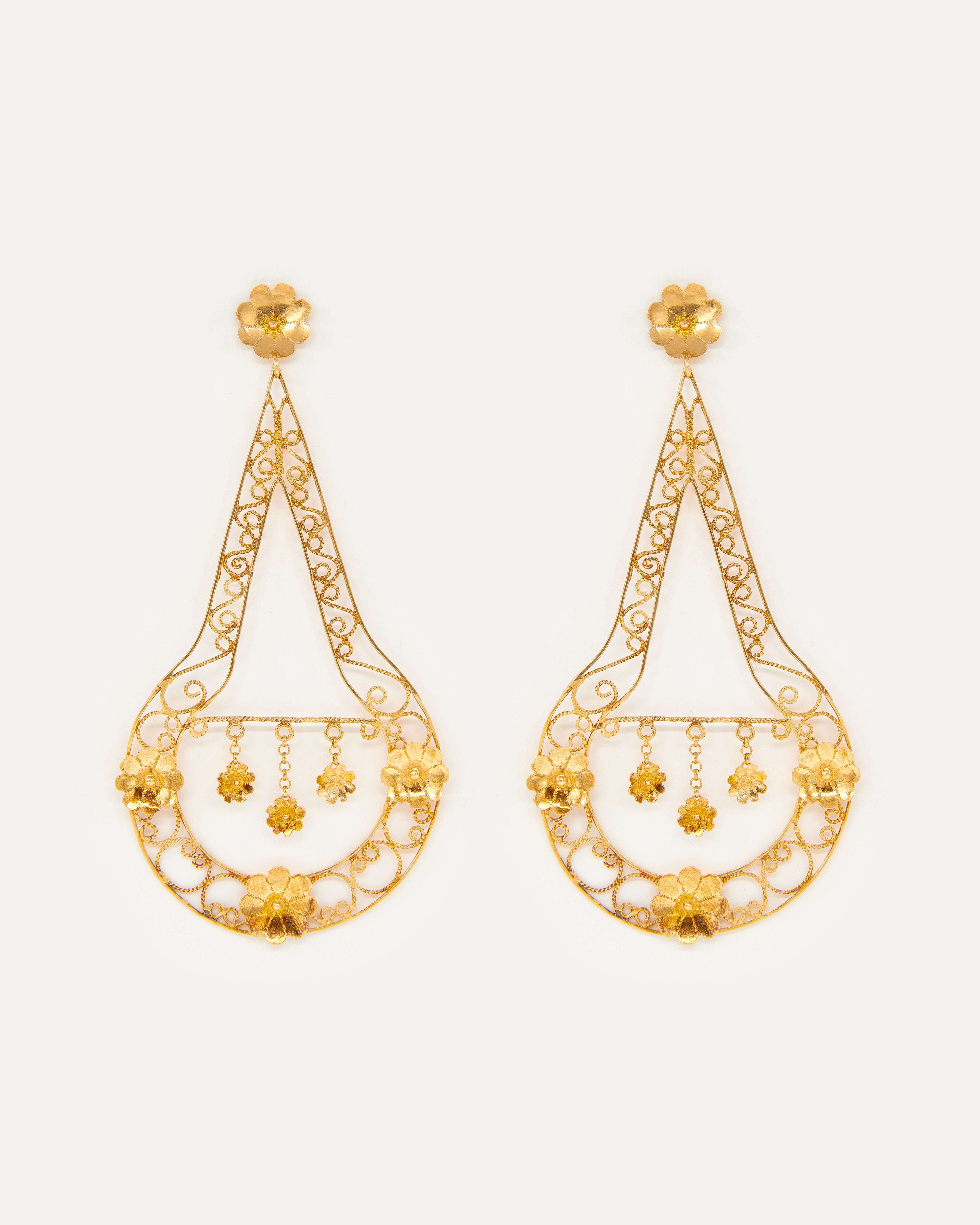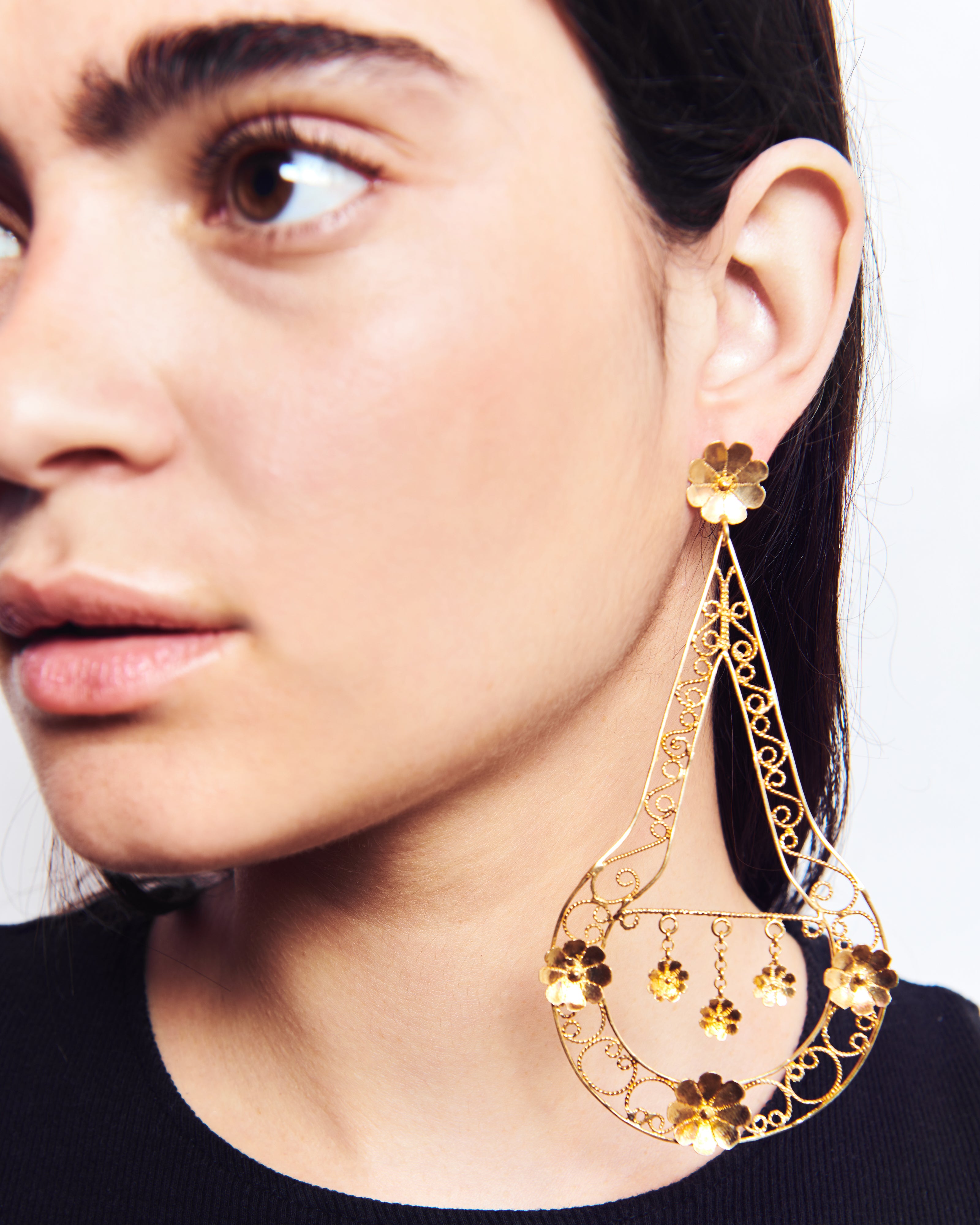 Pendientes inspirados en la clásica 'ferradura' ibicenca. A Elisa, esta tradicional pieza siempre le ha recordado a la Luna, un elemento muy influyente en el movimiento del mar y gran inspiración para la diseñadora. Estos pendientes son un guiño a Paco de Lucía, Lola Flores y el mundo andaluz que tanto apasiona a la ibicenca.