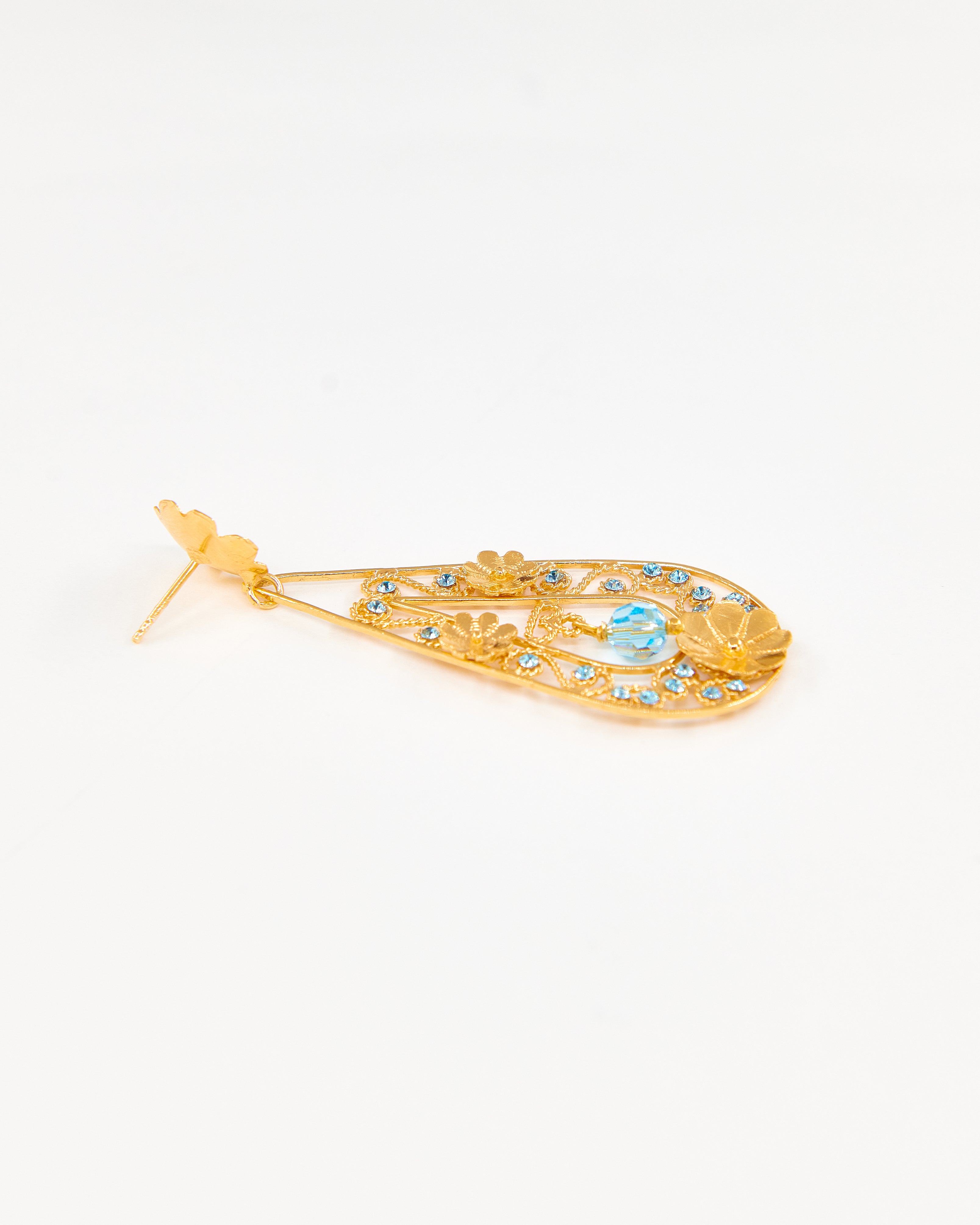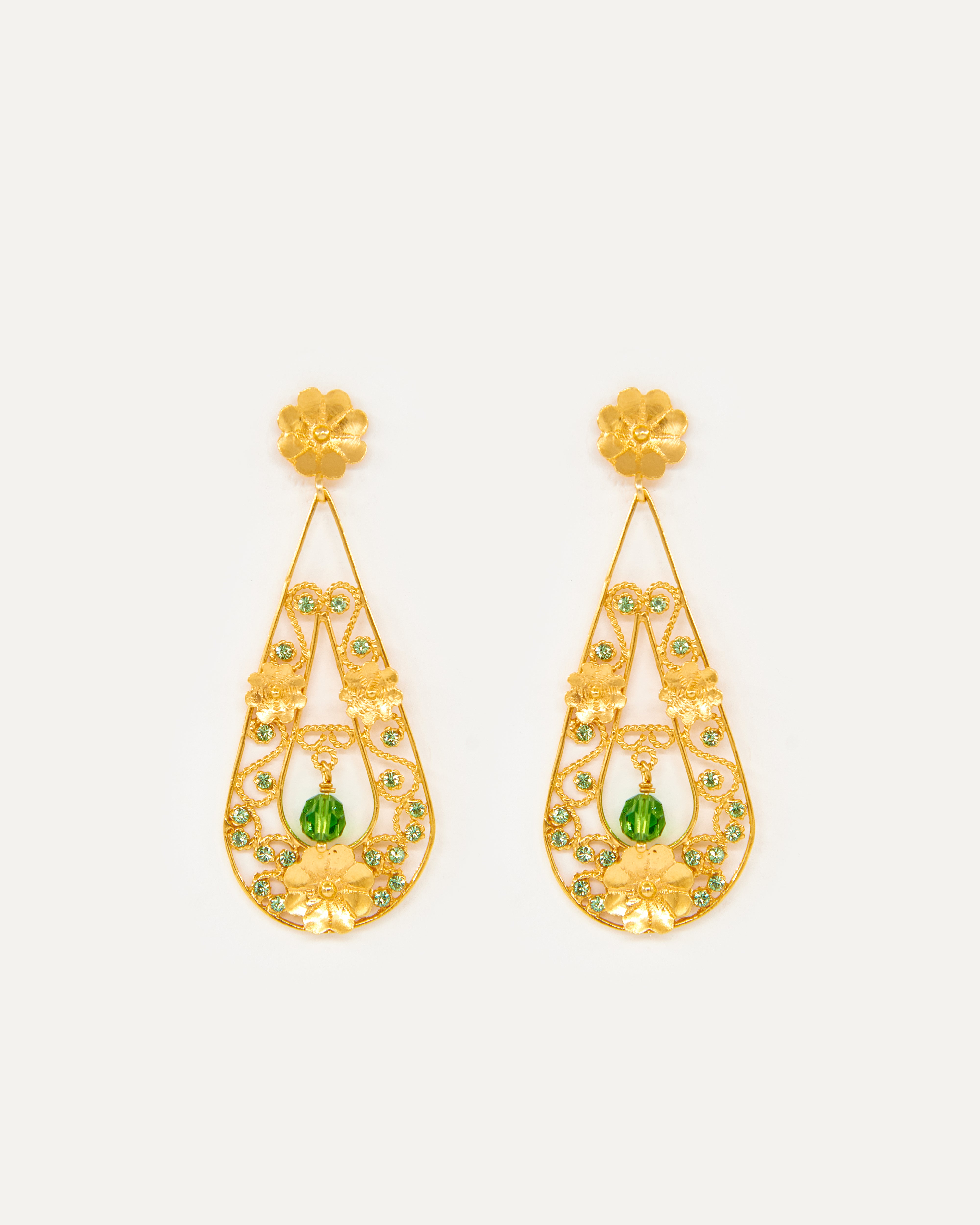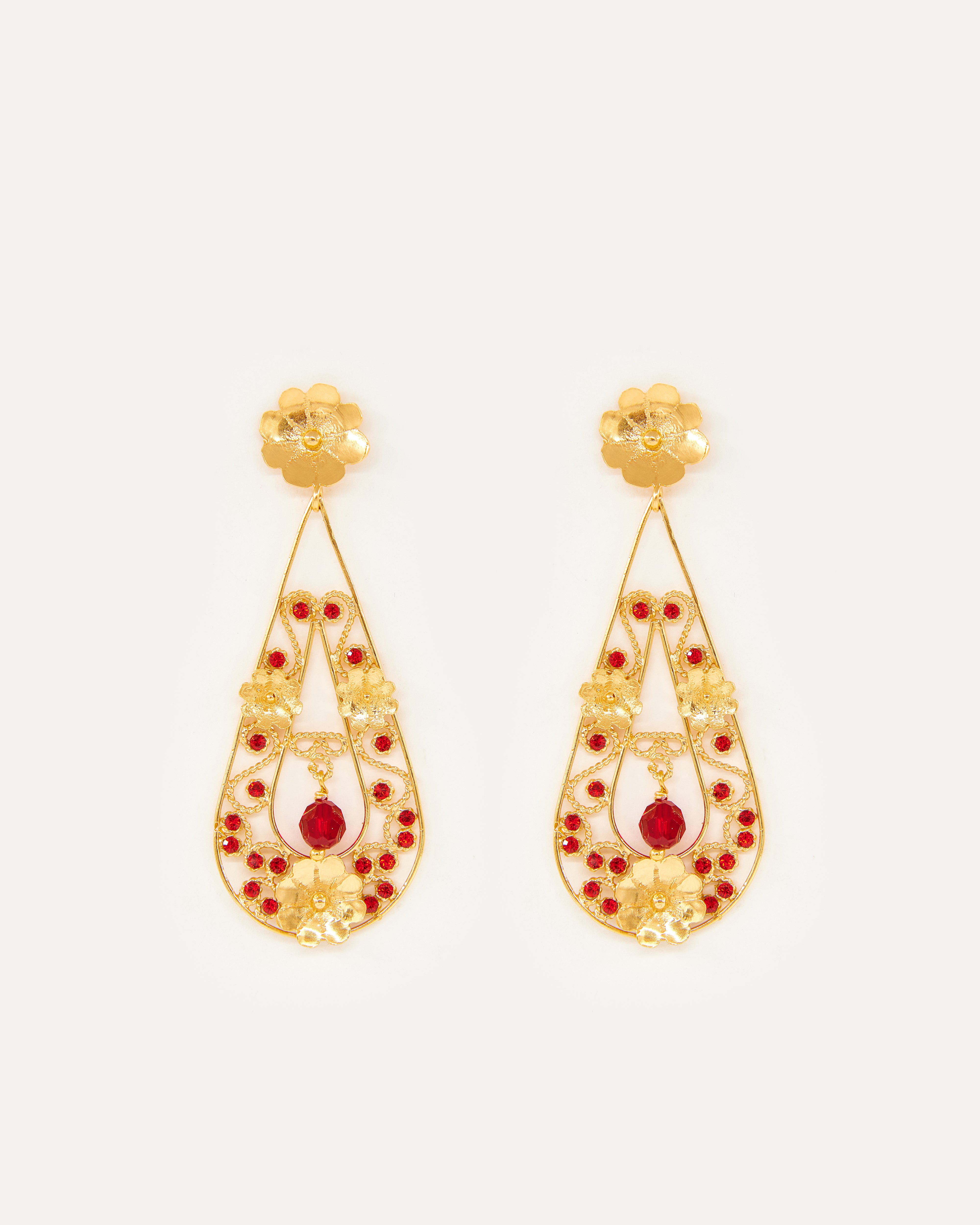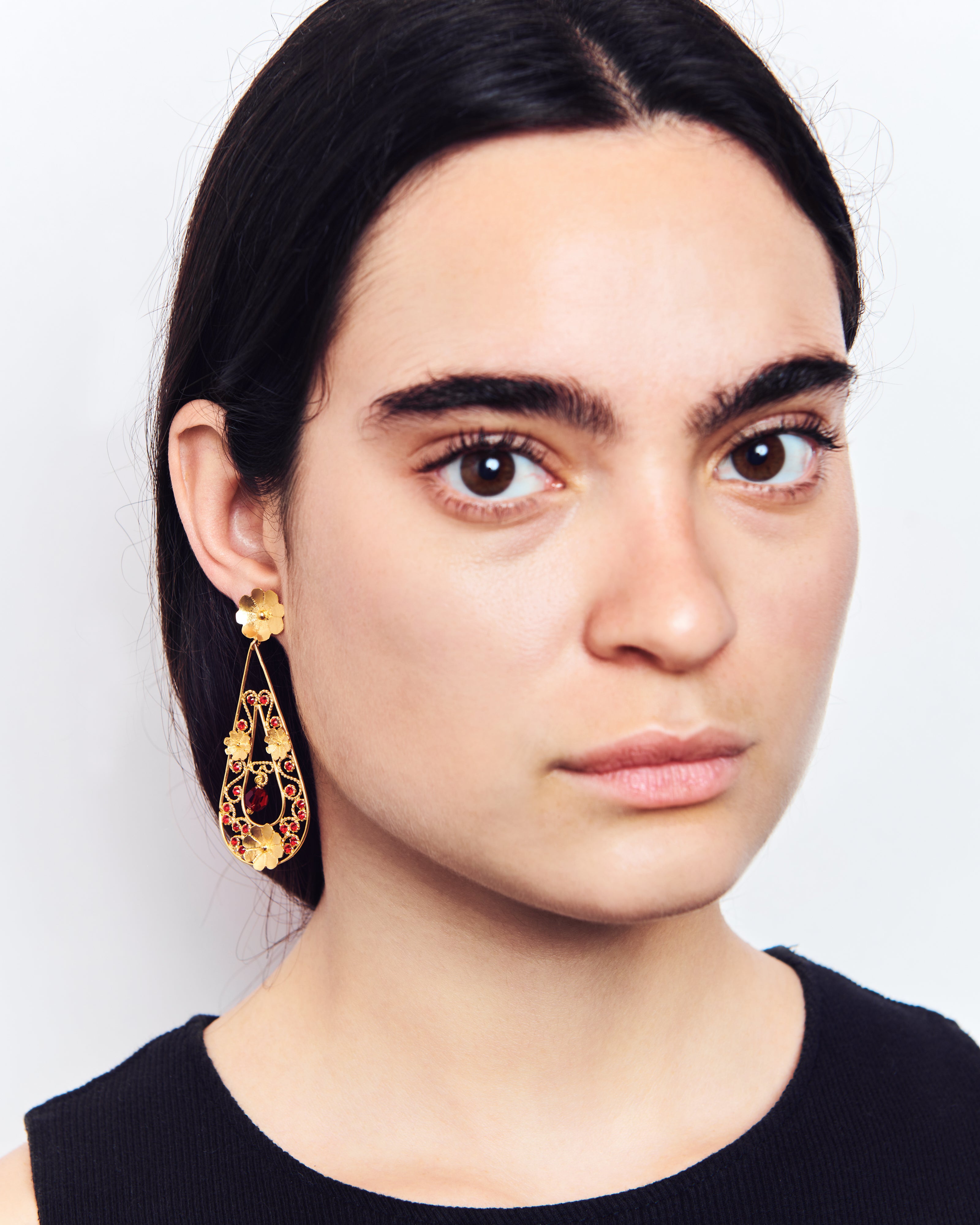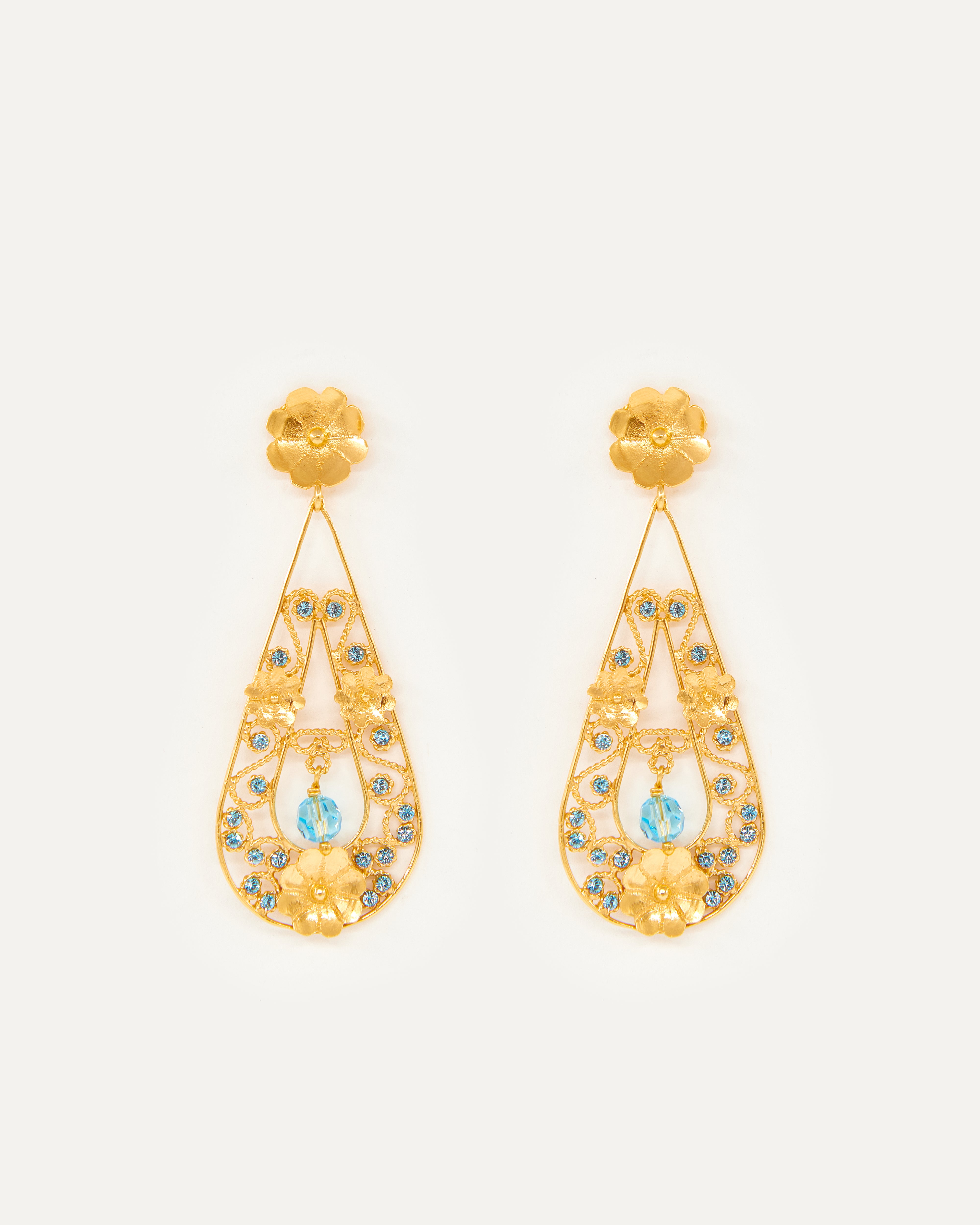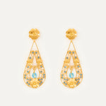 Pendientes inspirados en la clásica "ferradura" ibicenca, un elemento que Elisa siempre ha asociado con la Luna y su influencia en las mareas. En esta pieza la diseñadora evoluciona la tradición e imagina una Luna enamorada, cuyas lágrimas de dicha caen al mar y que ella devuelve a tierra convertidas en oro y perfiladas con exquisita filigrana. Además, la diseñadora ha querido darle un toque de color a este diseño con cristales de primera calidad.