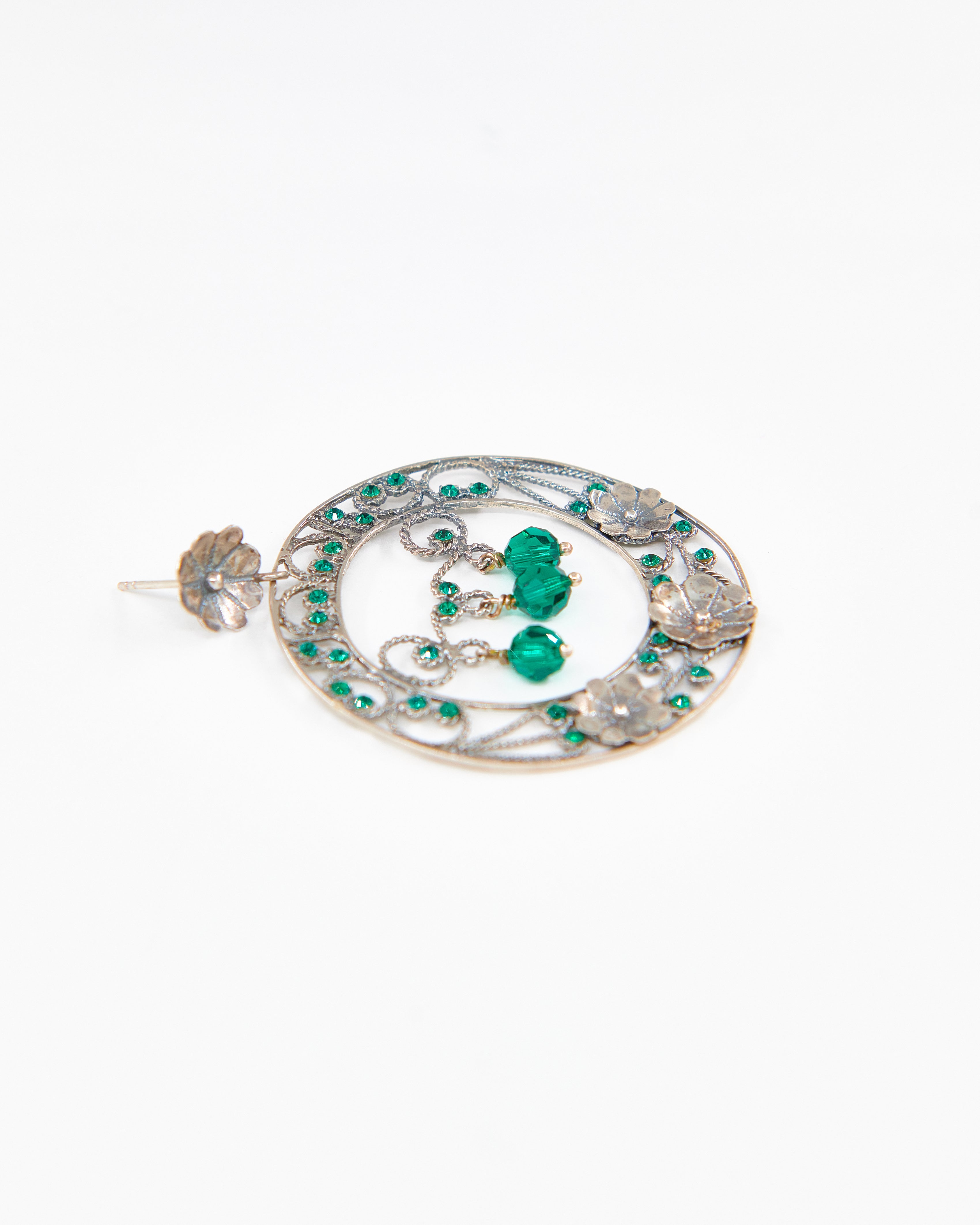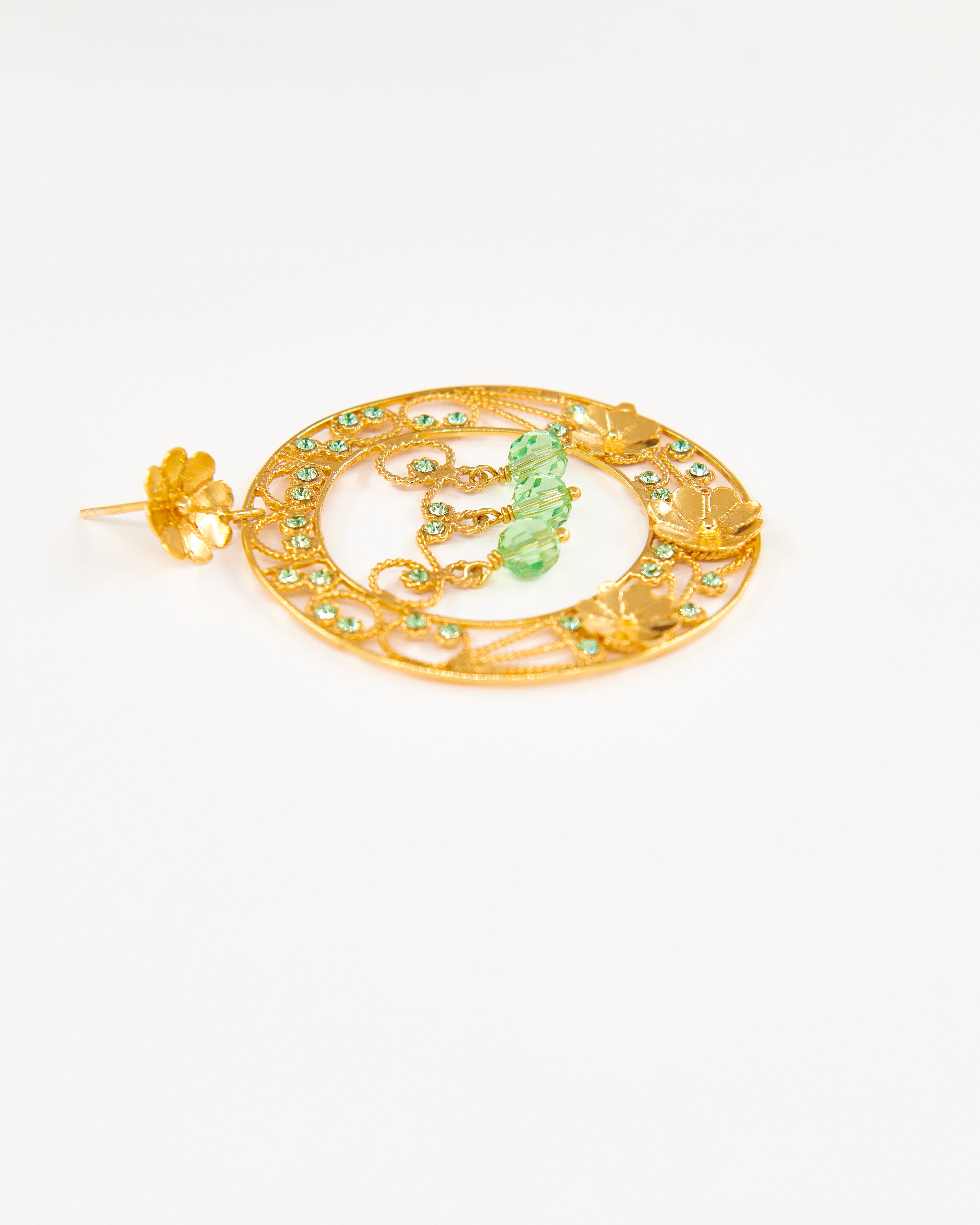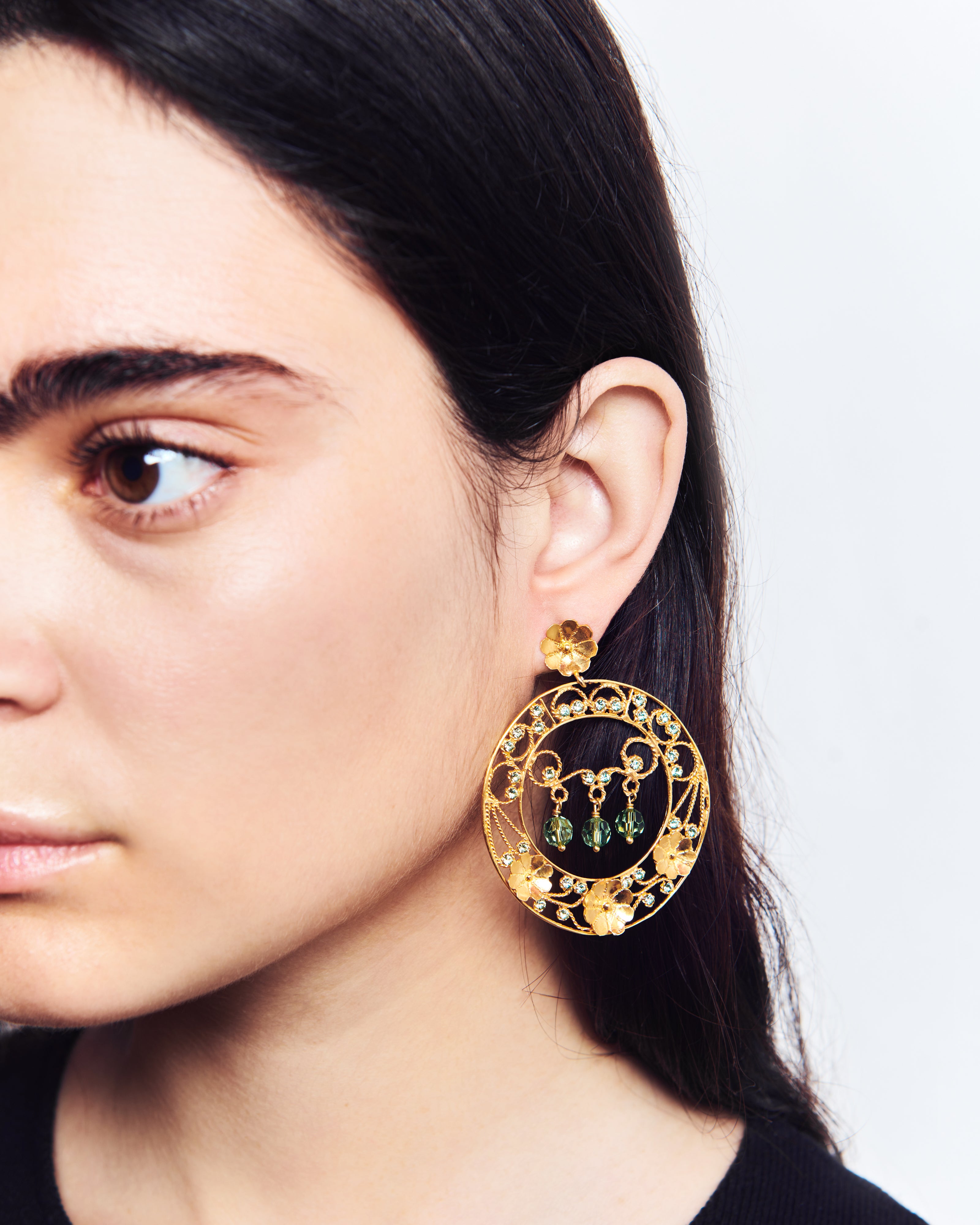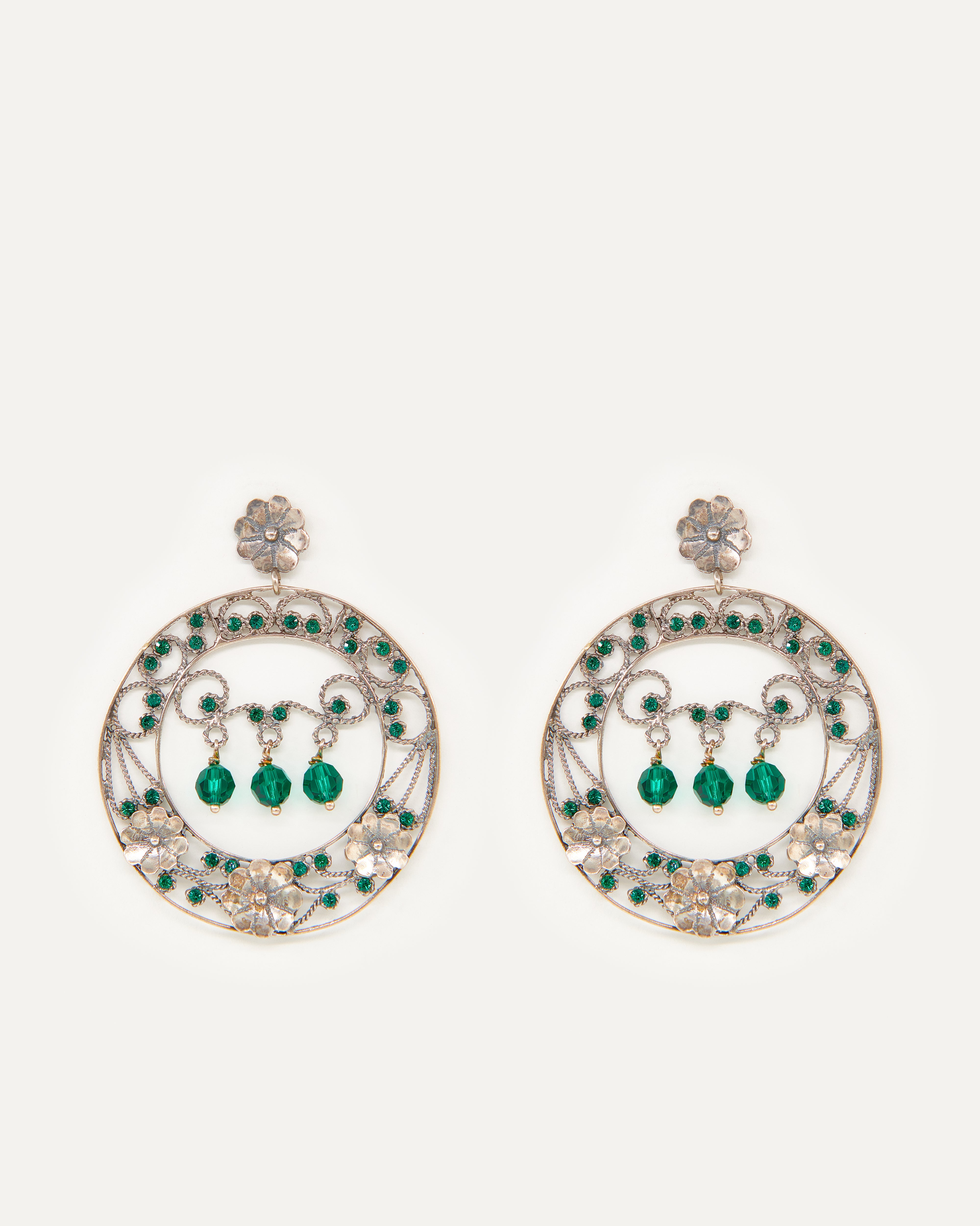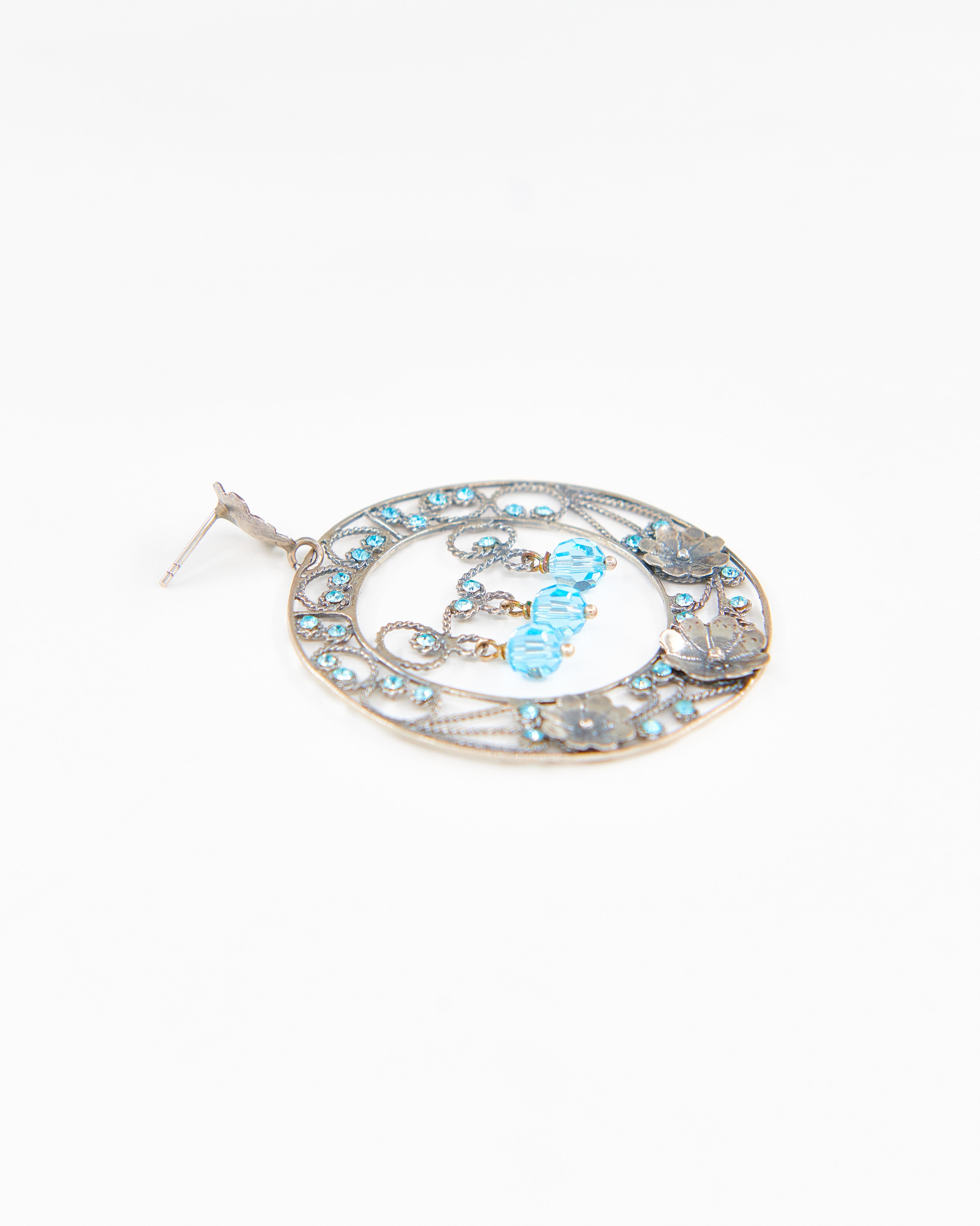 Pendientes inspirados en la clásica 'ferradura' ibicenca. A Elisa, esta tradicional pieza siempre le ha recordado a la Luna, un elemento muy influyente en el movimiento del mar, gran inspiración para la diseñadora. La luna llena de agosto ibicenca siempre ha sido una de las musas de Elisa como una representación total de plenitud y la ha querido transformar en pendientes con este diseño, además de un toque de color con cristales de primera calidad.