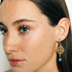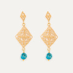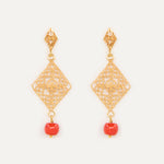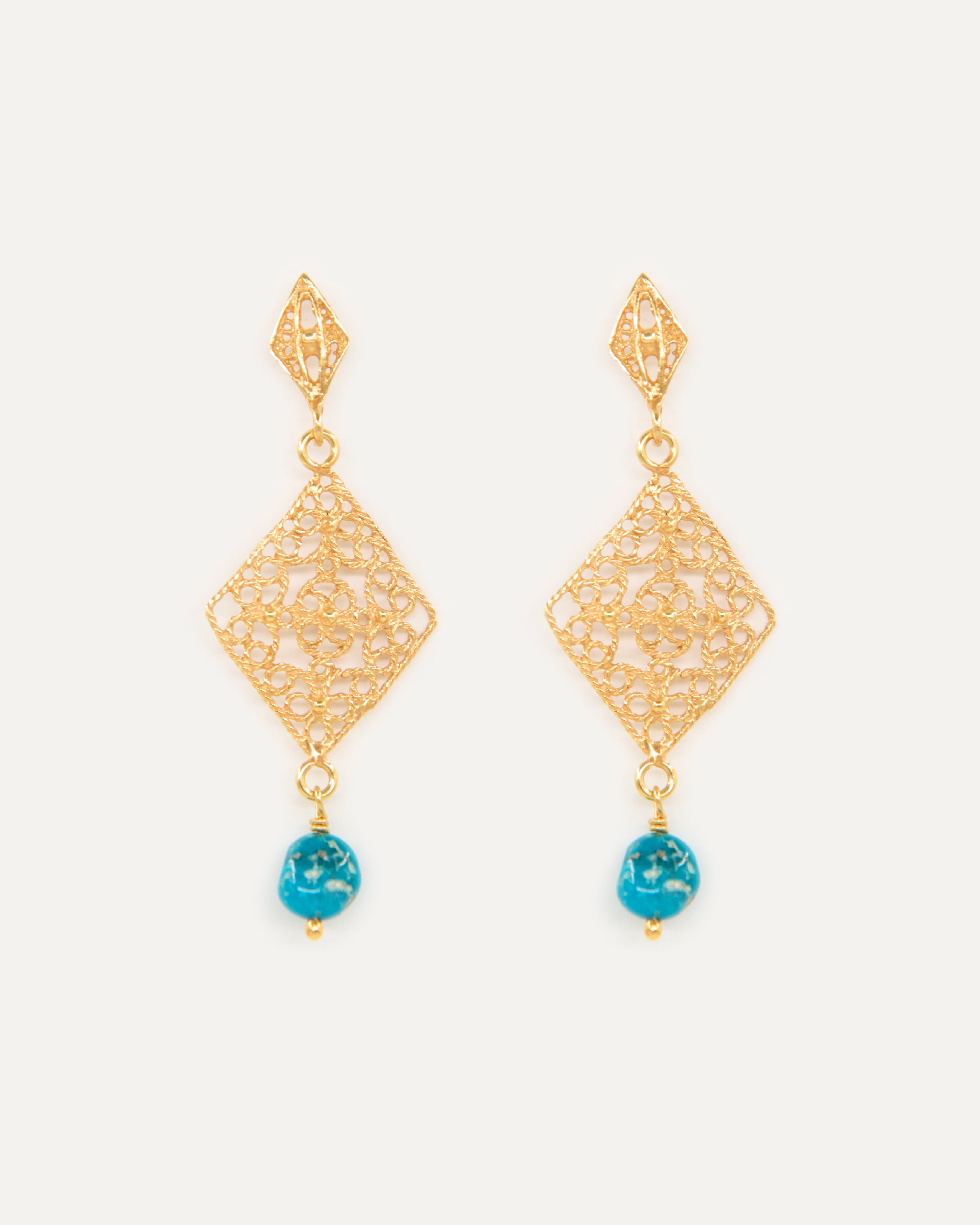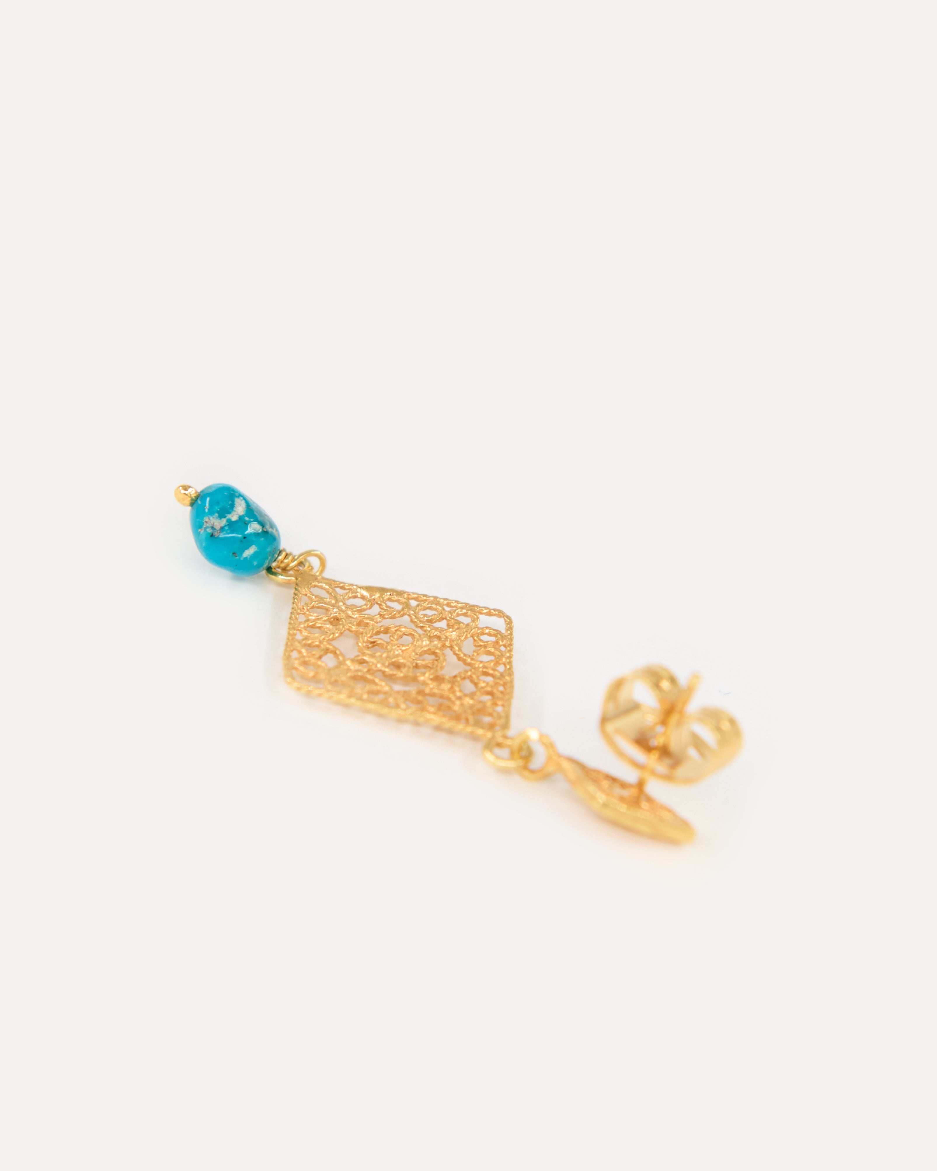 -Rombo pequeño de filigrana plana con una piedra de coral o turquesa