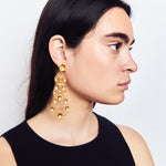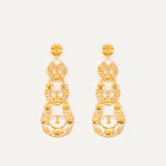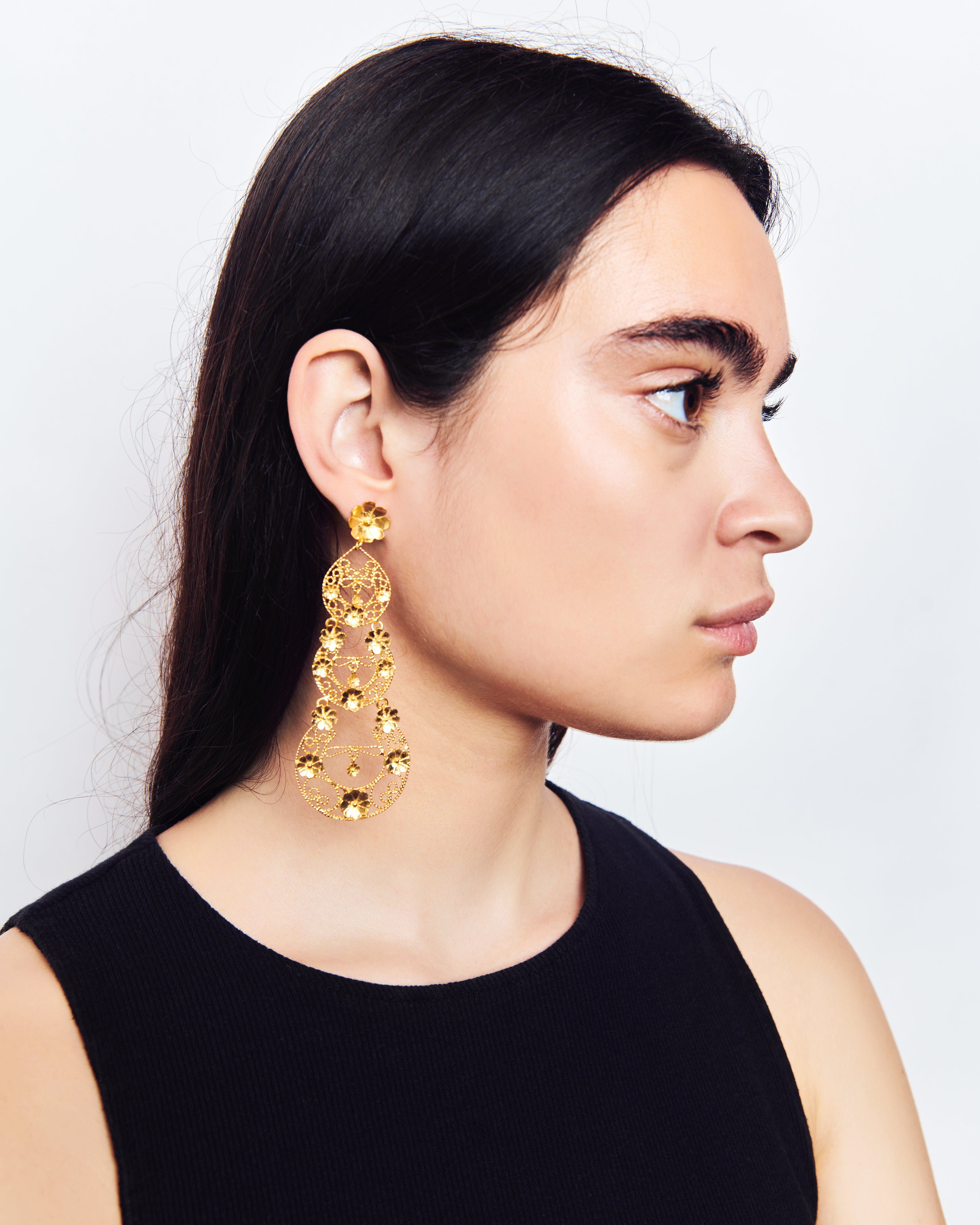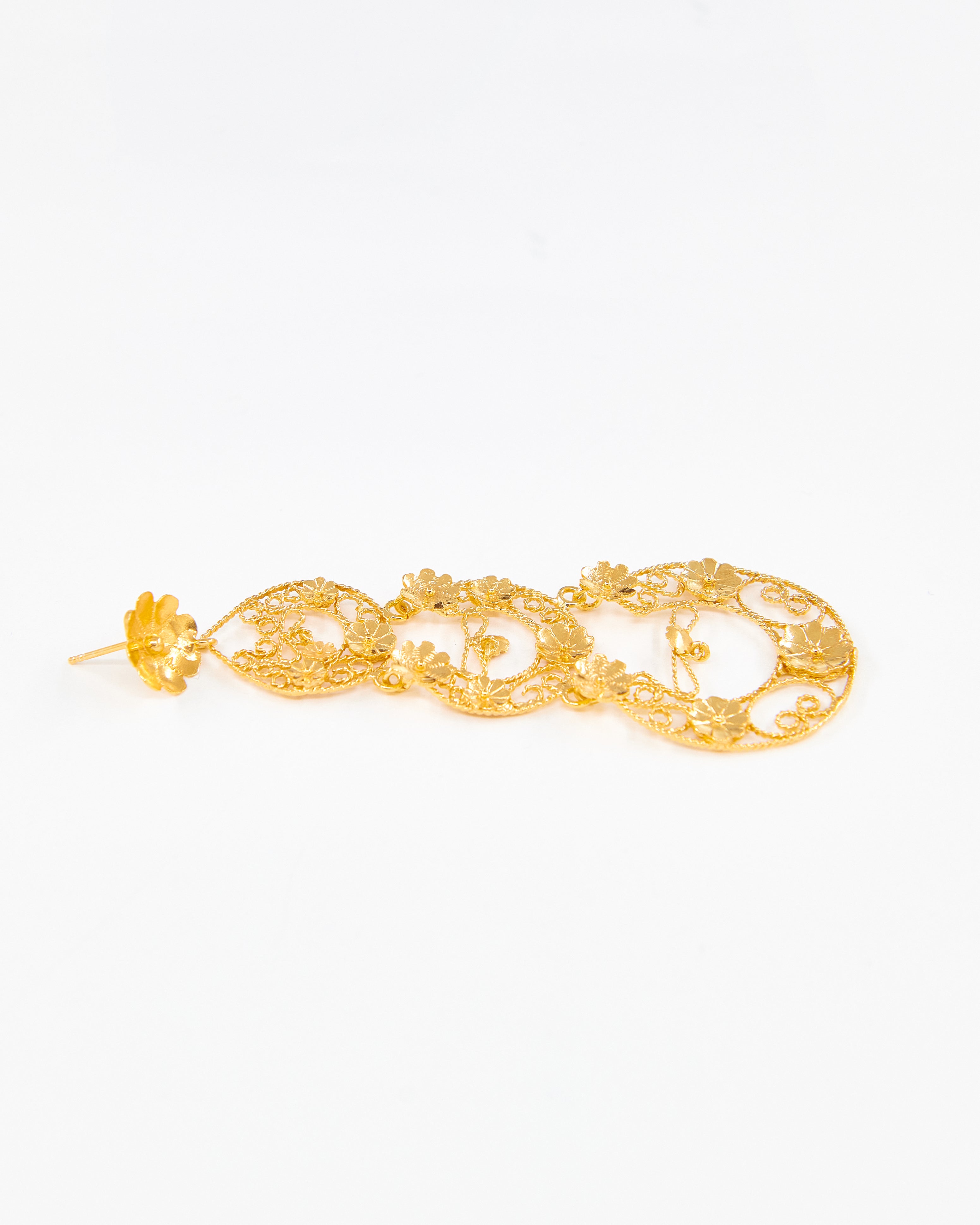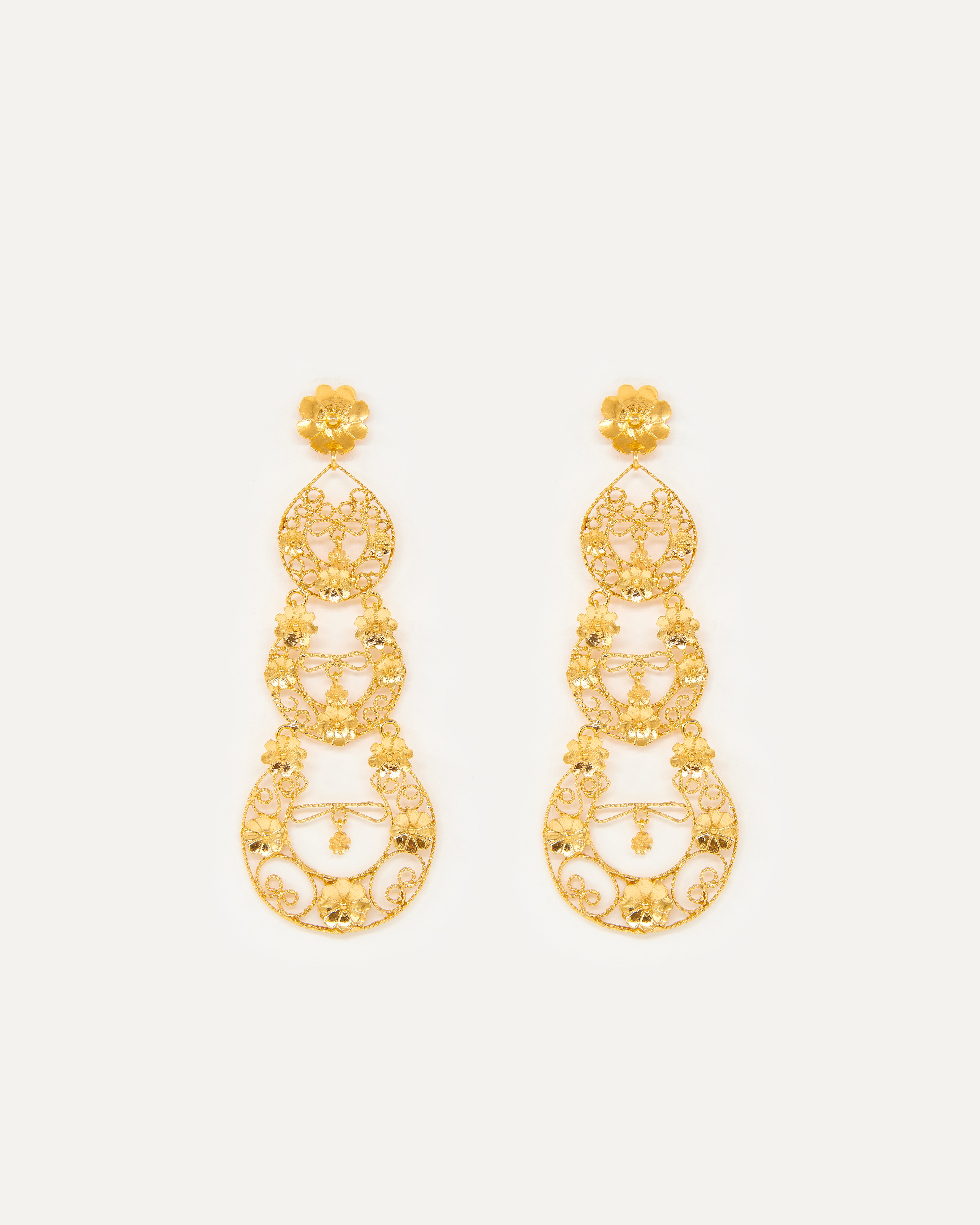 Pendientes inspirados en la clásica 'ferradura' ibicenca. A Elisa, esta tradicional pieza siempre le ha recordado a la Luna, un elemento muy influyente en el movimiento del mar, gran inspiración para la diseñadora y desencadenante de una evolución a diferentes diseños actualmente esenciales para la marca. Este diseño es un claro reflejo de la filosofía de la marca que junta tres Lunas de distinto tamaño para crear unos pendientes impactantes y poderosos.