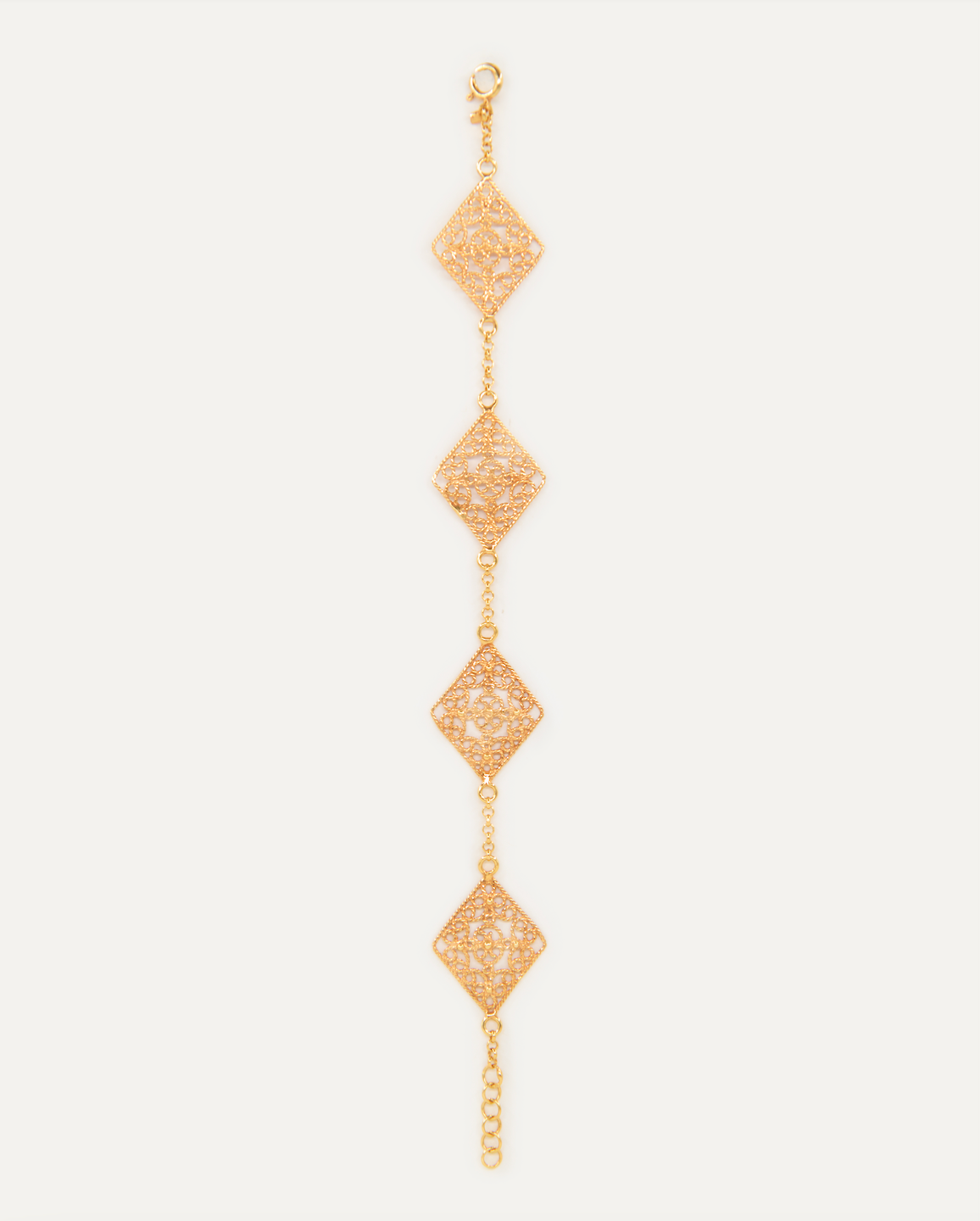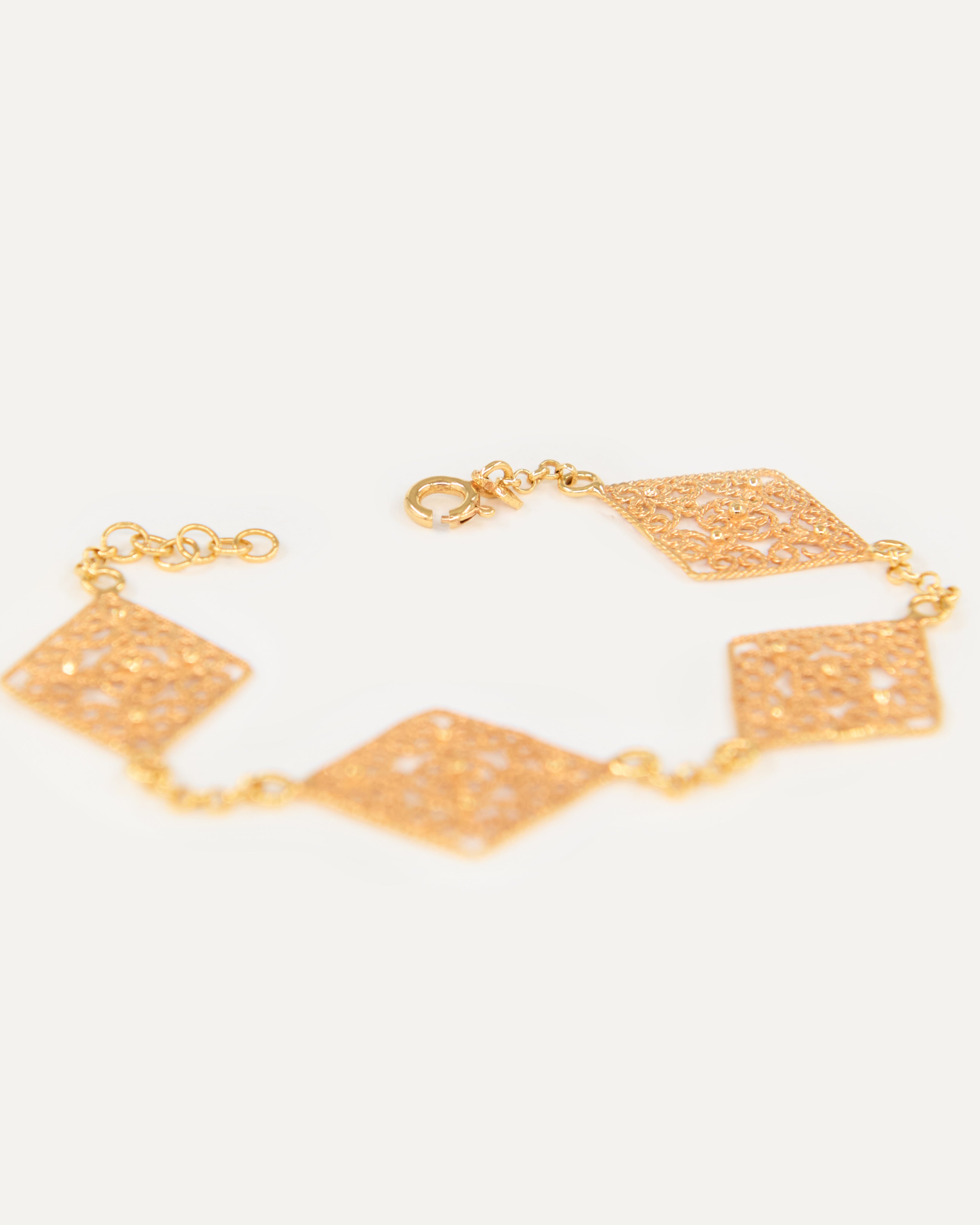 -Cuatro rombos pequeños de filigrana plana soldados en la cadena