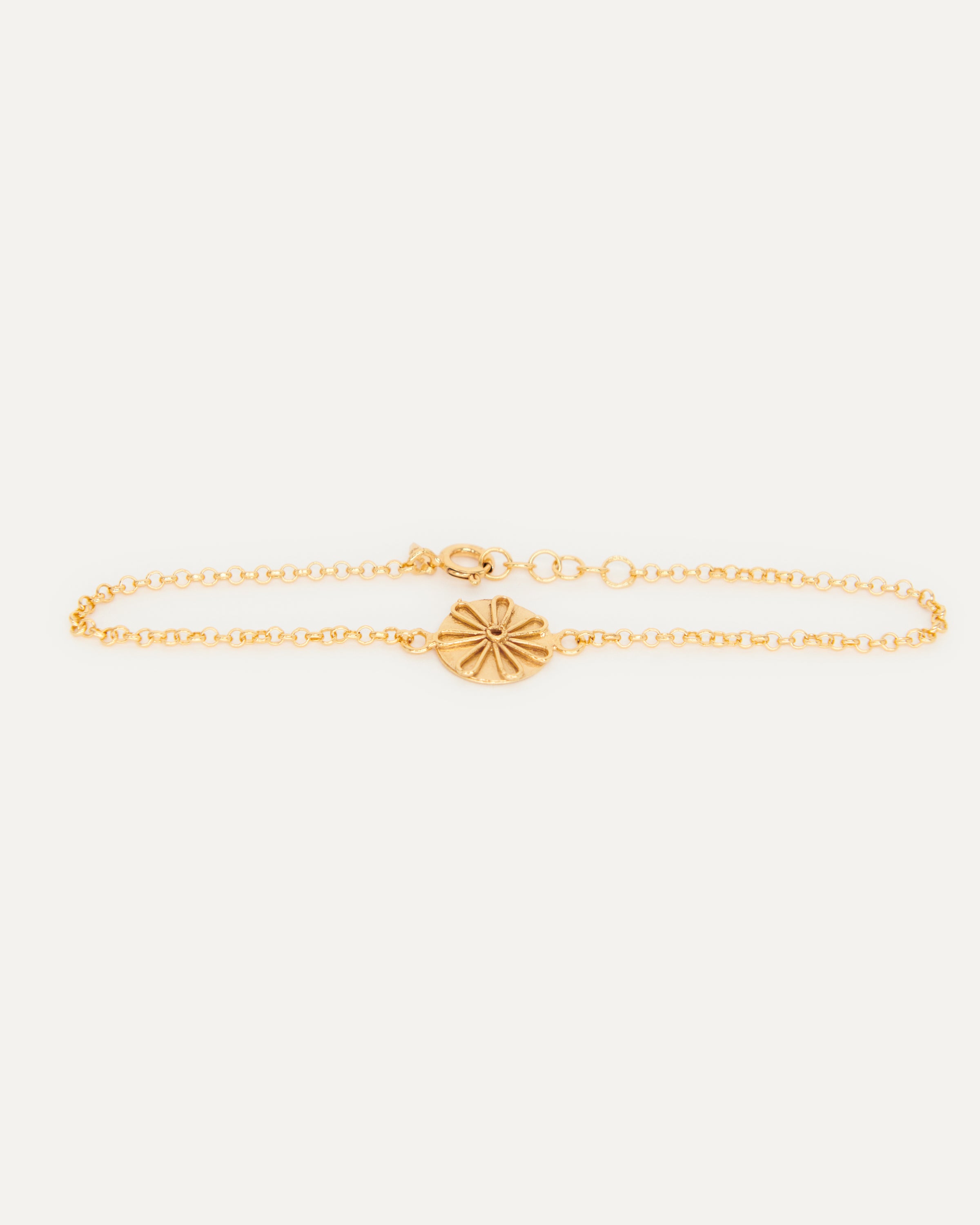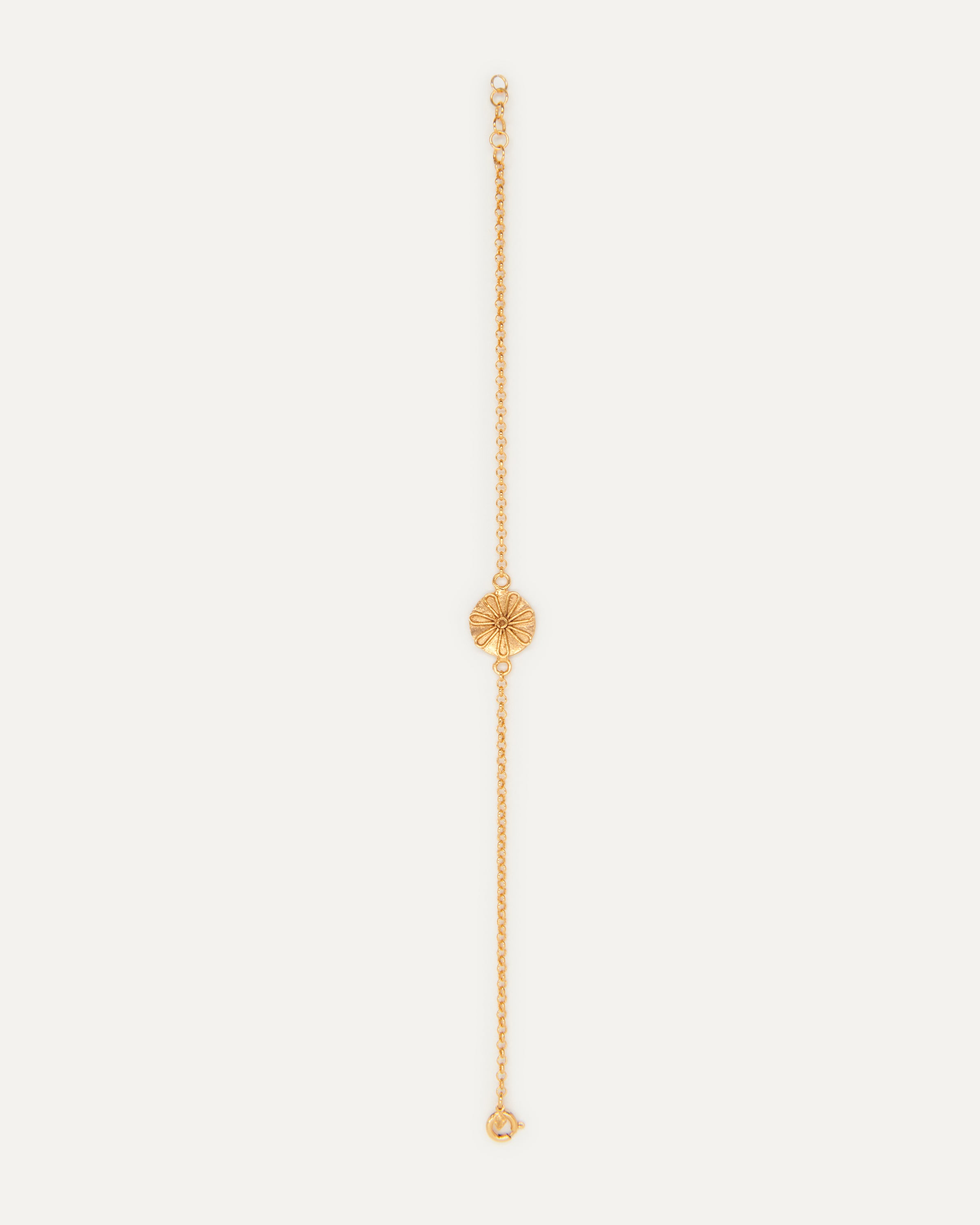 Esta pulsera pertenece a la edición fenicia, un conjunto de joyas que Elisa crea en honor a la civilización que convirtió Ibiza en un enclave estratégico mundial. Su afán por evolucionar la joyería, el uso de cristales de colores o la fascinación por el oro son rasgos propiamente fenicios que forman parte del ADN de la marca ibicenca. Por esa razón, la diseñadora ha optado por elementos como esta flor para homenajear a este pueblo tan influyente en Ibiza.