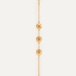 Esta pulsera pertenece a la edición fenicia, un conjunto de joyas que Elisa crea en honor a la civilización que convirtió Ibiza en un enclave estratégico mundial. Su afán por evolucionar la joyería, el uso de cristales de colores o la fascinación por el oro son rasgos propiamente fenicios que forman parte del ADN de la marca ibicenca. Por esa razón, la diseñadora ha optado por elementos como estas tres flores para homenajear a este pueblo tan influyente en Ibiza.